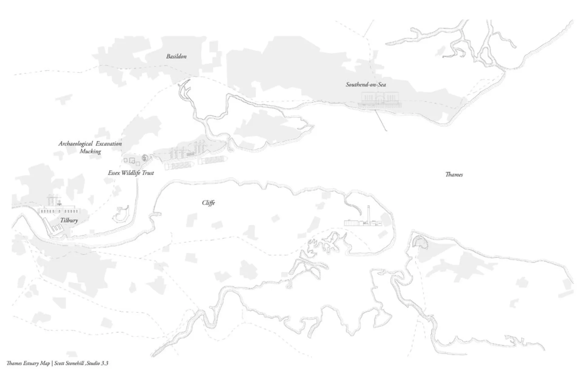 For the 2nd year, the studio has been immersed in the rural, engaging with the condition of modern nature*, a reality experienced by many, far from arcadian. Charting multiple walks in the rich, riotous territory of the Essex Estuary, pop-culture, film, photography and literature are used as means to interrogate and comprehend. A situated response is gradually formed, producing work that values and exploits the existing ad-hoc, incongruous situation, exploring questions around identity and displacement. Concerned again with re-populating the landscape, the studio asks what form a contemporary vernacular approach might take? Implicit is a counter-position, a bid for a more local existence based on a circular economy, a critique of mass urbanisation and consumer culture that favours a humane, place, landscape and climate-sensitive architectural response.