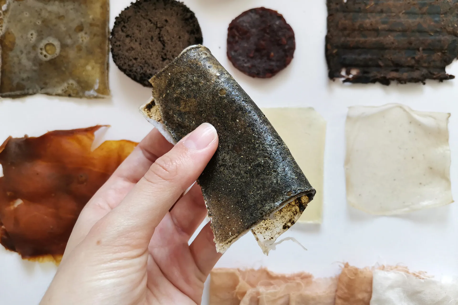 The Biomaterials workshop project took place in second term with designers from Material Driven. It focuses on utilising food waste to create bioplastics, bio composites and natural dyes among others. In this project, we made orange peel composite, banana leather/plastic, coffee ground composites, algae and cornstarch bioplastic, gelatine foam, natural dyes from onion peels and avocado seeds and crystals, generated from salt. We also recycled plastic and learned how to make intricate moulds from packaging. We used these skills and the knowledge gained to experiment further; developing on materials that we used in our Major Projects.