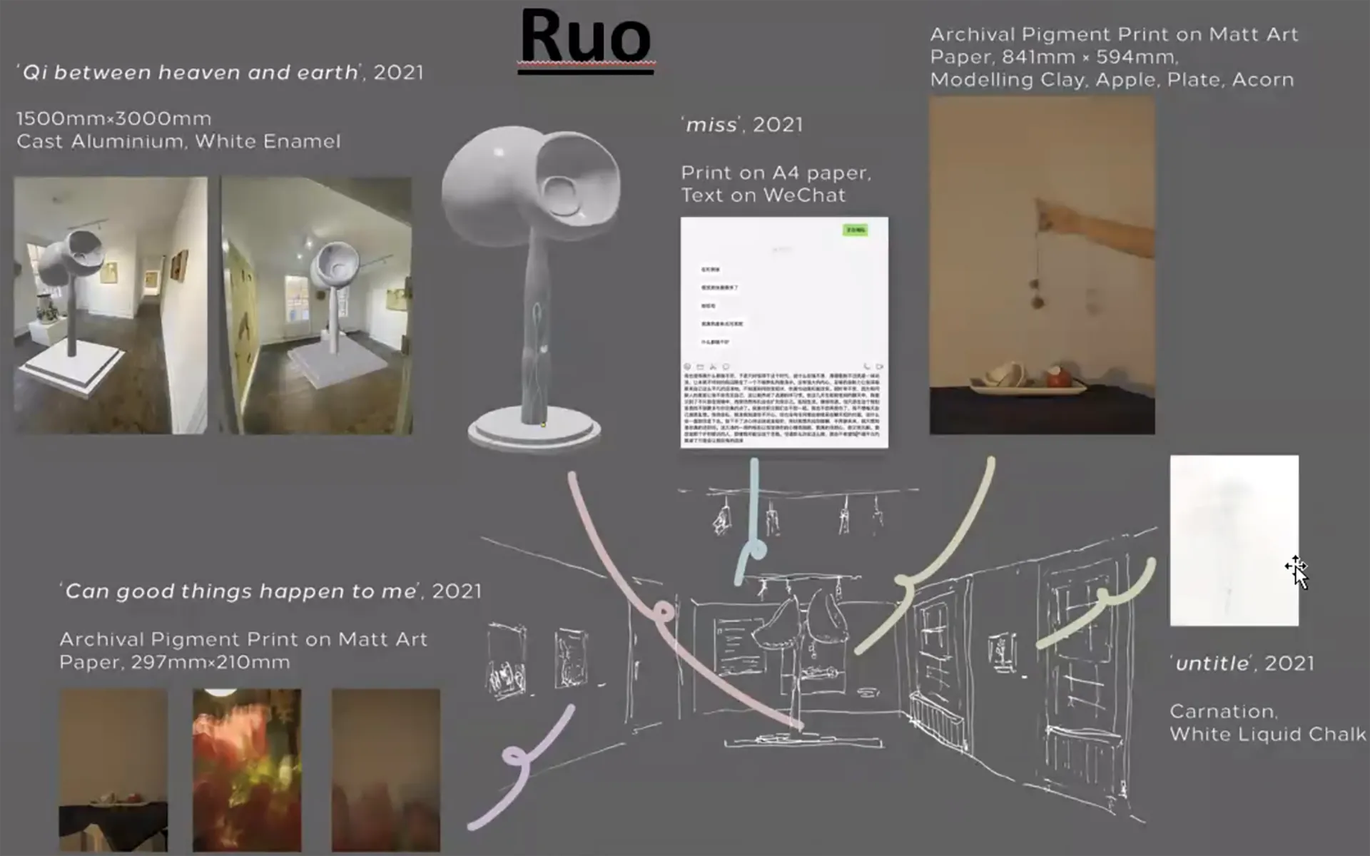Students were encouraged to discuss, organise, plan and create an exhibition that was shared and experienced through online platforms as opposed to the physical exhibition space. To bring a sense of focus and practicality to the research and development of the exhibition, students were also allocated a virtual budget to work within a specific parameter in the realisation of their intentions.