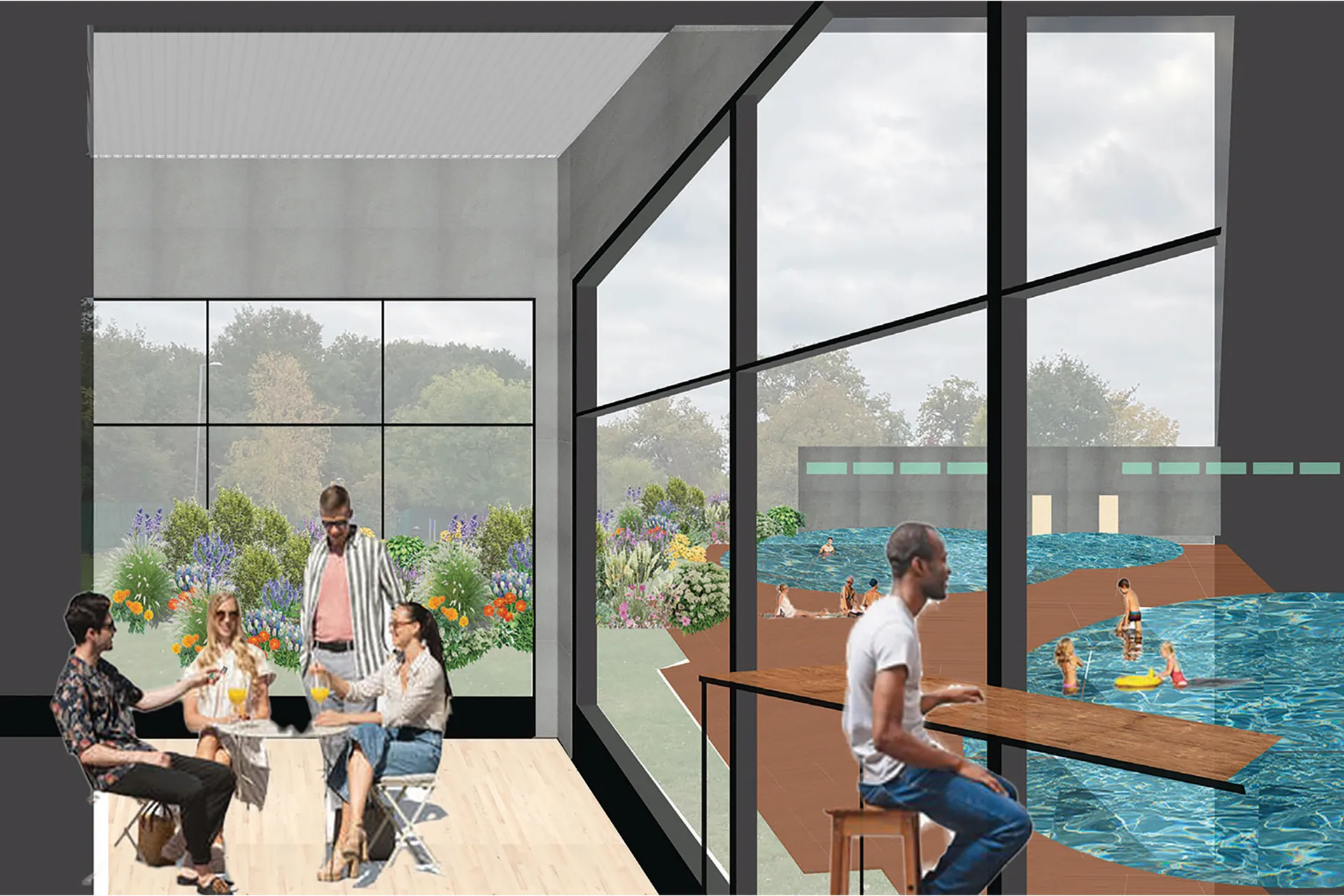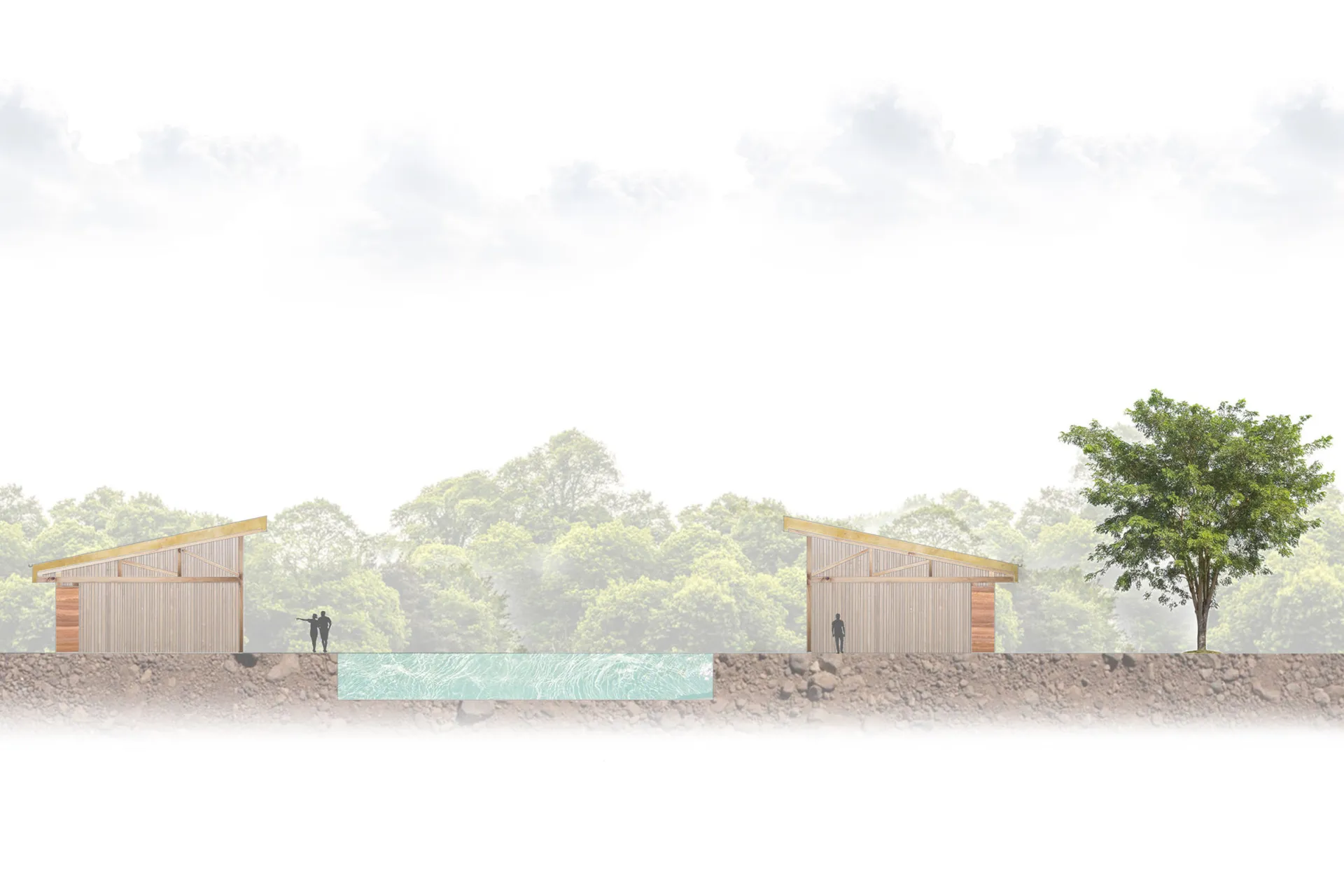 In the first semester the studio designed a lido in King Georges Field, an open green space dedicated to leisure and recreation. Our research of the local context was multi-layered and involved observational and topographical studies of the site but also involved a deeper understanding of the local community.