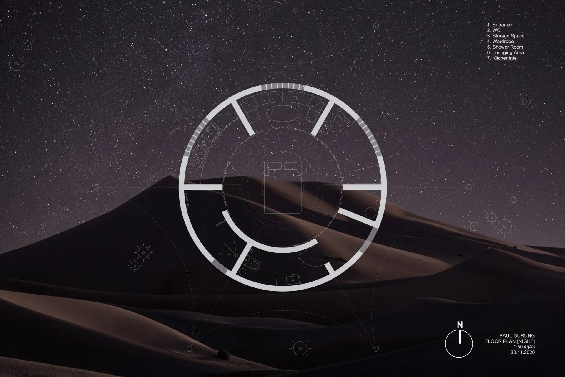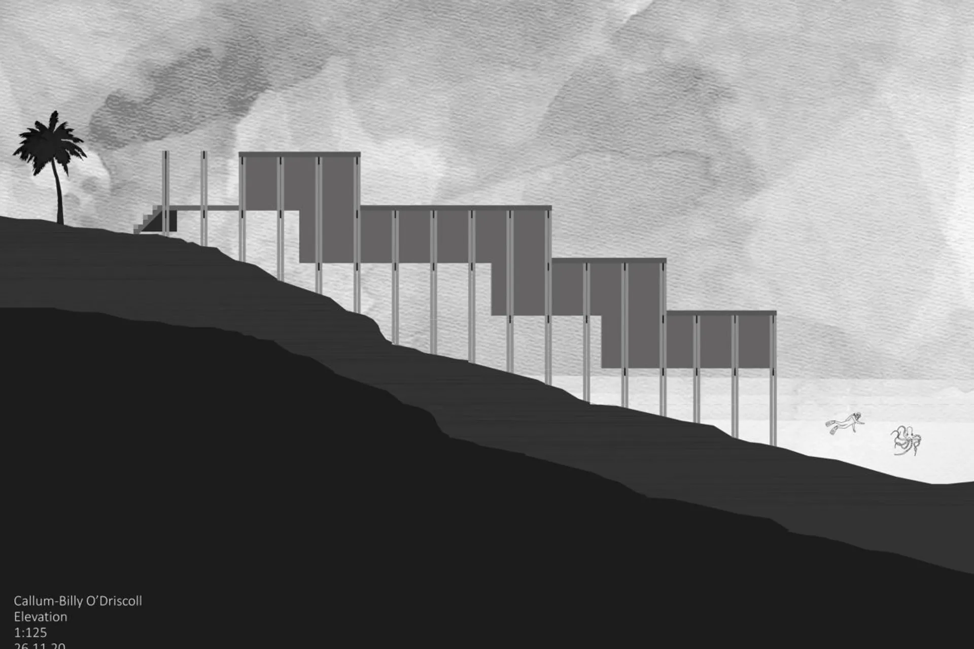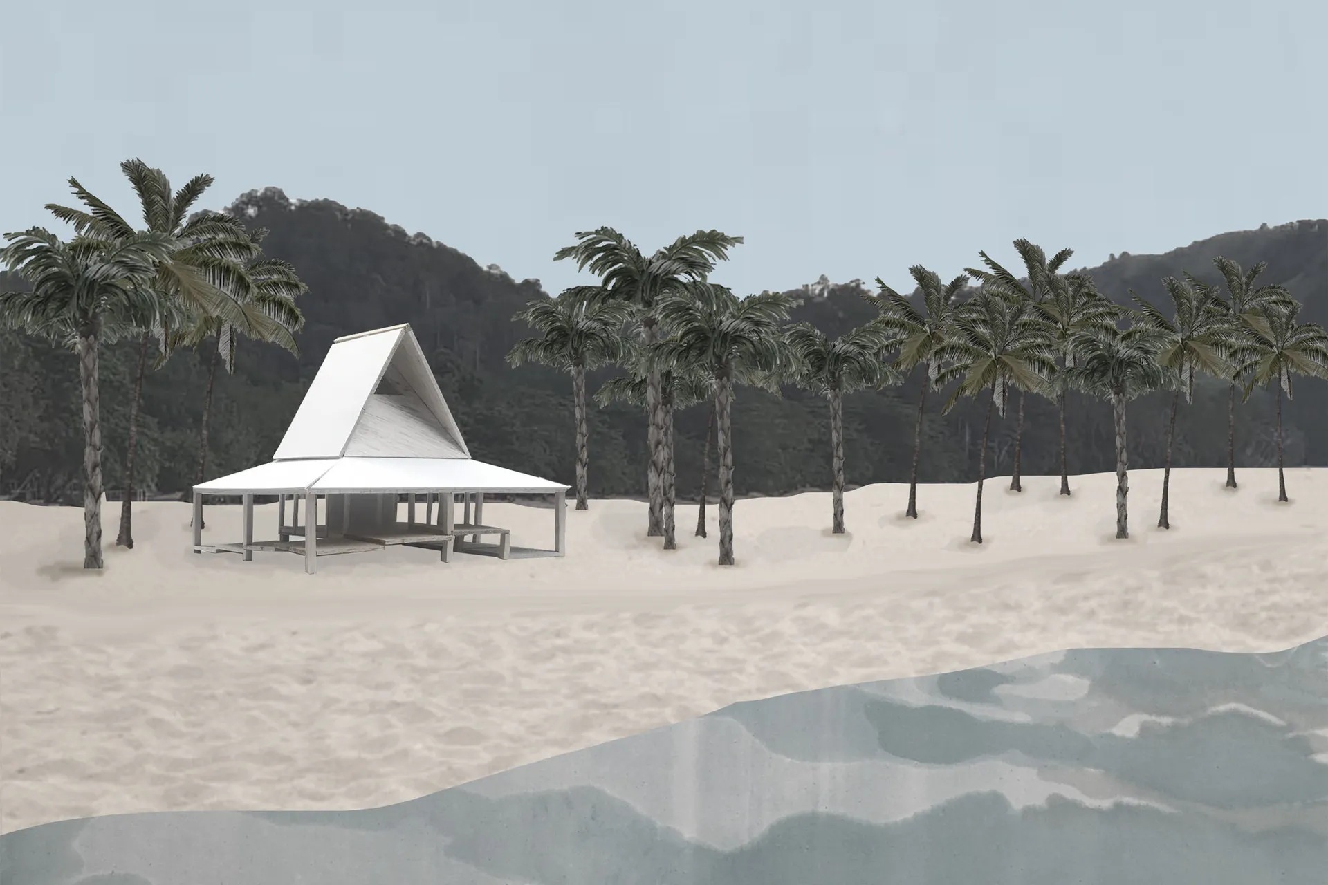 We began by looking at the history of tourism and travel, recognising the ever-changing dynamics (religious, commercial, cultural, leisure[…]) and speculating on the possible future scenarios. A first insight was put around single places of accommodation in five climatic conditions (climate as context), interested in self-sustaining refuges in remote conditions. How do the elements of dwelling take form in such an autonomous situation? Away from urban references, how do the atmospheric conditions inform the idea of building fabric?