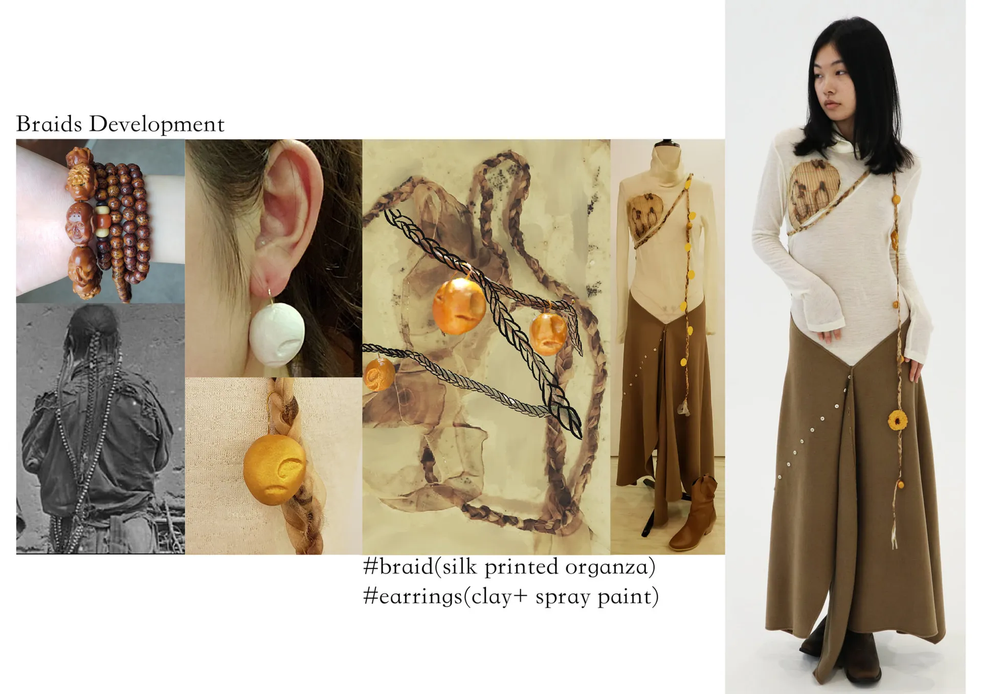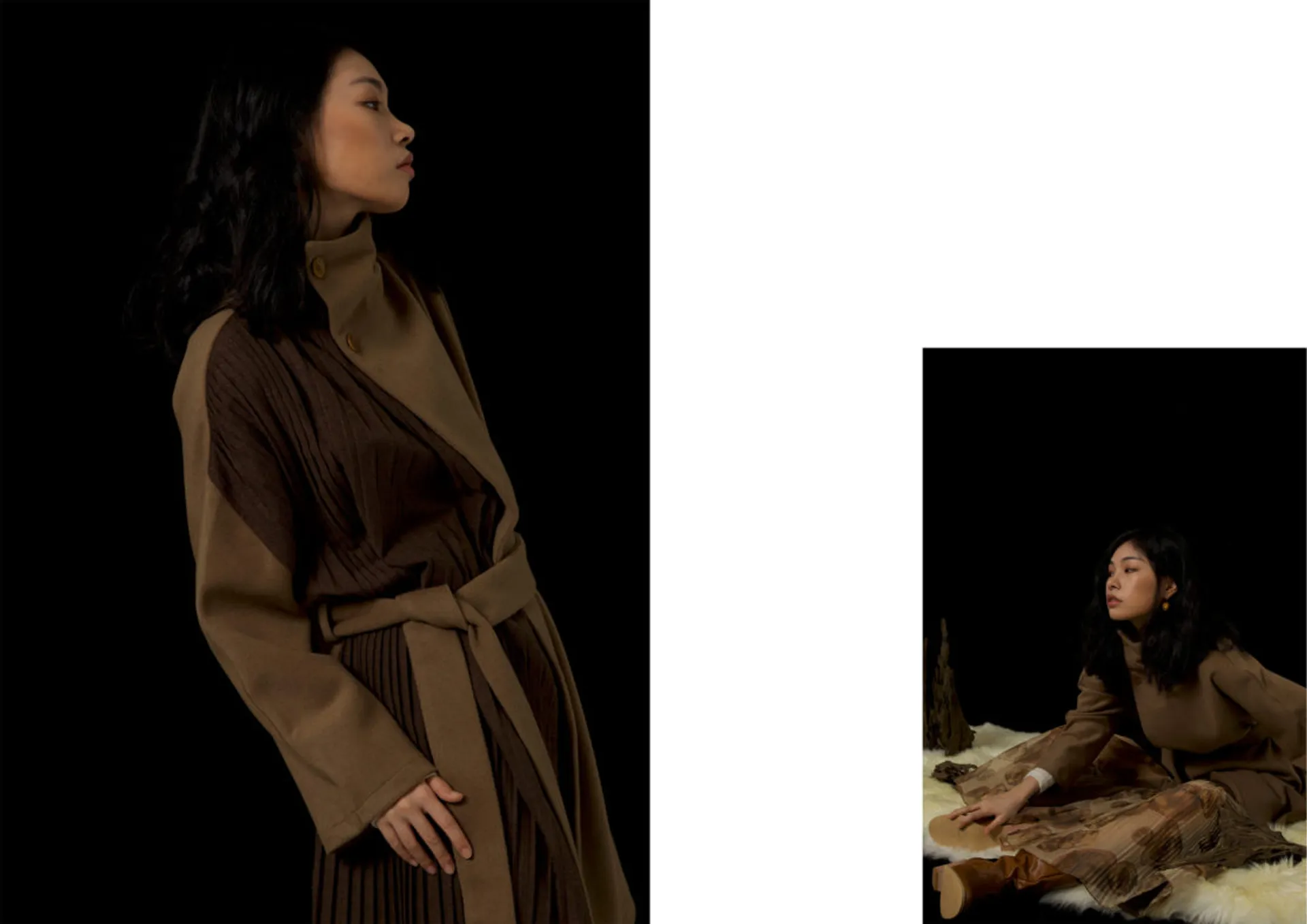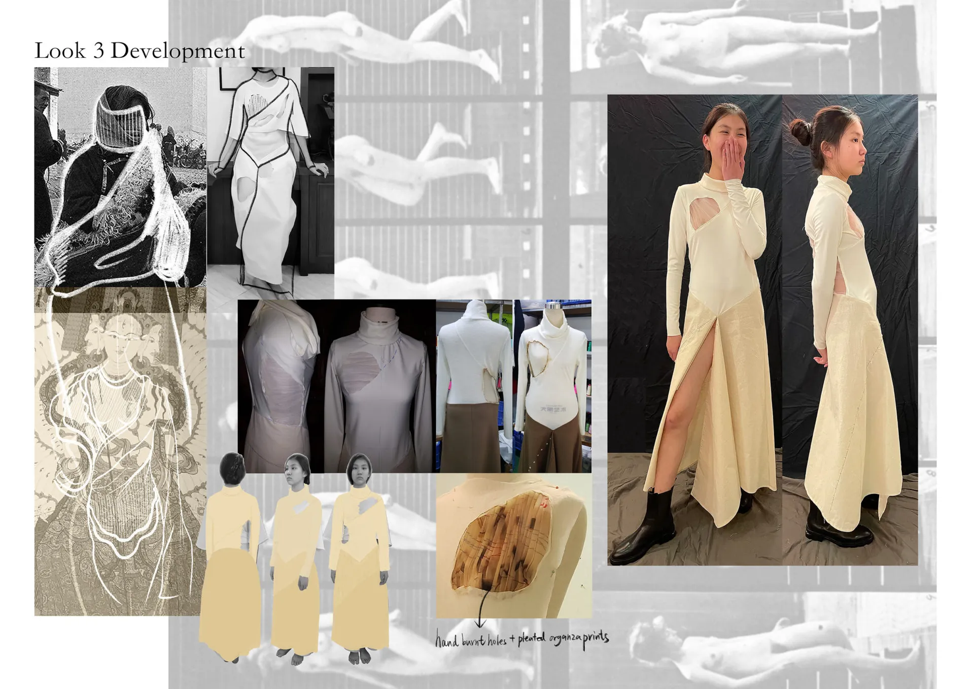 This collection is based on my own experience and story. I believe in Buddhism, but I’m also a feminist. In Buddhism, many rules limit women’s behavior including fashion. So in this project, I want to find a way for women to get more freedom of fashion in this area, and also to find a balance between Buddhism and feminism.