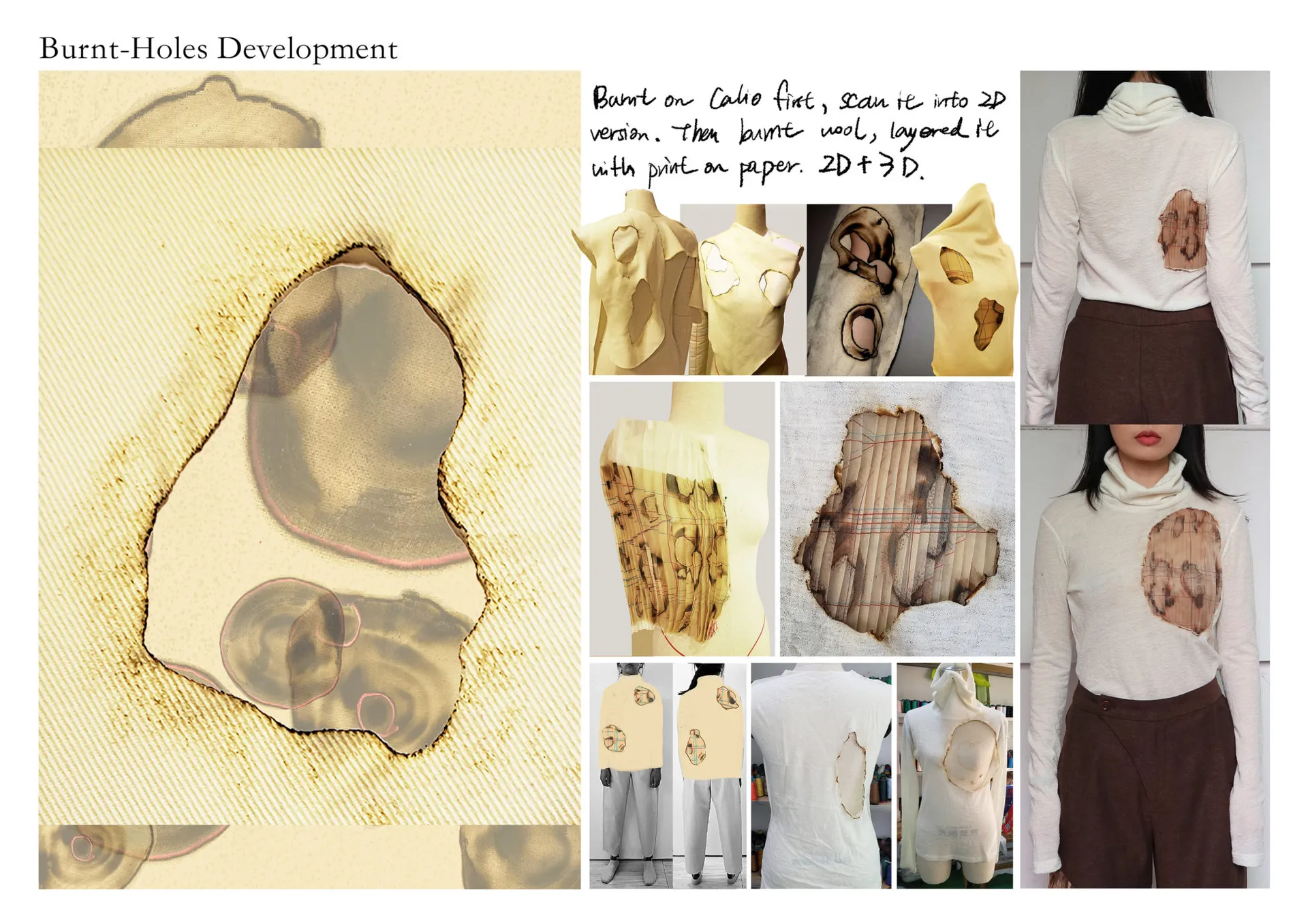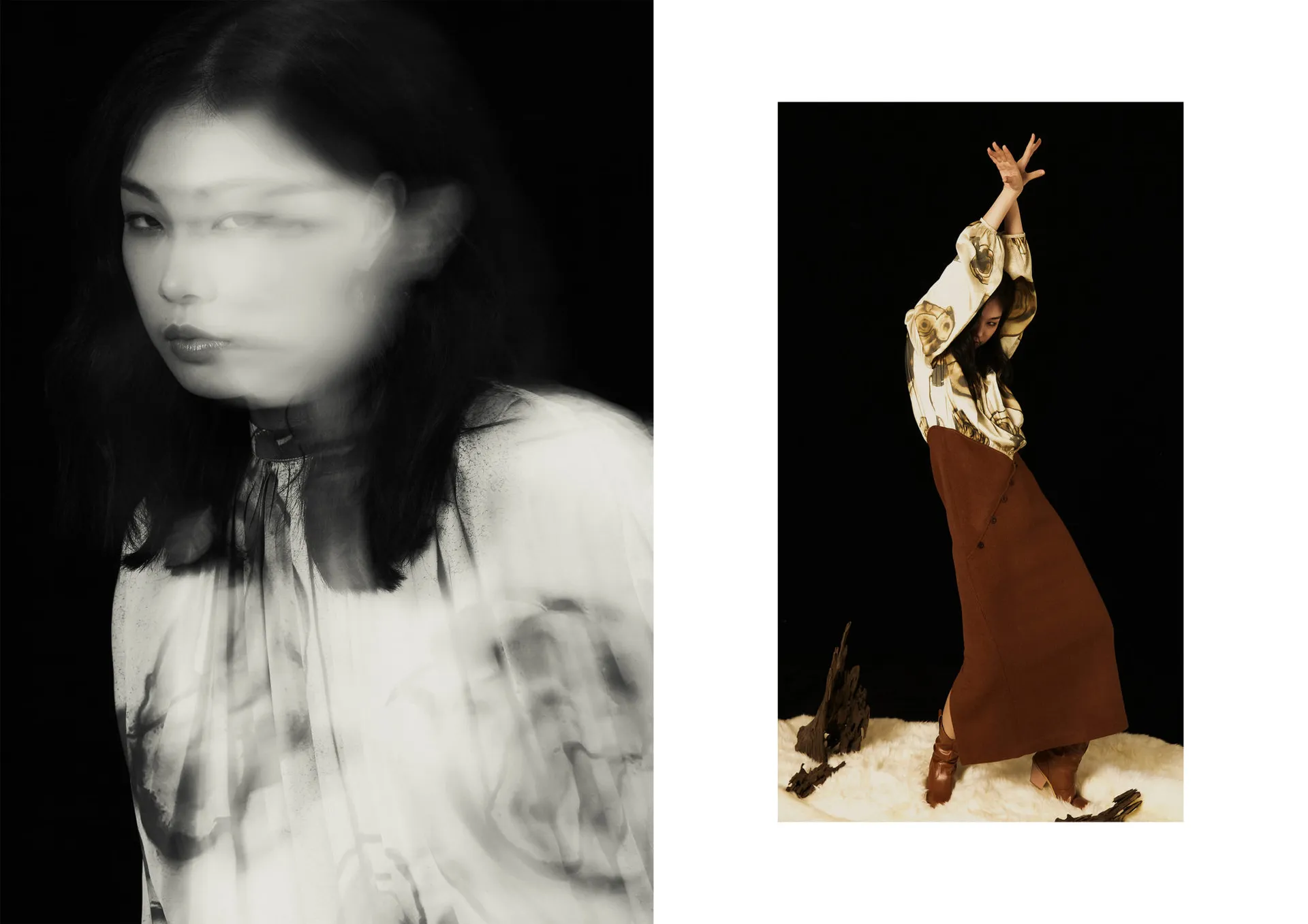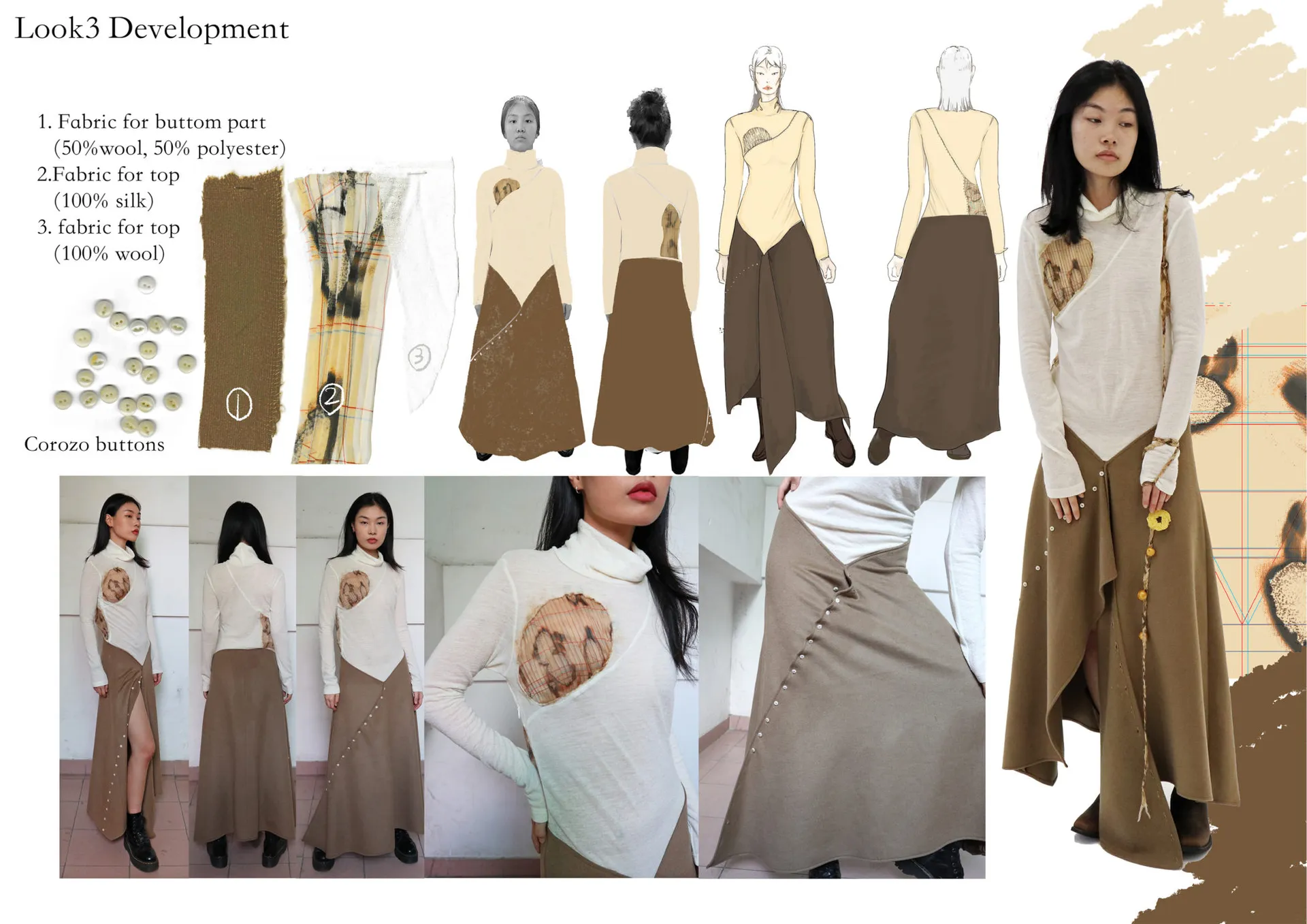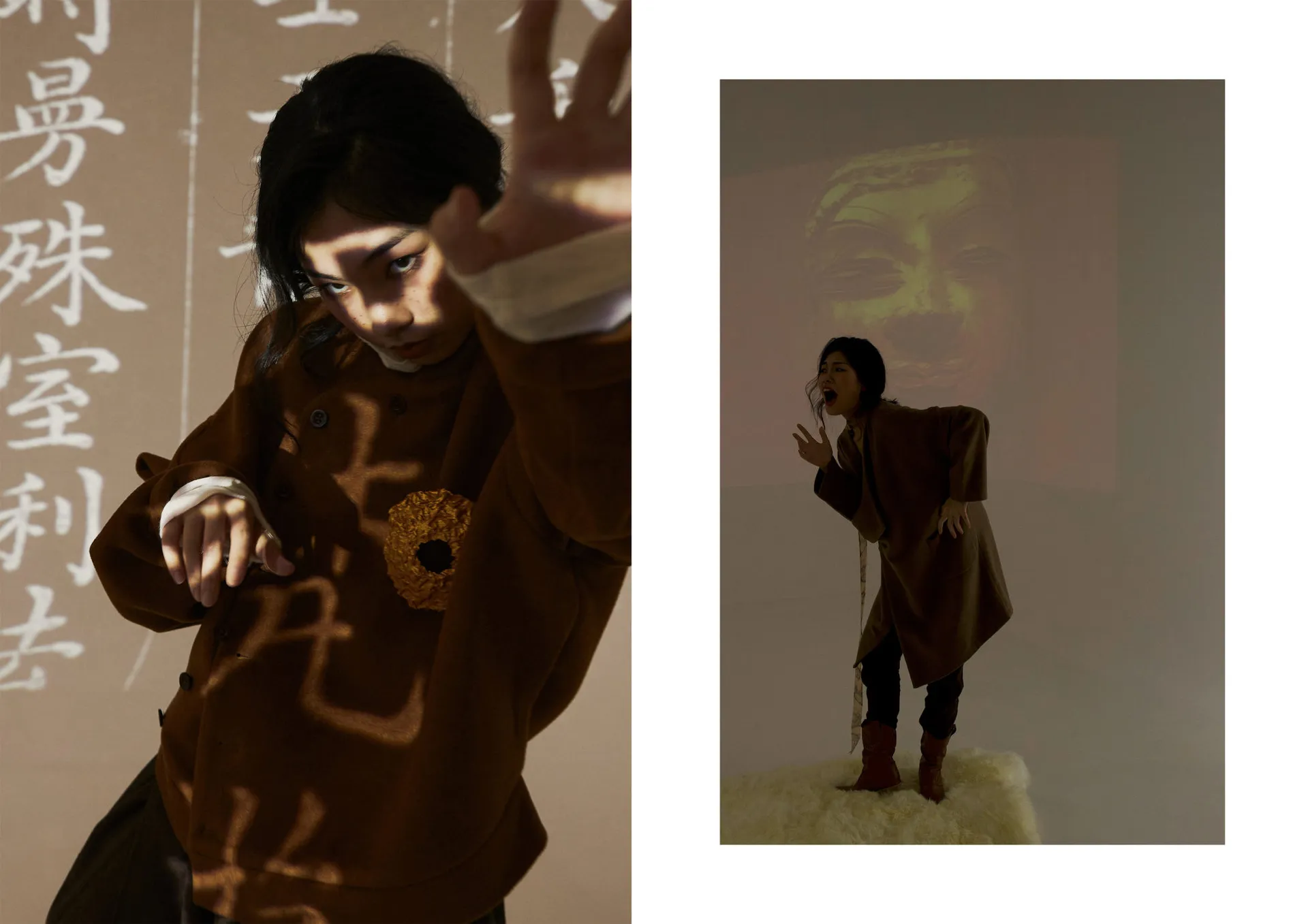 This collection is based on my own experience and story. I believe in Buddhism, but I’m also a feminist. In Buddhism, many rules limit women’s behavior including fashion. So in this project, I want to find a way for women to get more freedom of fashion in this area, and also to find a balance between Buddhism and feminism.