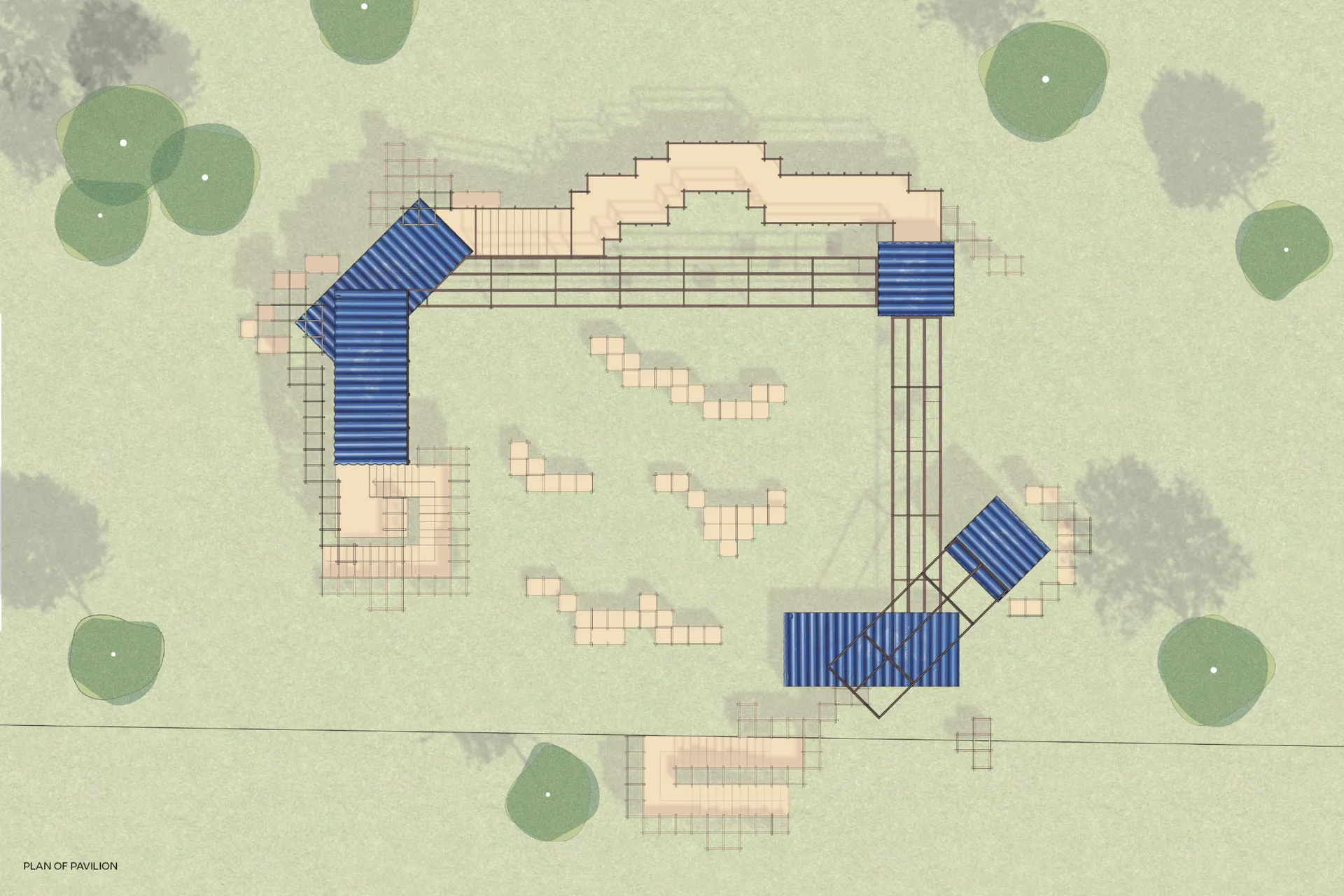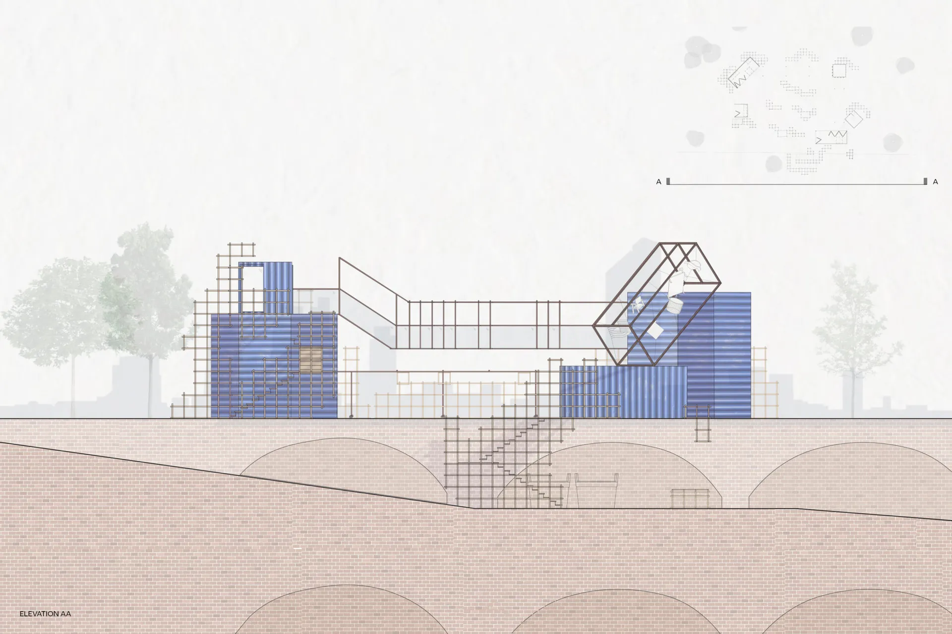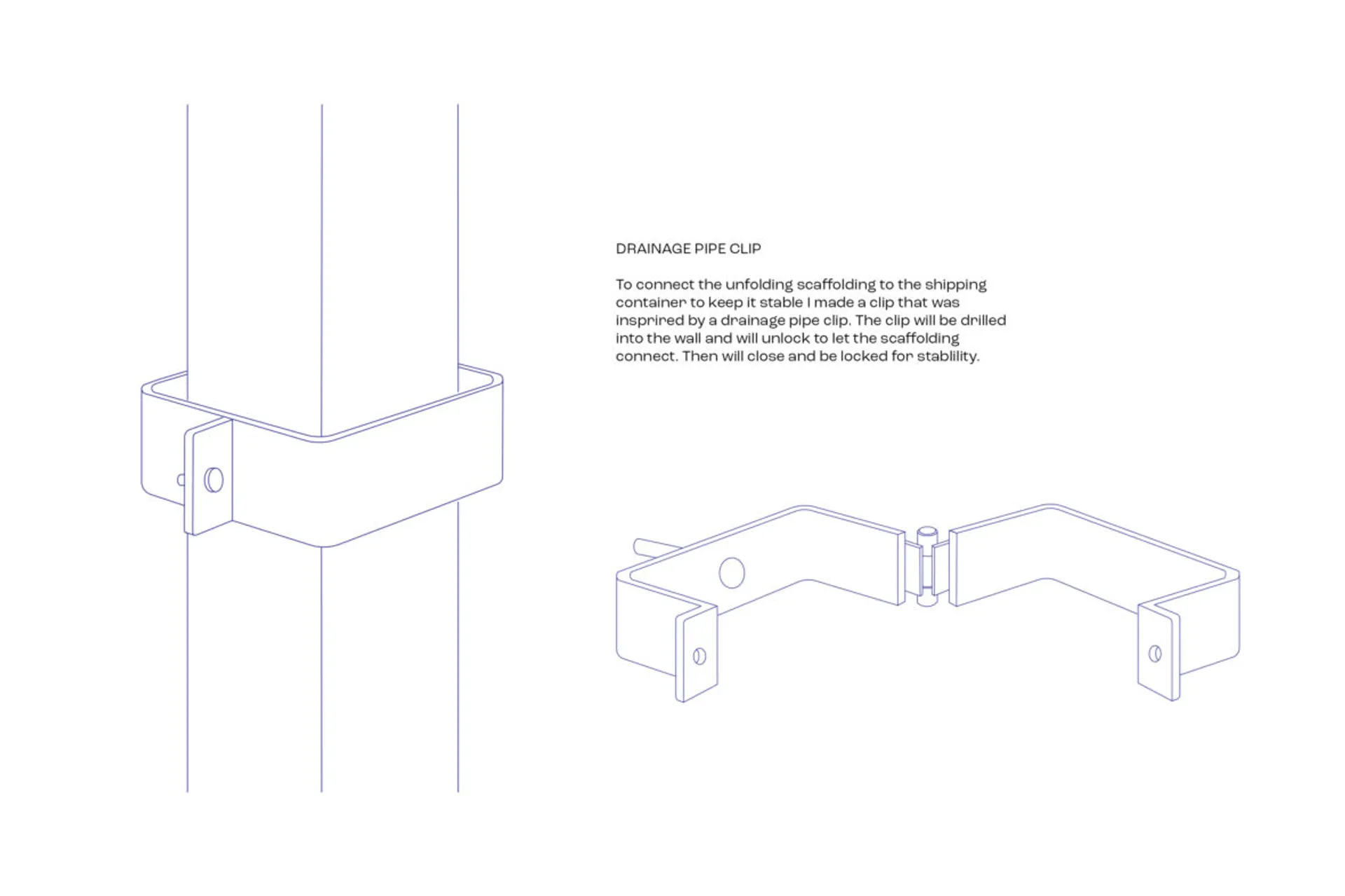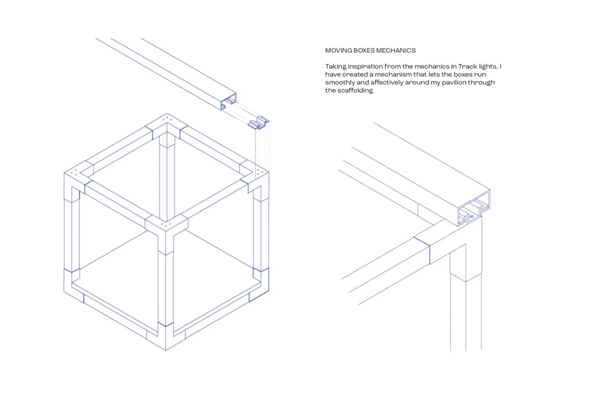 My outcome was a Brand pavilion for a festival located on Shoreditch’s, Bishopsgate’s Goodsyard. The pavilion is multifunctional, which means the architecture also acts as shelving and seating. The pavilion is also made to have a second life once the festival is over. This reflects the concept behind my product, taking old IKEA and Carhartt products, dissembling them, and then connecting them to other pieces to create a new furniture piece. This also gives the products a second life. Because of the functionality and machine-like nature of my pavilion, it now acts as a factory itself. The old product is dropped off, then dismantled in the workshop. This is then taken to another workshop, where the pieces are prepped to be sold. The product is picked up by customers and then purchased as flat-pack furniture, where it can then be taken home and built.