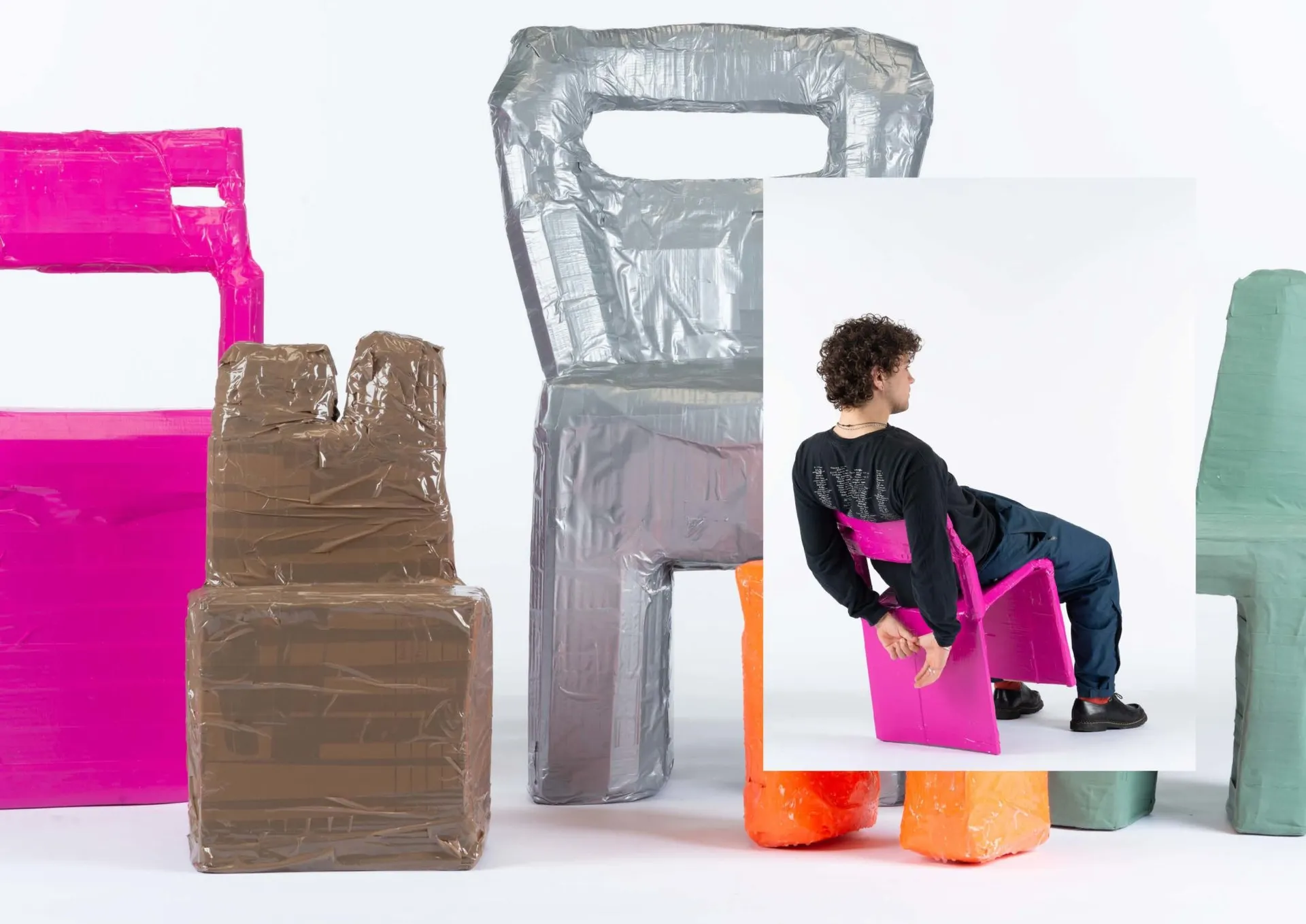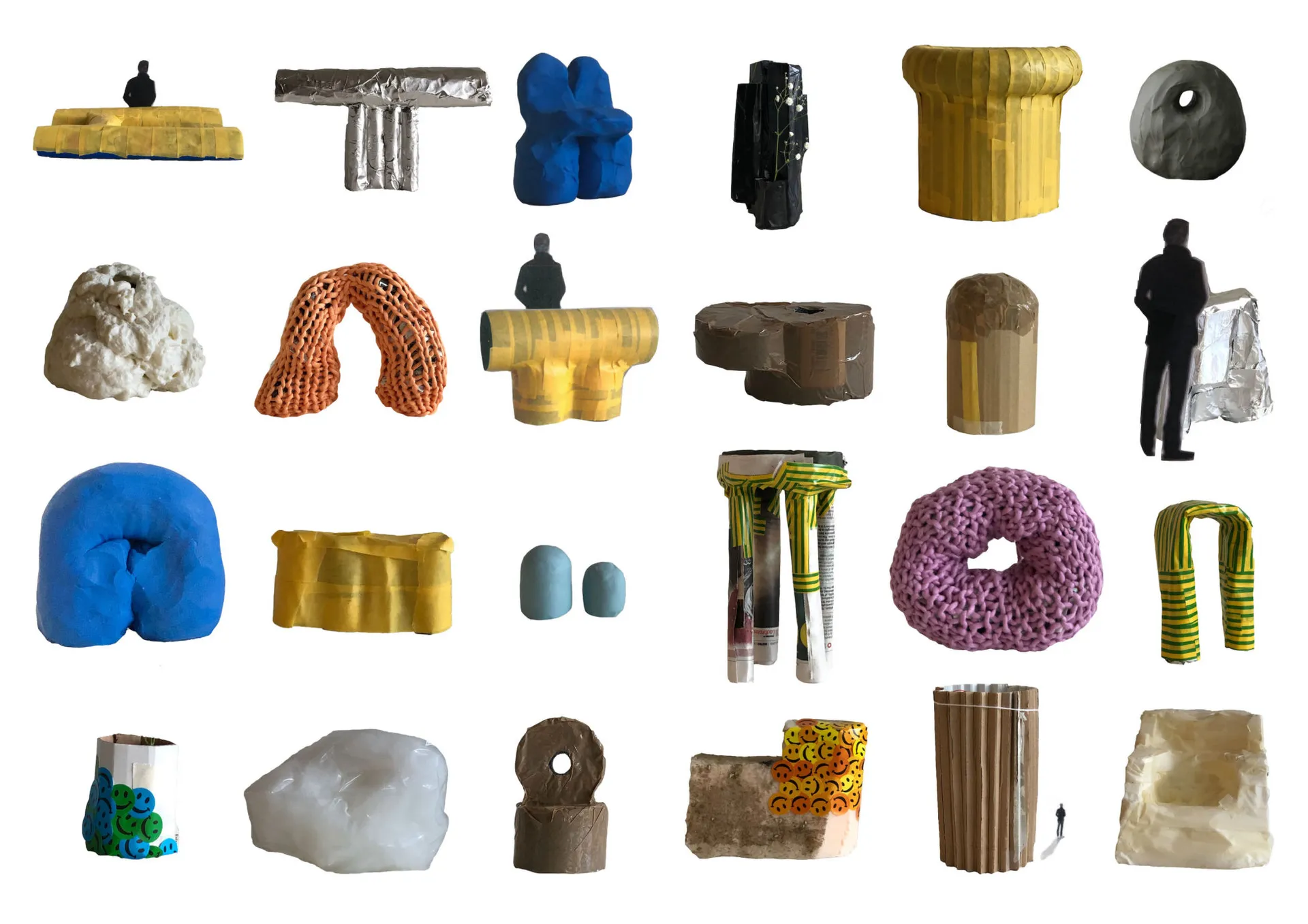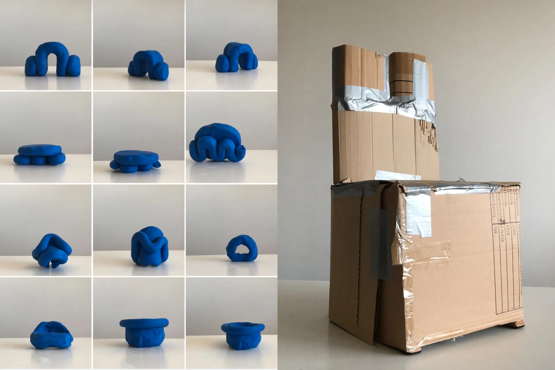 The project is a critical questioning of craft and making. The benefit of using our hands is recognised mentally and physically. Stemming from research found for my dissertation in which I came across articles and books discussing how using our hands can improve and lift our moods. As our third lockdown began, with the looming knowledge I would be sat in my room staring at walls, I gathered what I could, cardboard, tape, yarn; and started making. The project started with no planning or designing, the idea was to keep my hands busy, build my confidence in creating at a time of restriction. The traces and marks from the production have been left visible on the surface of the objects. Speed and the default character of each material shaped the language of the models. Creating the concept of sketching in space. The final collection developed from the initial models made during lockdown, changing the ephemeral materials to permanent objects, ready to go in people’s homes. They’re to encourage creativity, shine a light on the handmade touch, hopefully enticing people to grab the materials around them and learn that making is something everyone can do.