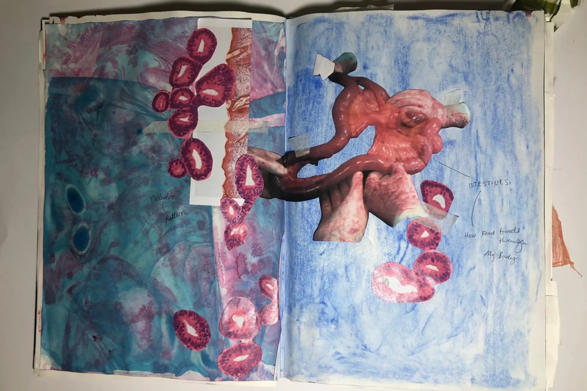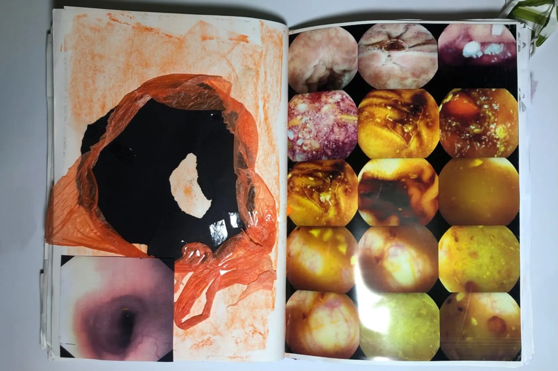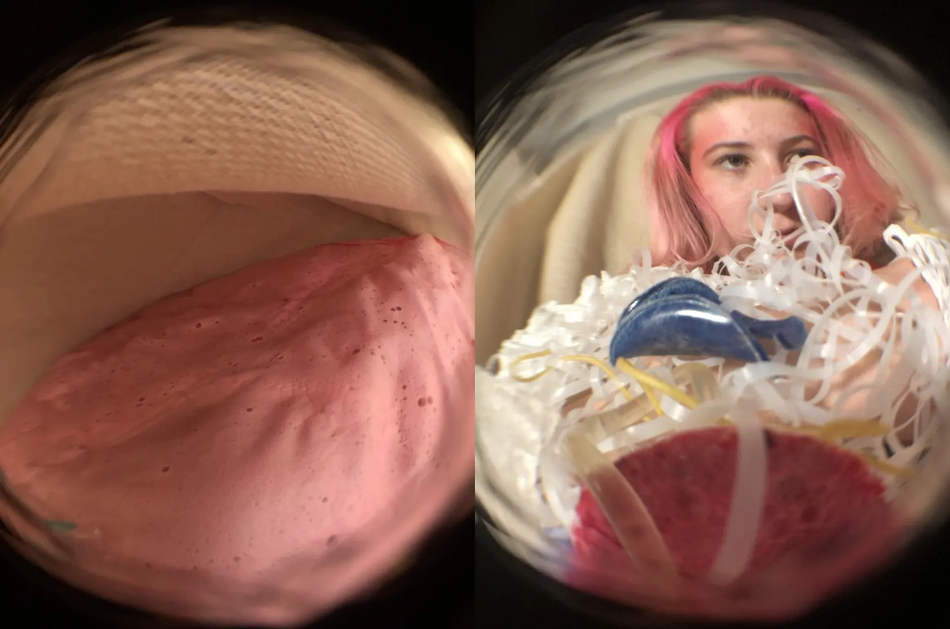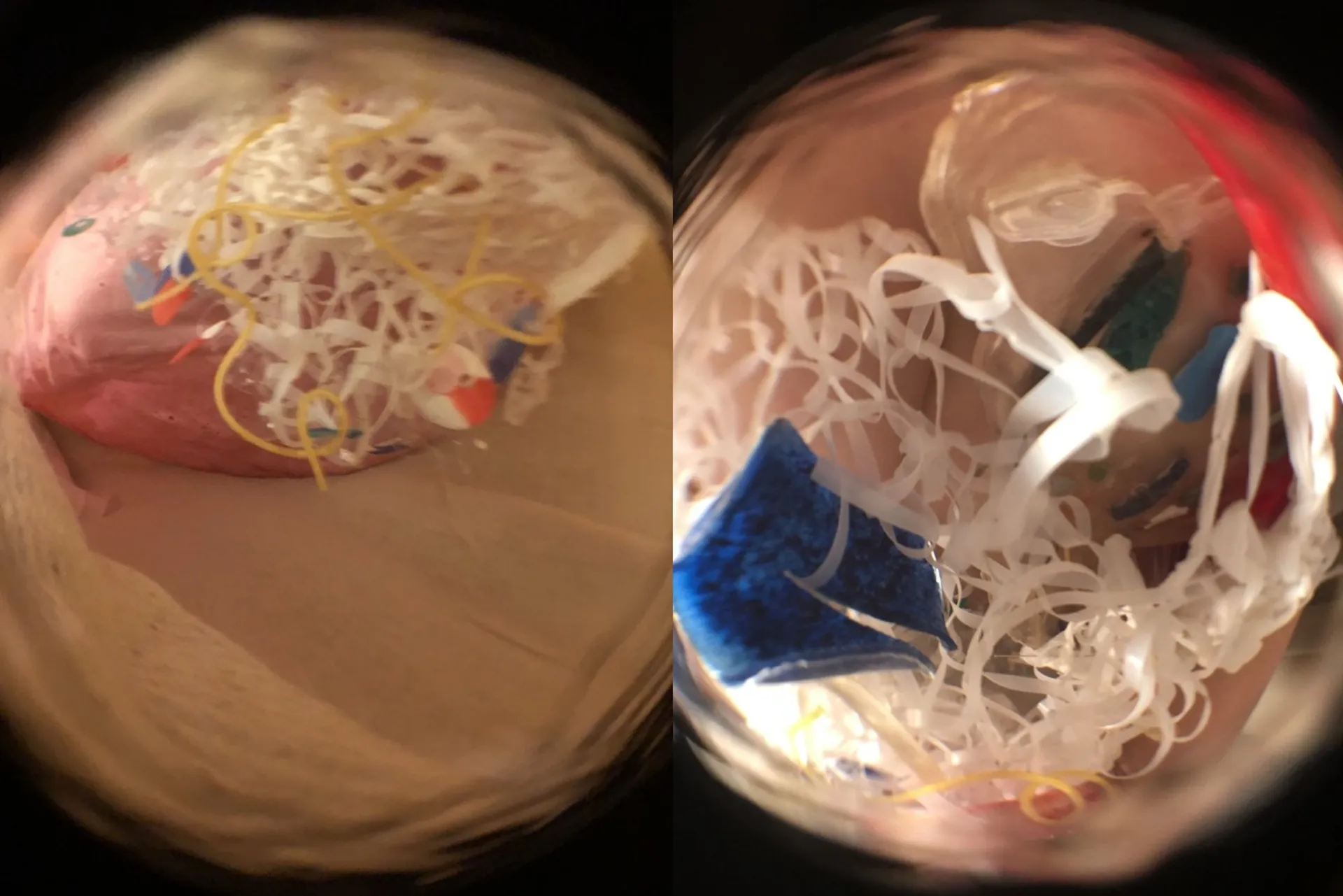 A documentation of the journey of plastic, which a person consumes, through the digestive system.The statistic ‘A person swallowed 5 grams of plastic during a weekend’, was the catalyst for my garment using bio plastic and recycled plastics.