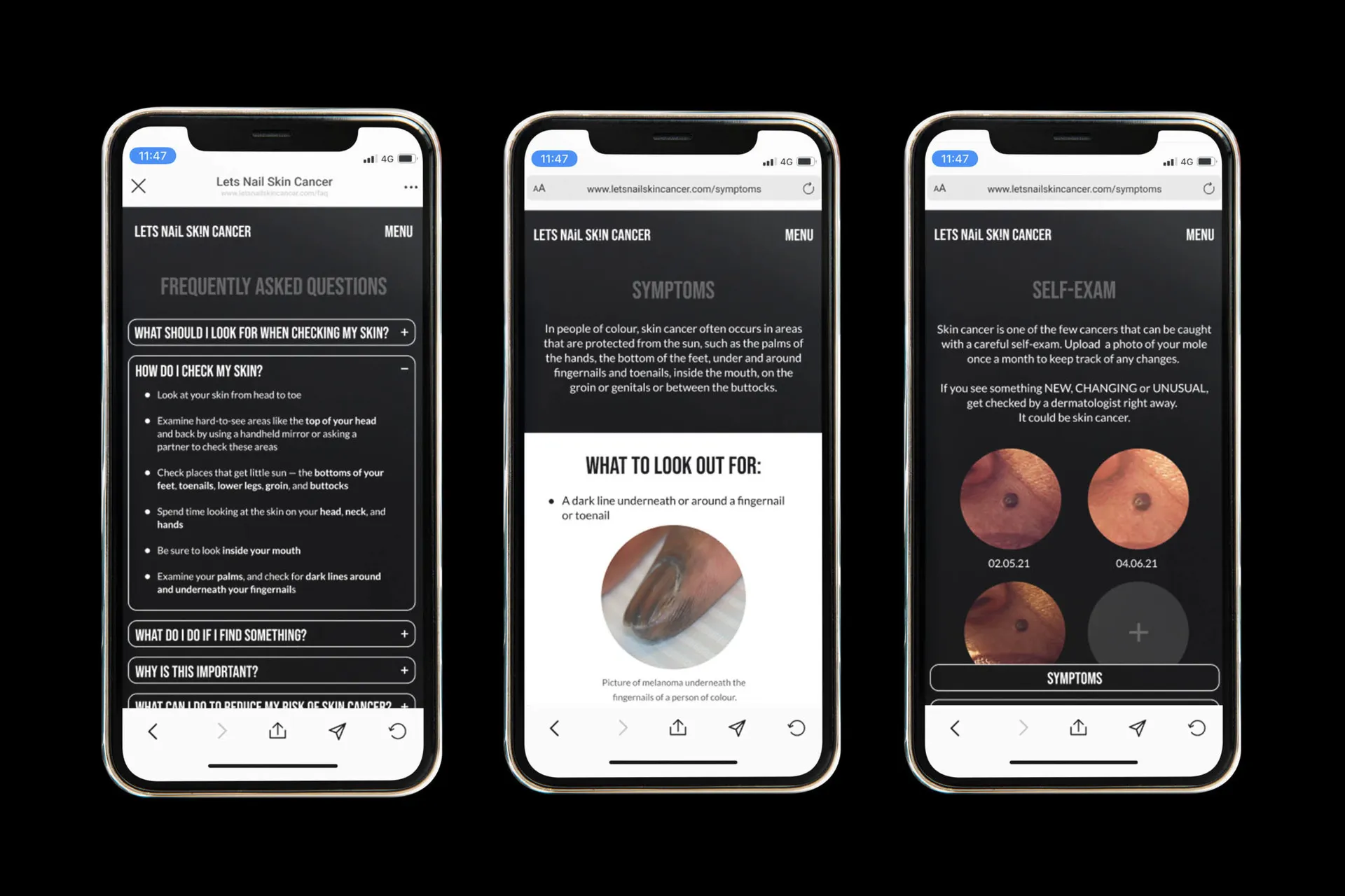 Lets Nail Skin Cancer is a campaign to raise awareness that skin cancer can occur in different places on the body for People of Colour than it can for White people. By increasing awareness, the campaign hopes to also drive diagnosis and close the gap in survival rates.