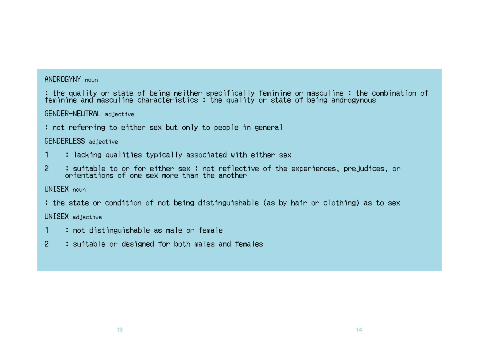 In the past few years, brands have been using “androgynous”, “genderless”, “gender-neutral”, and “unisex” to describe progressive clothing collections.