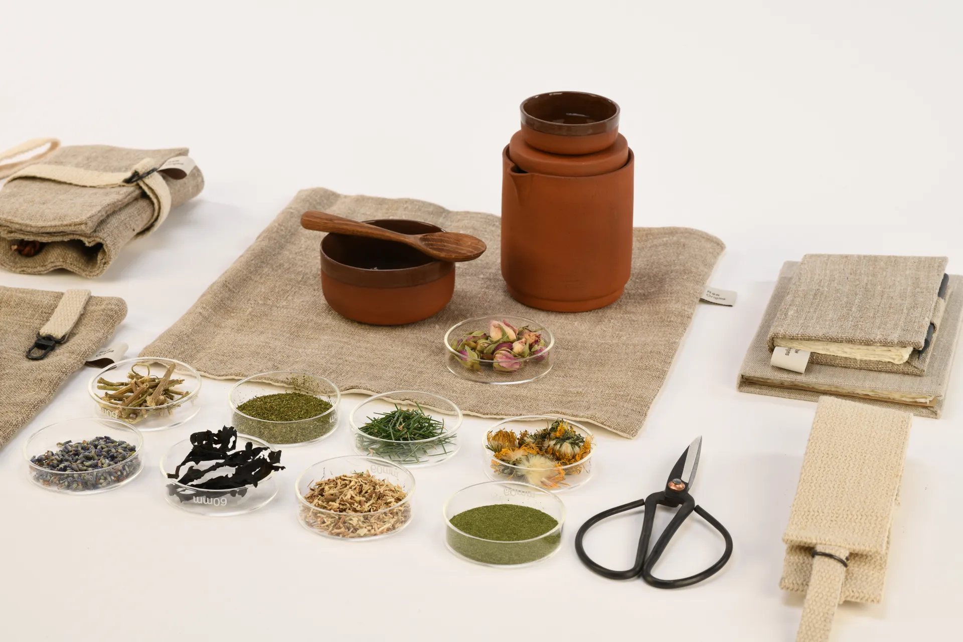 Raw Origins is a materials research-led collection investigating bast fibres, primary materials, locations, and traditional craft skills in the UK. The desired outcome was to create a contemporary foraging collection inspired by raw materials. Raw Origins is an array of accessories for outdoor and indoor use and can be used for activities to bring us closer to nature while promoting health and wellbeing. Such as woodlands day camping or a simple day out in a city park and urban foraging for wild tea ingredients.