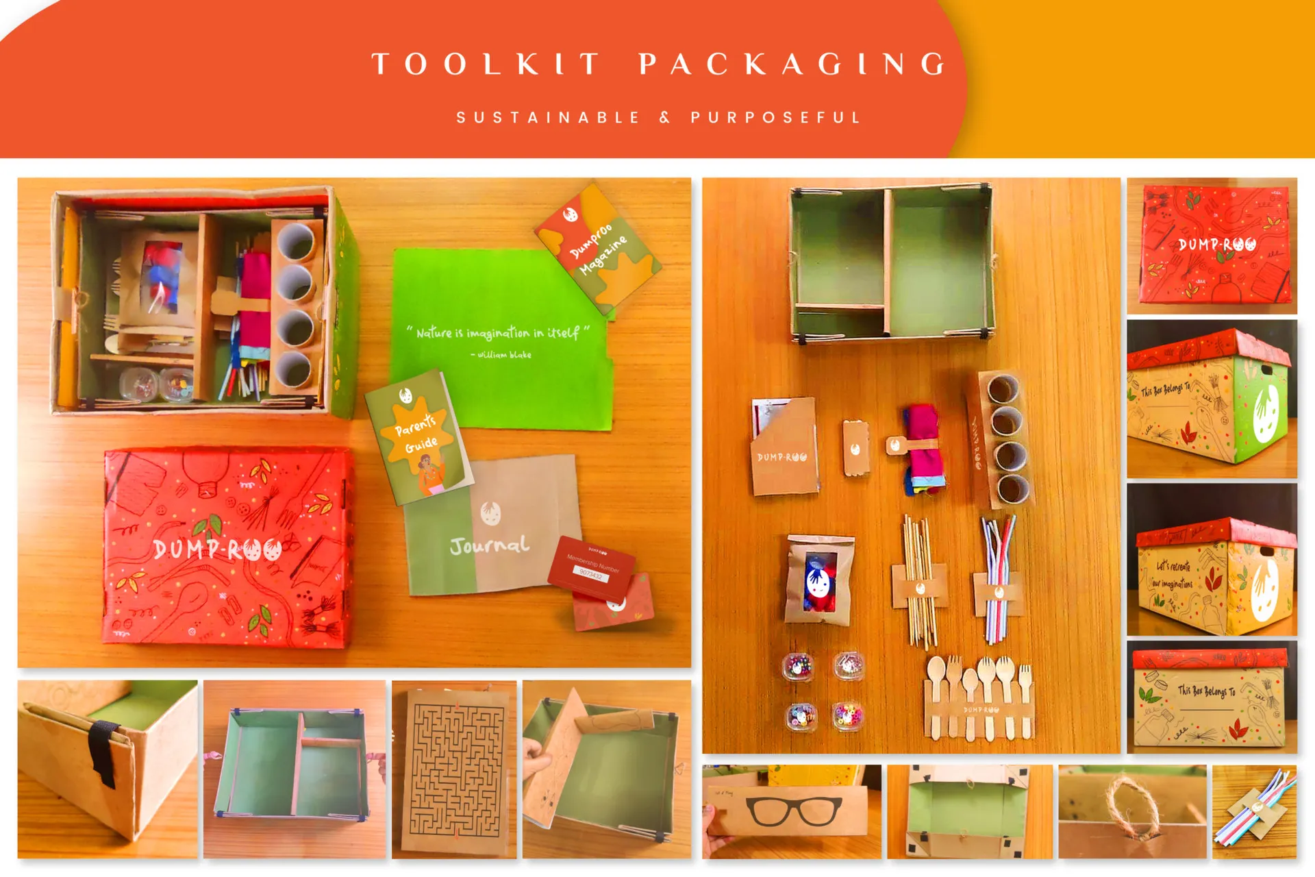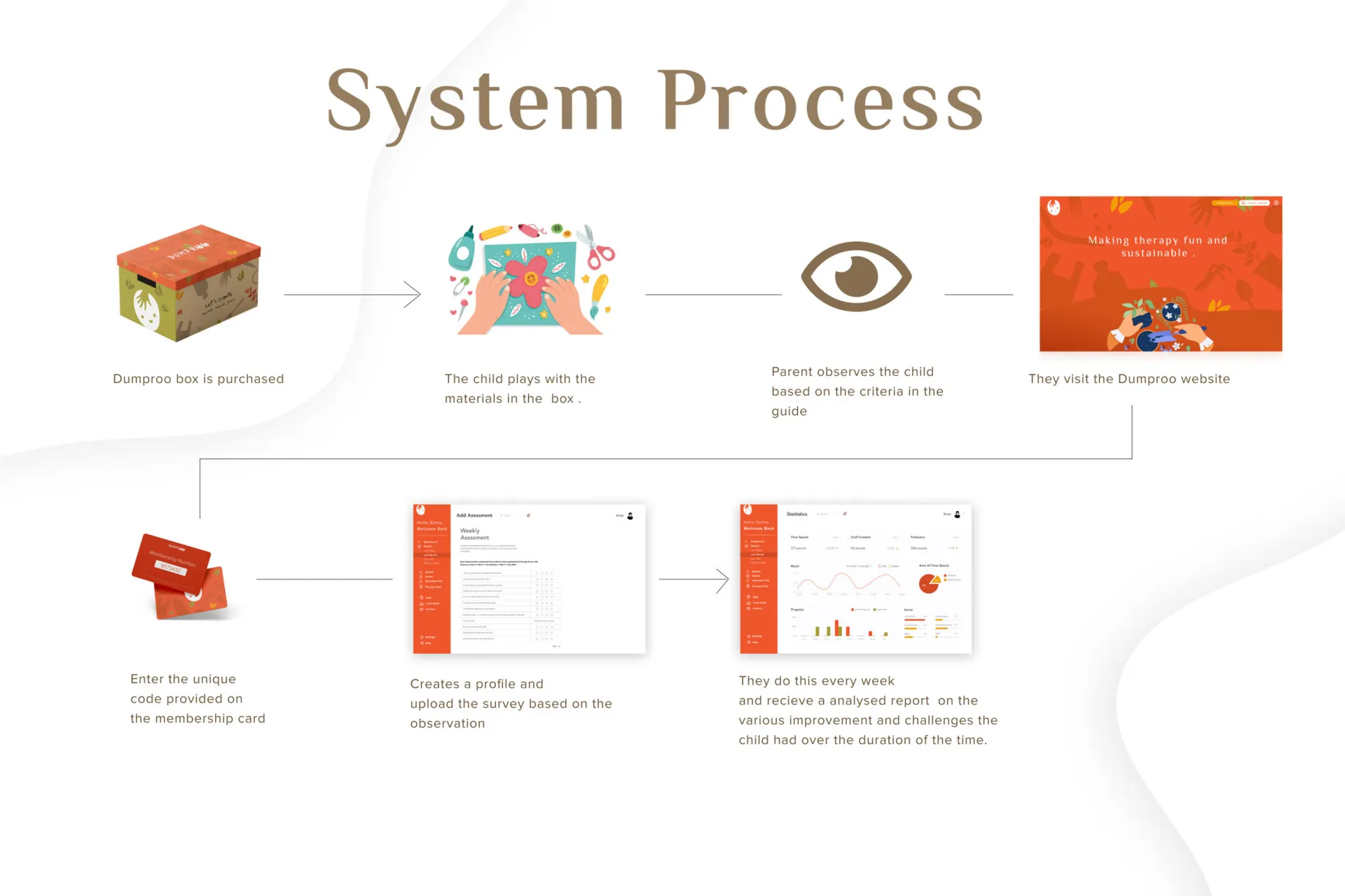 My MDP project was Dumproo, a toolkit curated and created for ADHD children taking into account the challenges faced by both the children and the parents. The toolkit also Provides an analysing tool that helps parents to have a deeper understanding and keep track of the improvements of the child over a period of time. The Dumproo box was created to be completely sustainable and each material in the provided in the box is recyclable with a fun interface for the children.