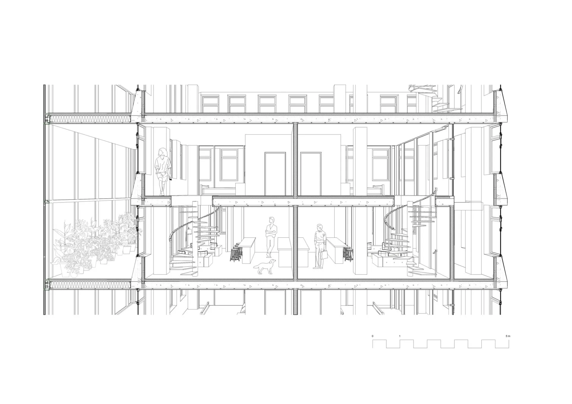 The project takes shape via the act of cutting an existing robust structure to avoid new-build. It acts as a