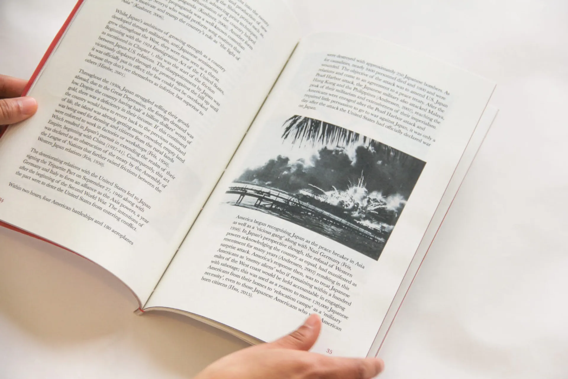 Ashmina’s Dissertation Publication title is ‘Investigate how Japan has used hard and soft power to gain strength as a country, and how it affected its relations with the West. Published in the form of a physical printed book, taken inspiration from traditional Japanese book design.