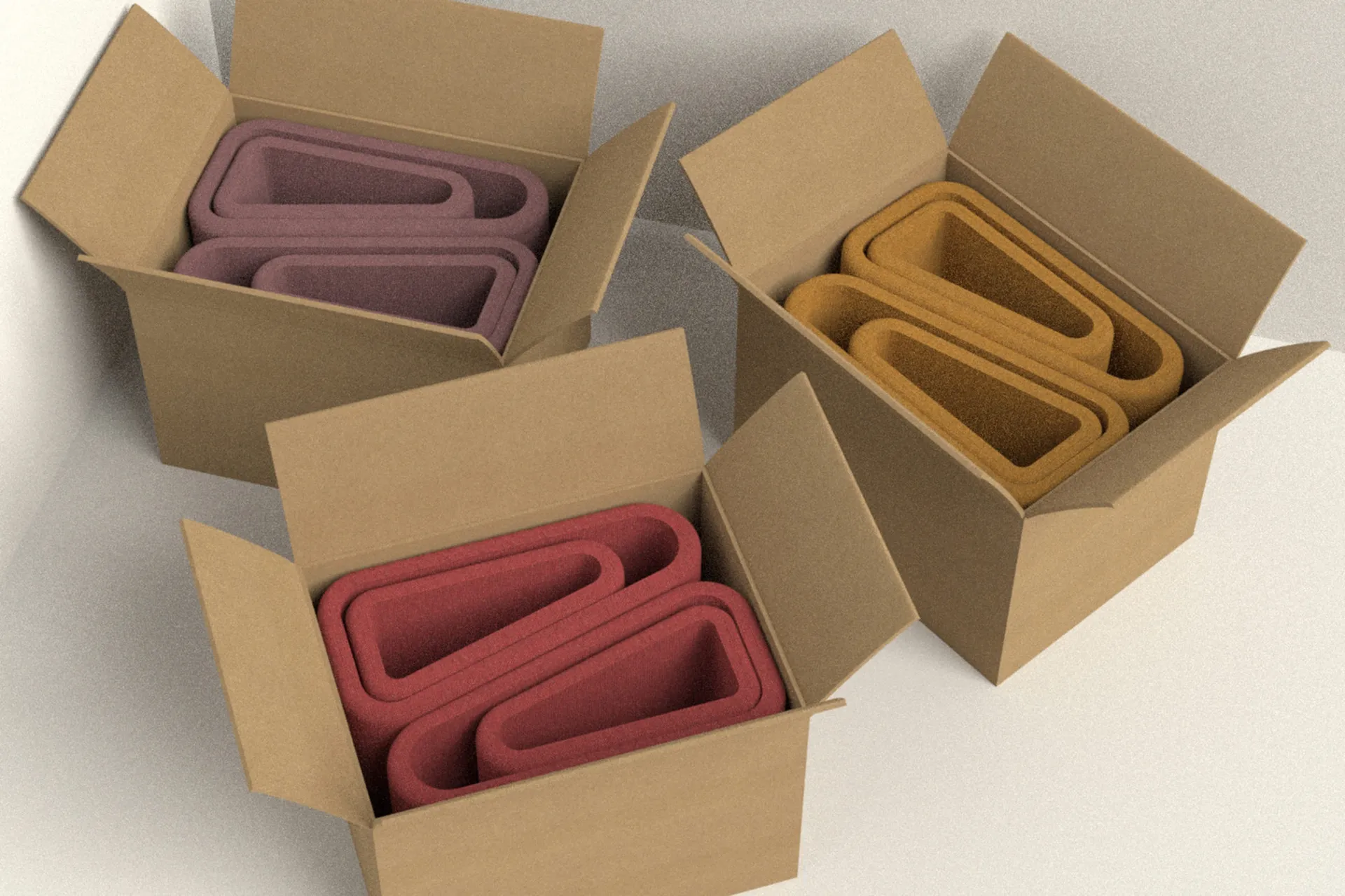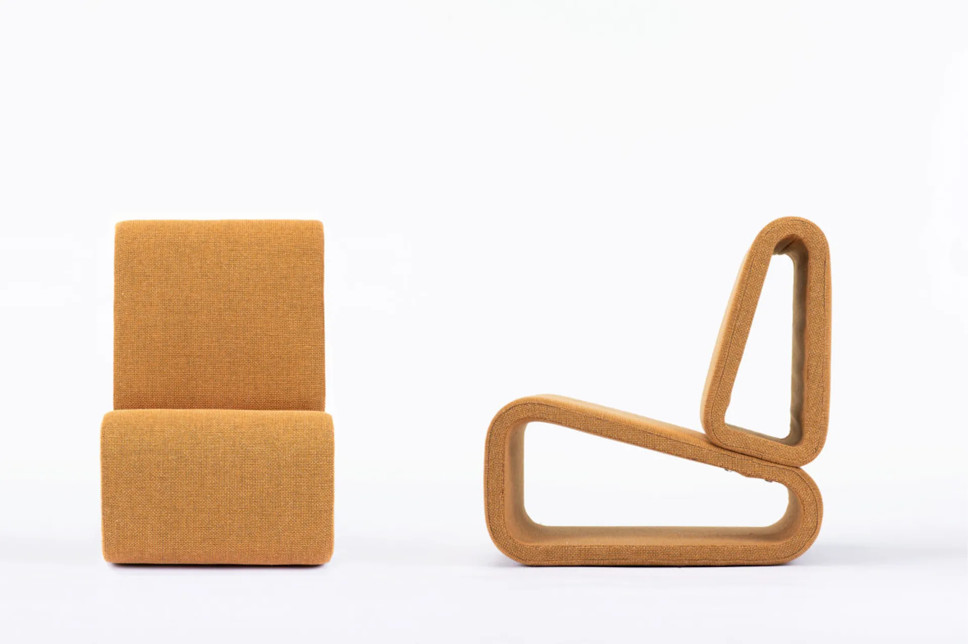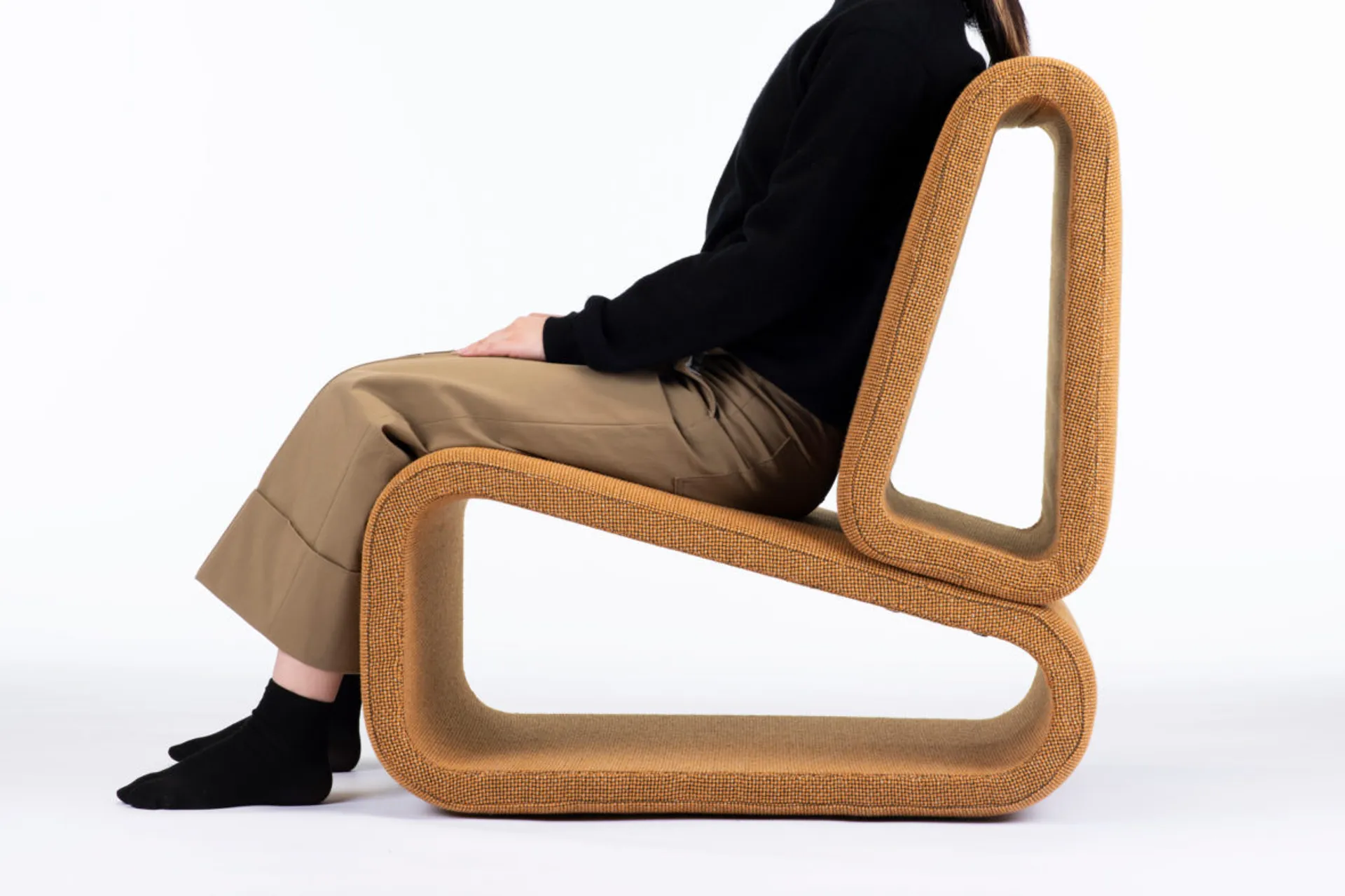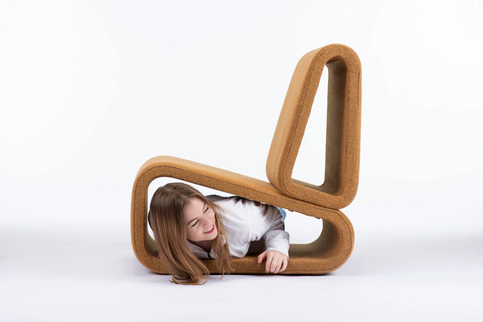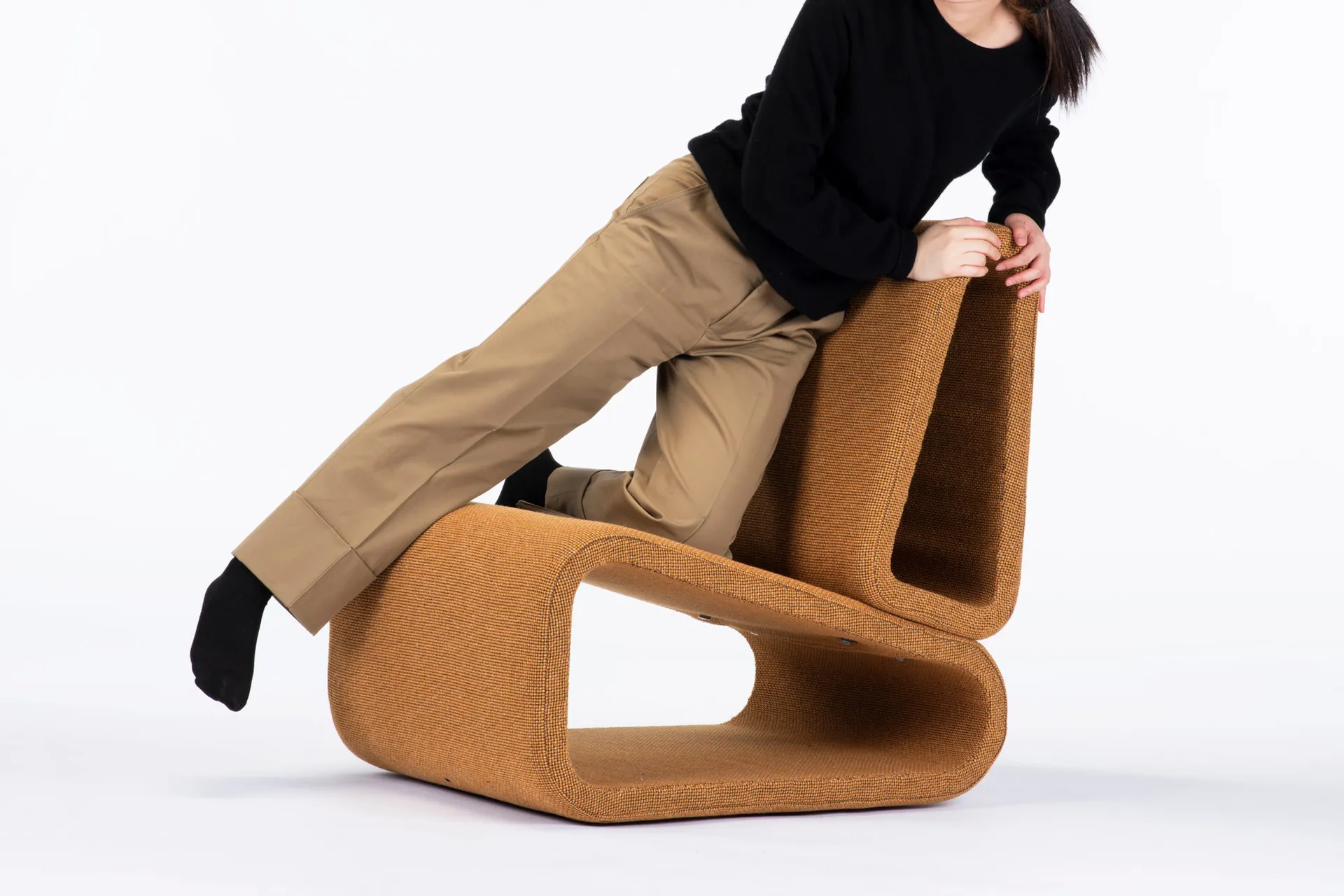Set Tee is a Modular lounge chair, derived from the idea that triangles will always fit within a square, allowing the back to nest within the base.