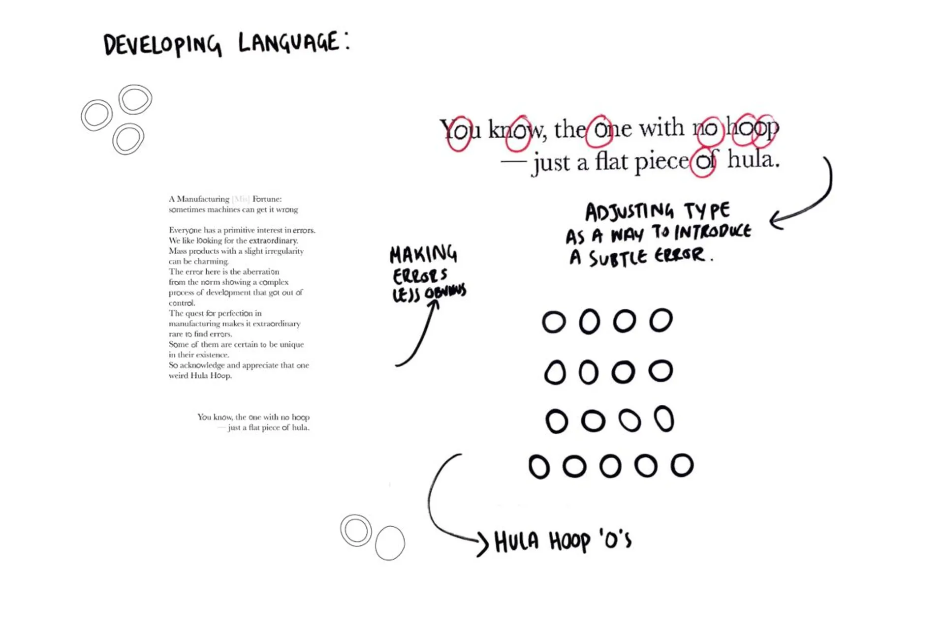 Communicating the errors within manufacturing- With a process that likes to eliminate all errors and aims for flawlessness and perfection, I want to celebrate how ‘defective’ things can occasionally appear in production and in their own way feel ‘one-off’ within a line of repetition.