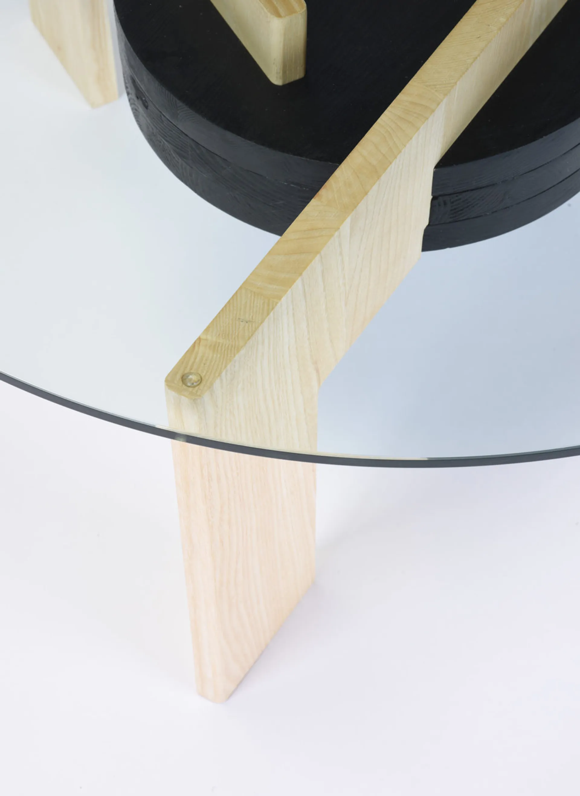 Using Ash for the legs and laminating pine wood for the central piece creates the structure to be long-lasting life span with the weight of the glass top creating stronger stability towards the final piece.