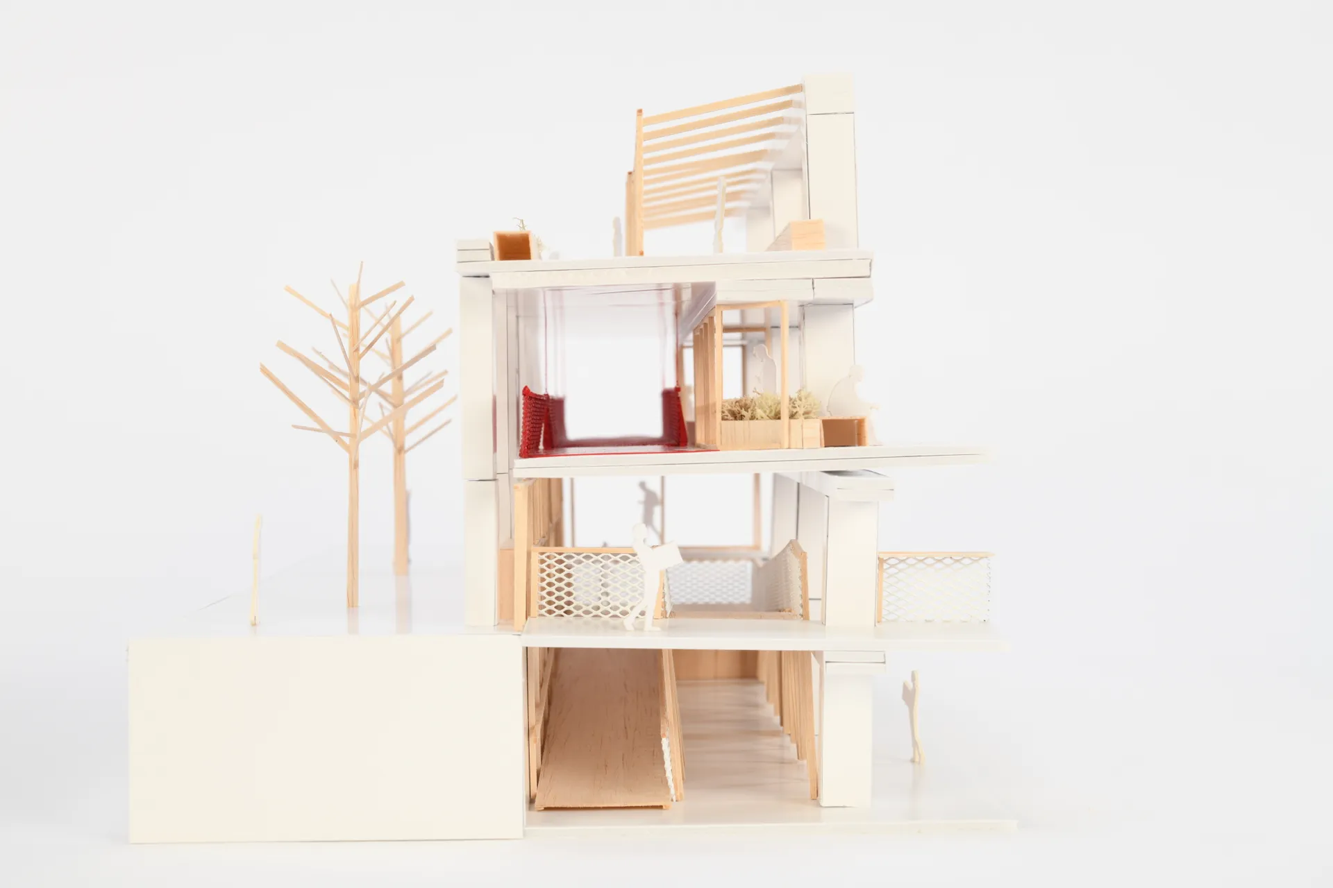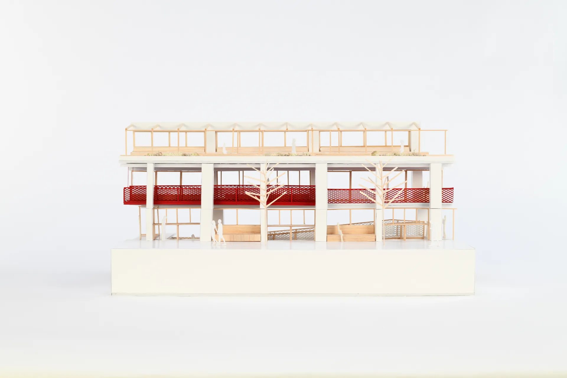 The Multihall is a building for the public that raises the discussion on how town centres can be revitalised. It asks questions on how we can adapt our lifestyle to be more sustainable in our behaviour.