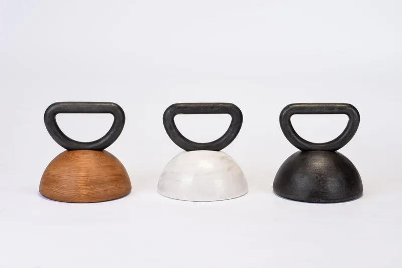Three materials make up the basis of my kettlebells, each signifying a pinnacle moment in strength graining’s historical materiality; from Greek stone dumbbells, Indian wooden clubs and Victorian globe barbells, the materials I chose do not only represent a rich past which is rarely expressed in modern day equipment, but also a substantial difference in mass through the materials used- 24kg Cast Iron, 12kg Marble and 6kg Oak.