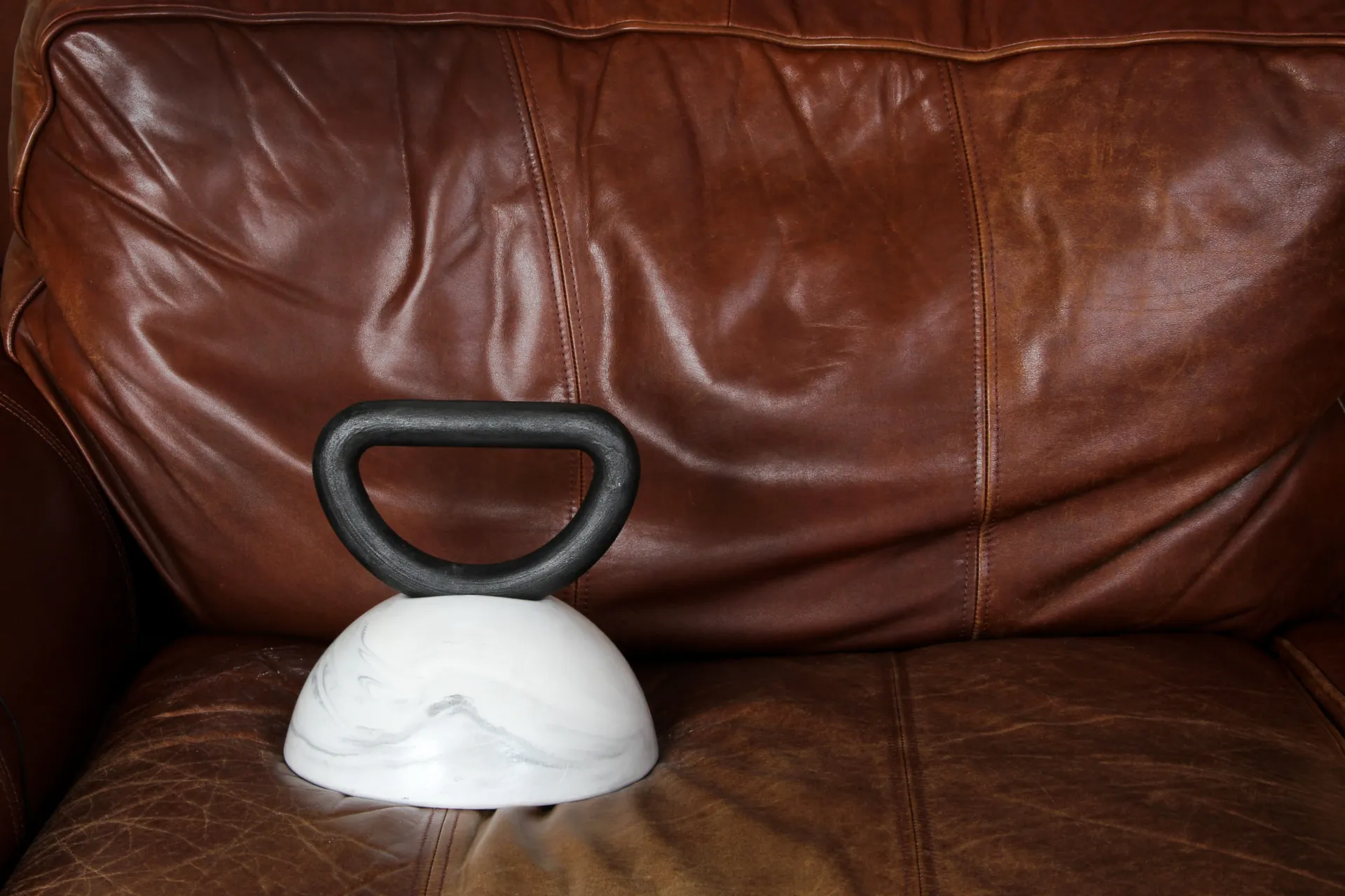 Three materials make up the basis of my kettlebells, each signifying a pinnacle moment in strength graining’s historical materiality; from Greek stone dumbbells, Indian wooden clubs and Victorian globe barbells, the materials I chose do not only represent a rich past which is rarely expressed in modern day equipment, but also a substantial difference in mass through the materials used- 24kg Cast Iron, 12kg Marble and 6kg Oak.