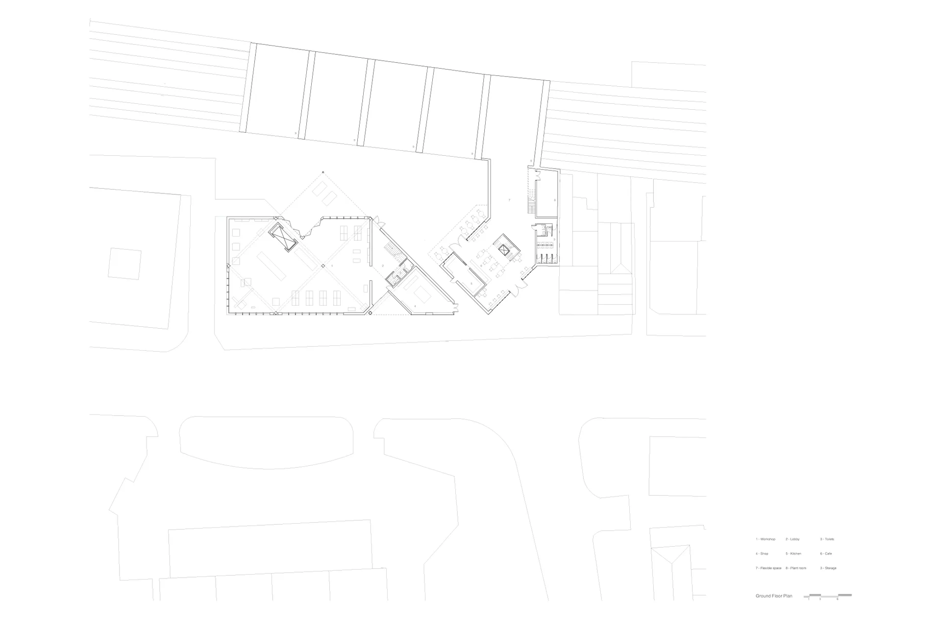 The buildings aim to provide co-existence between the creatives and the public, that can attend classes in the workshop to learn new skills and interact with the community. The buildings support the community in Bethnal Green, specifically new business owners or makers. It offers them the space to make, store, package, sell, broaden their connections and expand.