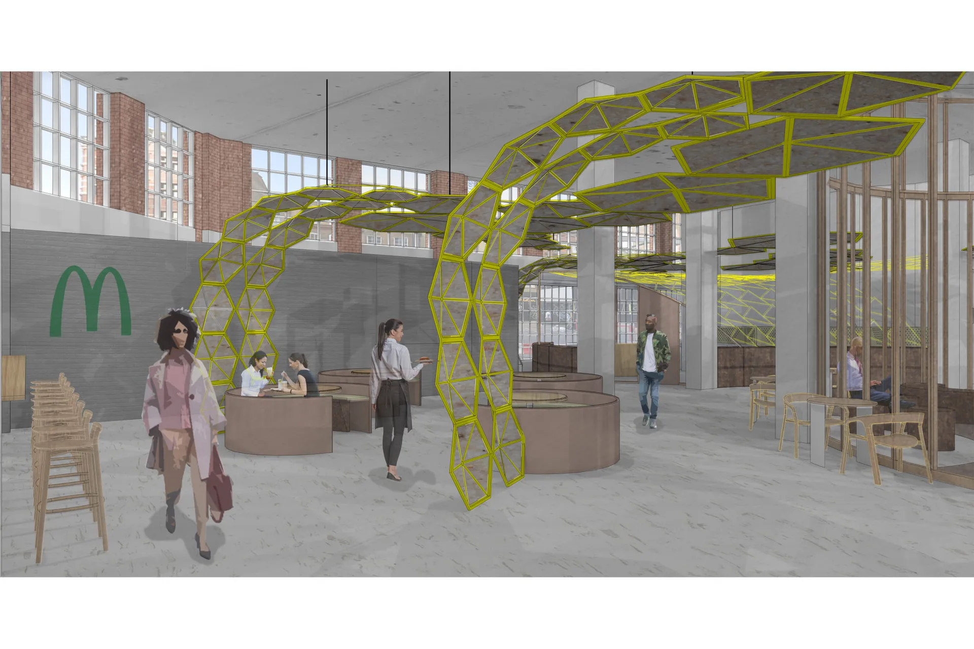 Located in Shoreditch (London), inside the former Lipton Factory’s building, now addressed as the Tea building, the aim of the project is to create an all-around sustainable Flagship Store for the brand McDonald’s.