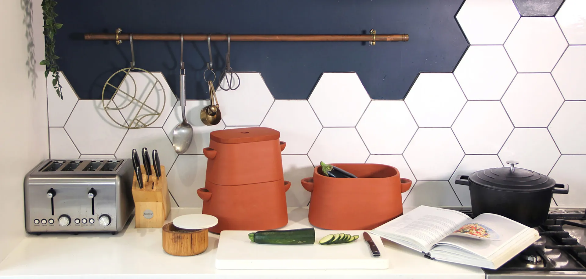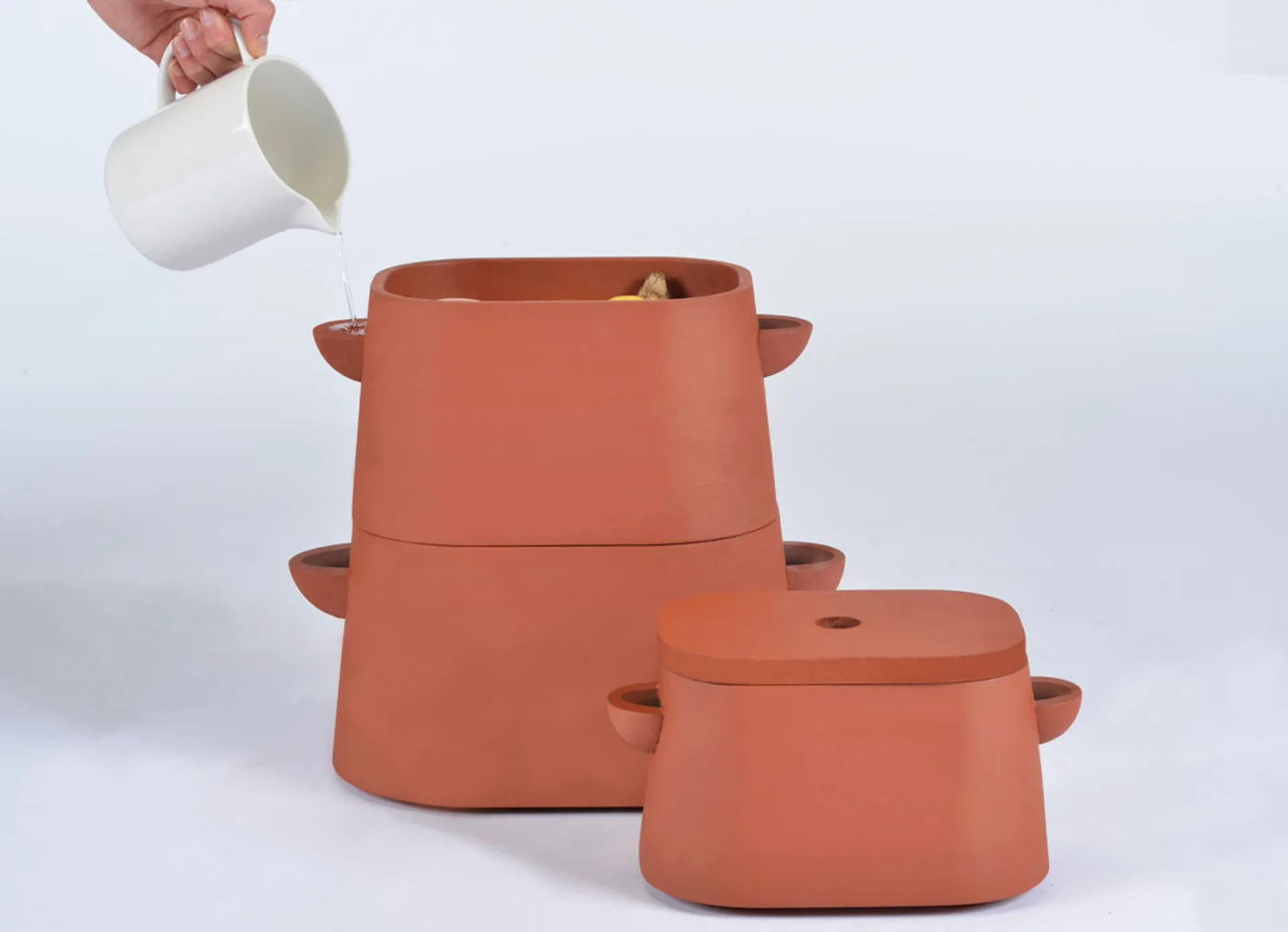 Terracooler is a modern take on the ‘zeer pot’ an ancient method of cooling that dates back to 3000BC. Using the natural properties of terracotta, all you have to do to keep your food cool is water it.