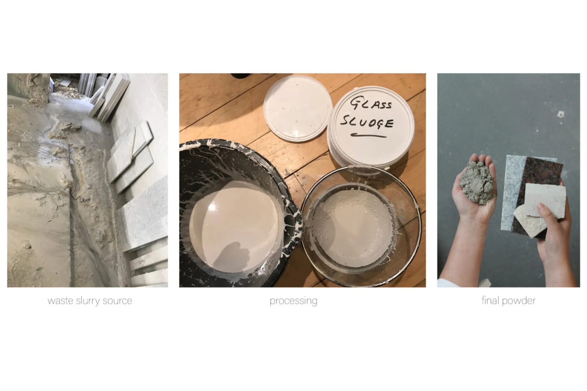 SAND is focusses on ceramic glazes. Instead of using mined, raw materials I have locally sourced industrial waste. The two main forms of waste used are glass and stone slurries, both of which would have otherwise been sent to landfill.
