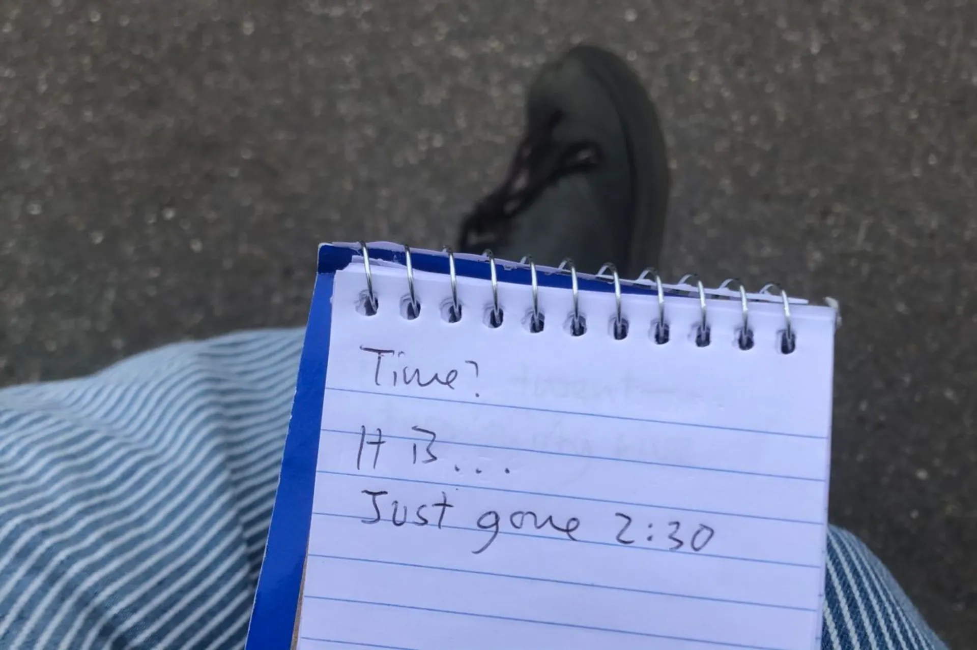 My Final Piece is a durational film that began as a walk on which I asked passersby for the time. I recorded responses and recited each dialogue on camera; every minute, on the minute. My intent was to contrast the chance nature of seeing people on my walk with the readings, formatted to clock time.