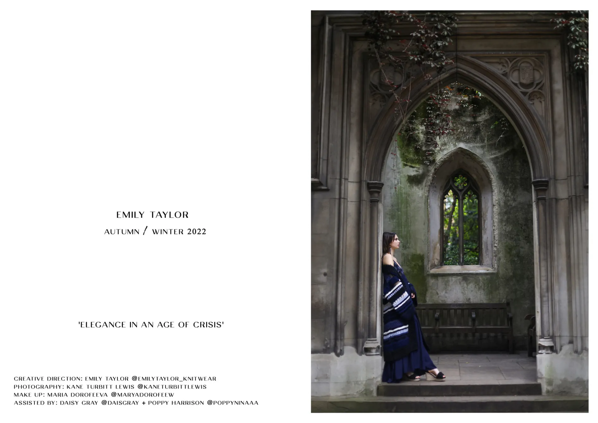My graduate collection ‘Elegance in an Age of Crisis; draws parallels between the impact of the 2020 global ‘Coronavirus’ pandemic on the Fashion industry, to the impact on Fashion of the Great Depression of the 1930’s – which is credited by the above authors, as prompting the birth of modern fashion. Reimagining 1930’s elegance and glamour into the 2020’s has been key to the development of my collection, which also explores shapes found within the 1930’s Art Deco movement translated into Knitwear designs.