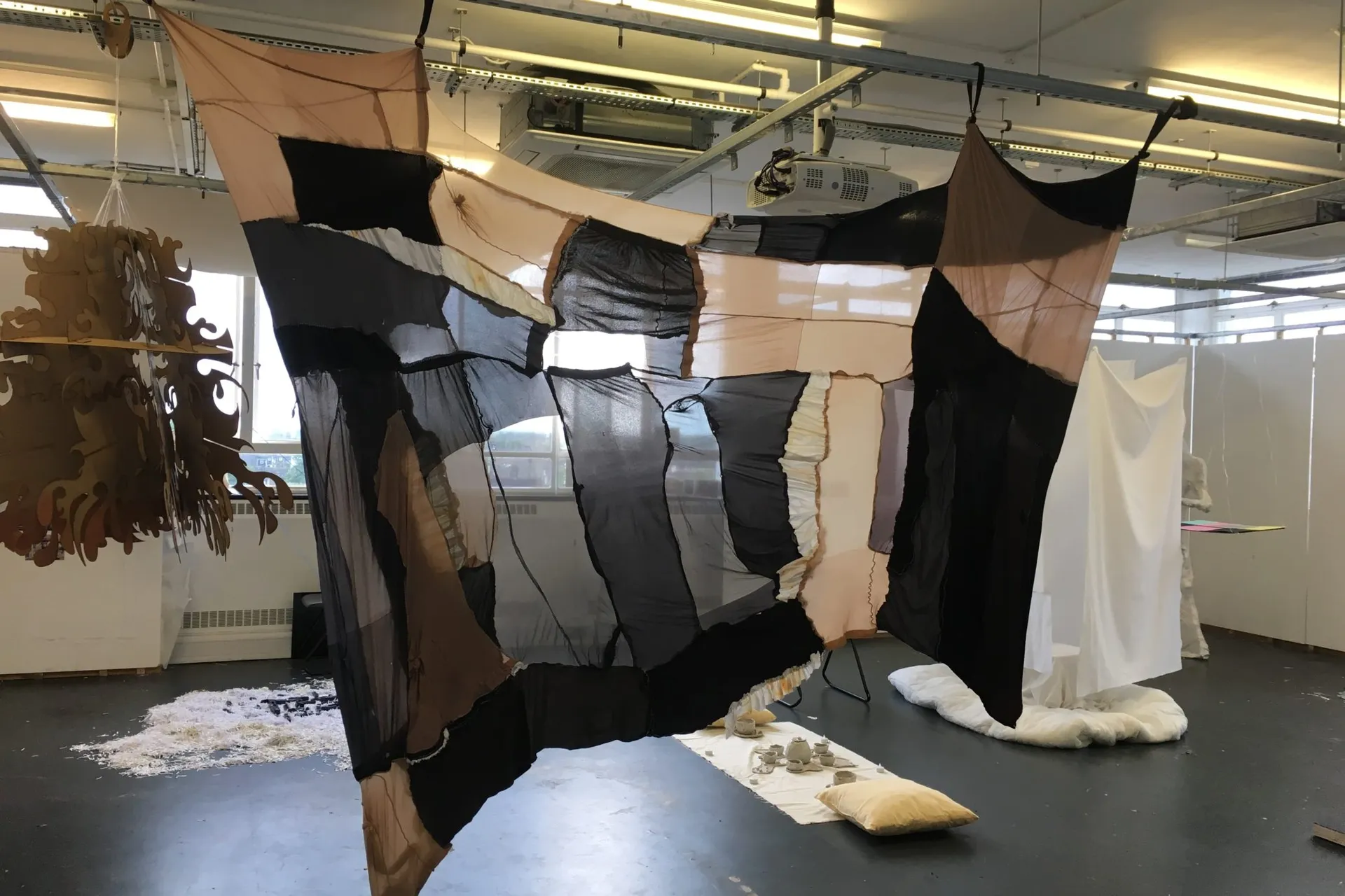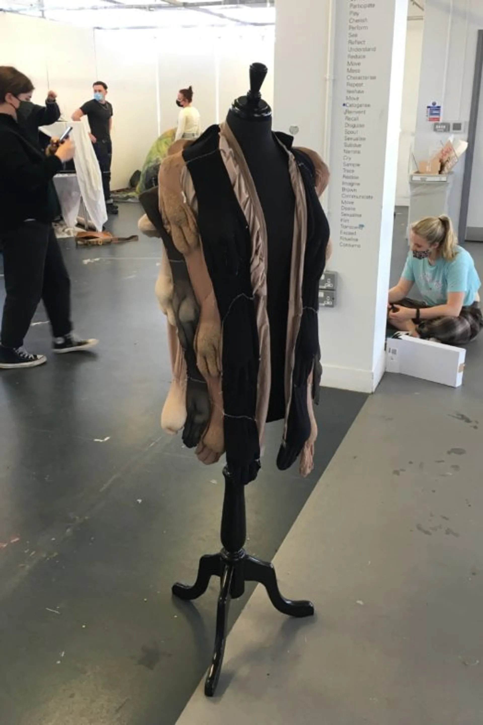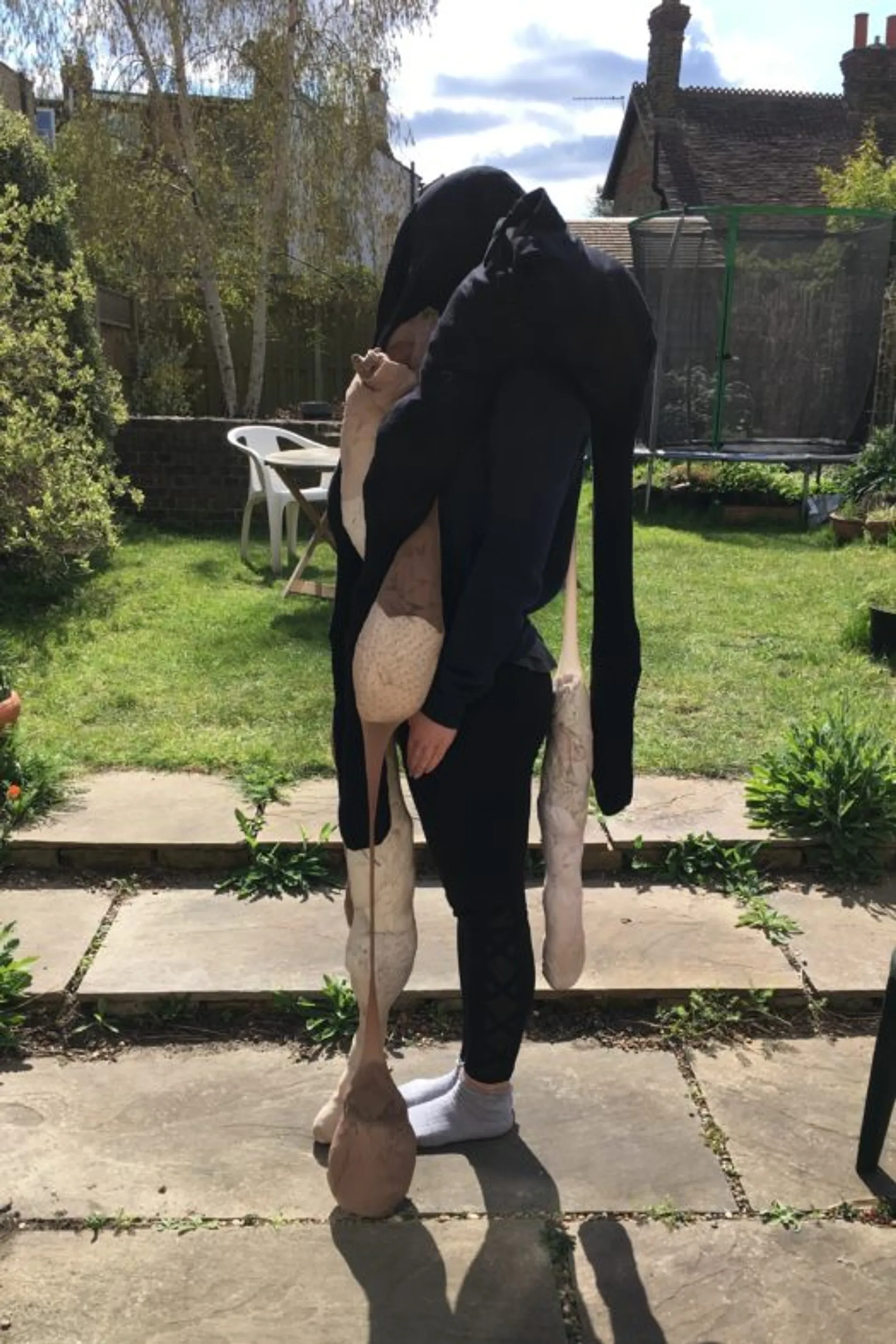 My final work ‘One Skin Two Bodies’ is a performance, in a sculptural ‘shared skin’ garment worn by two dancers, exploring how movement can represent the physical and psychological attributes of skin: the sagging, tautness, and wrinkling as well as it’s structure as a space to inhabit.