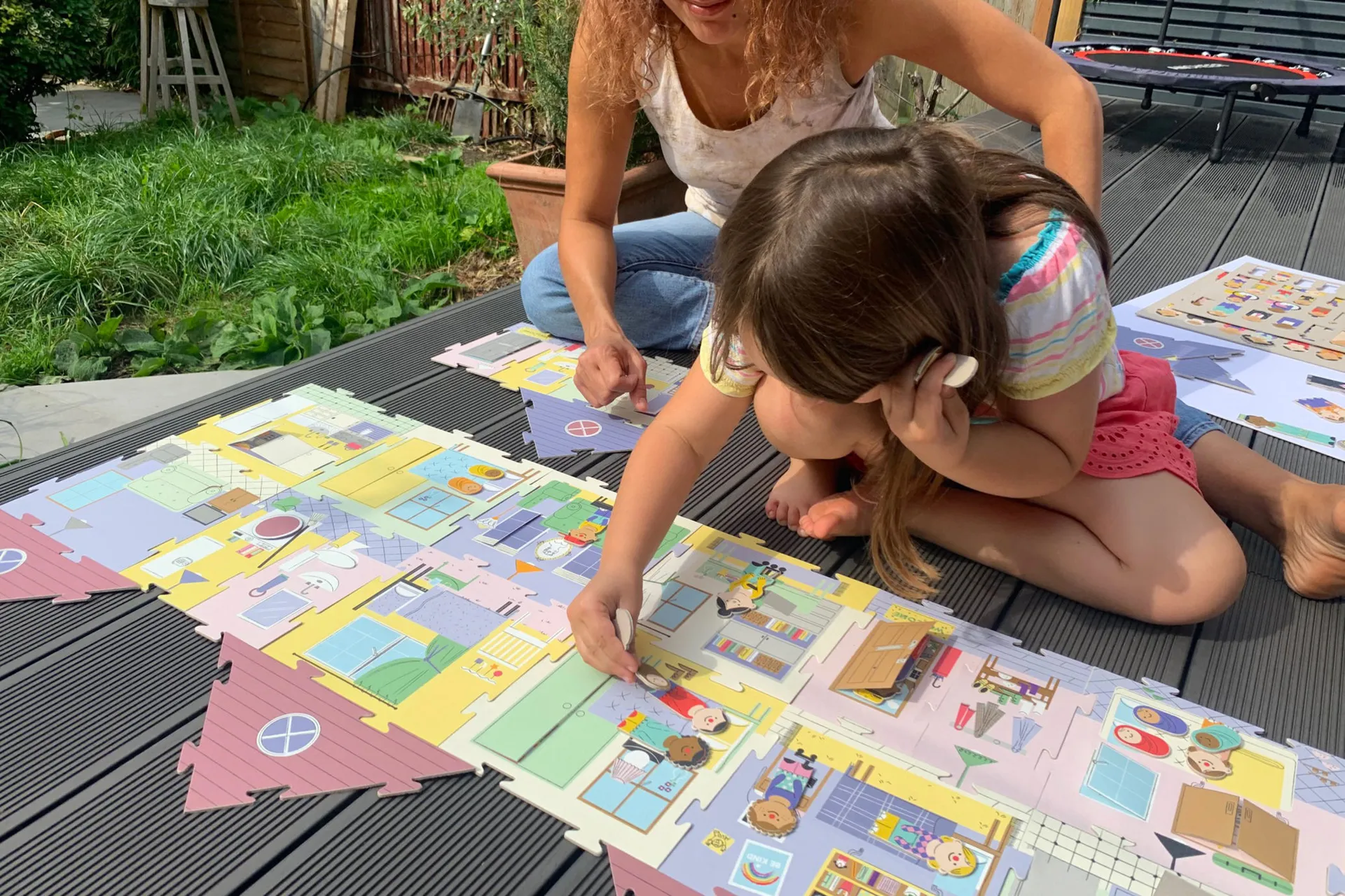 Children can interact with the house environment by lifting the flaps and revealing curious details. The myriad combinations they can make with the characters and the rooms give them plenty of material for improvised storytelling, building and exploring.