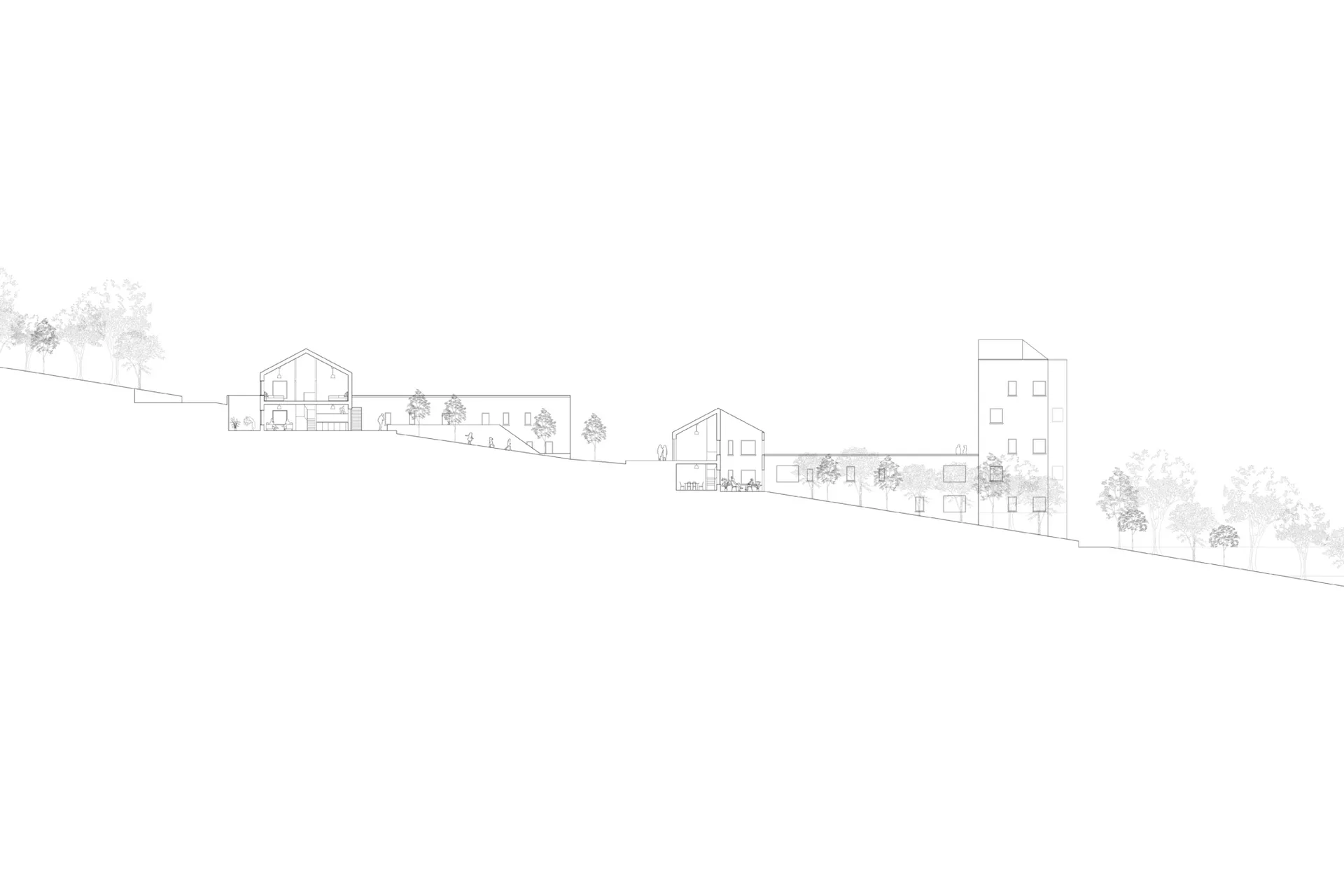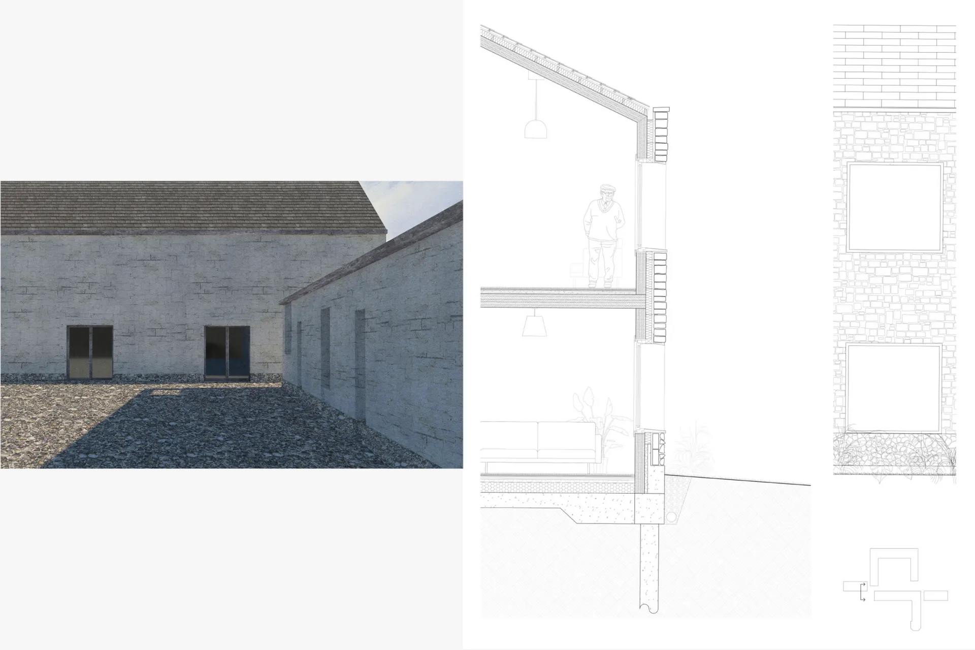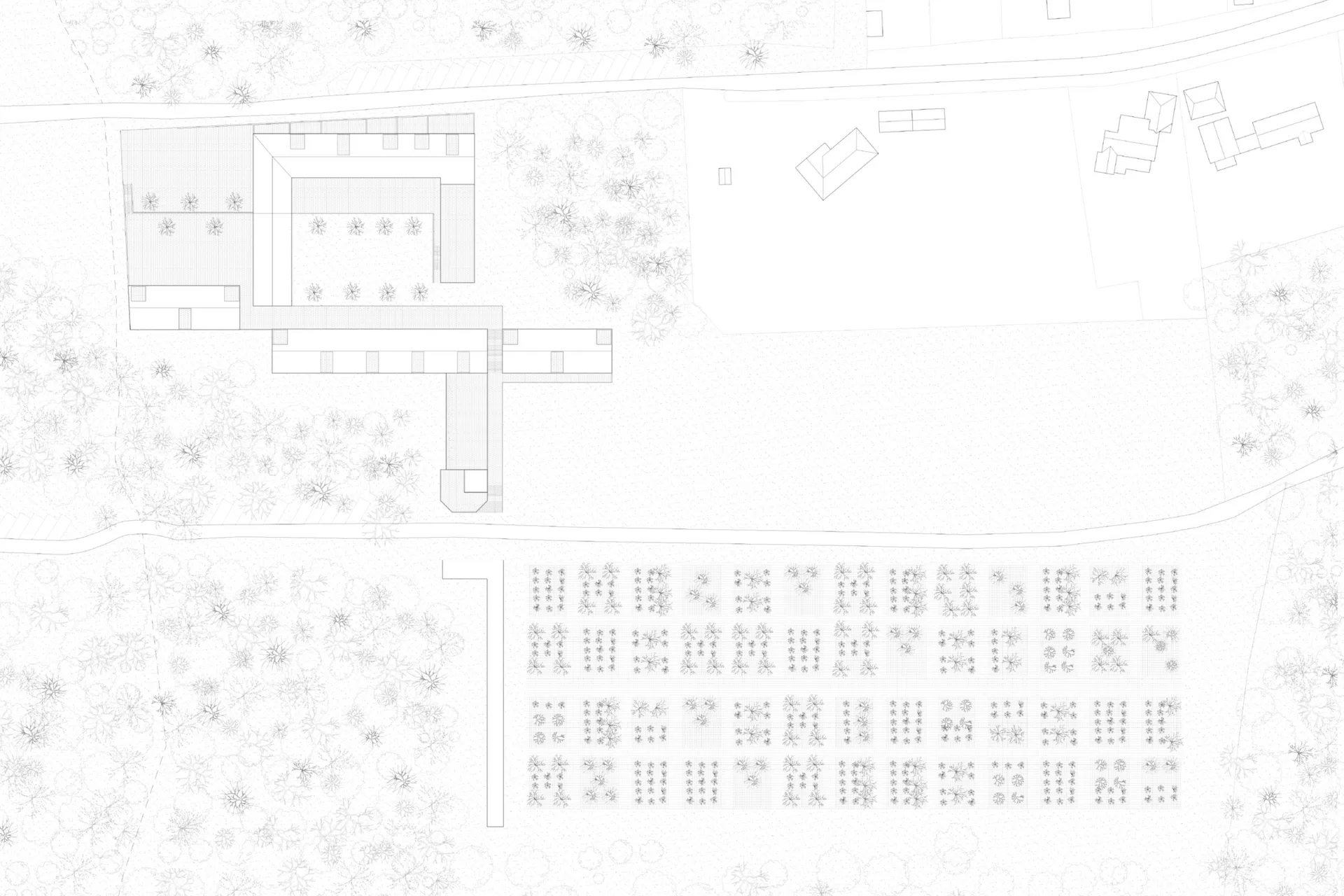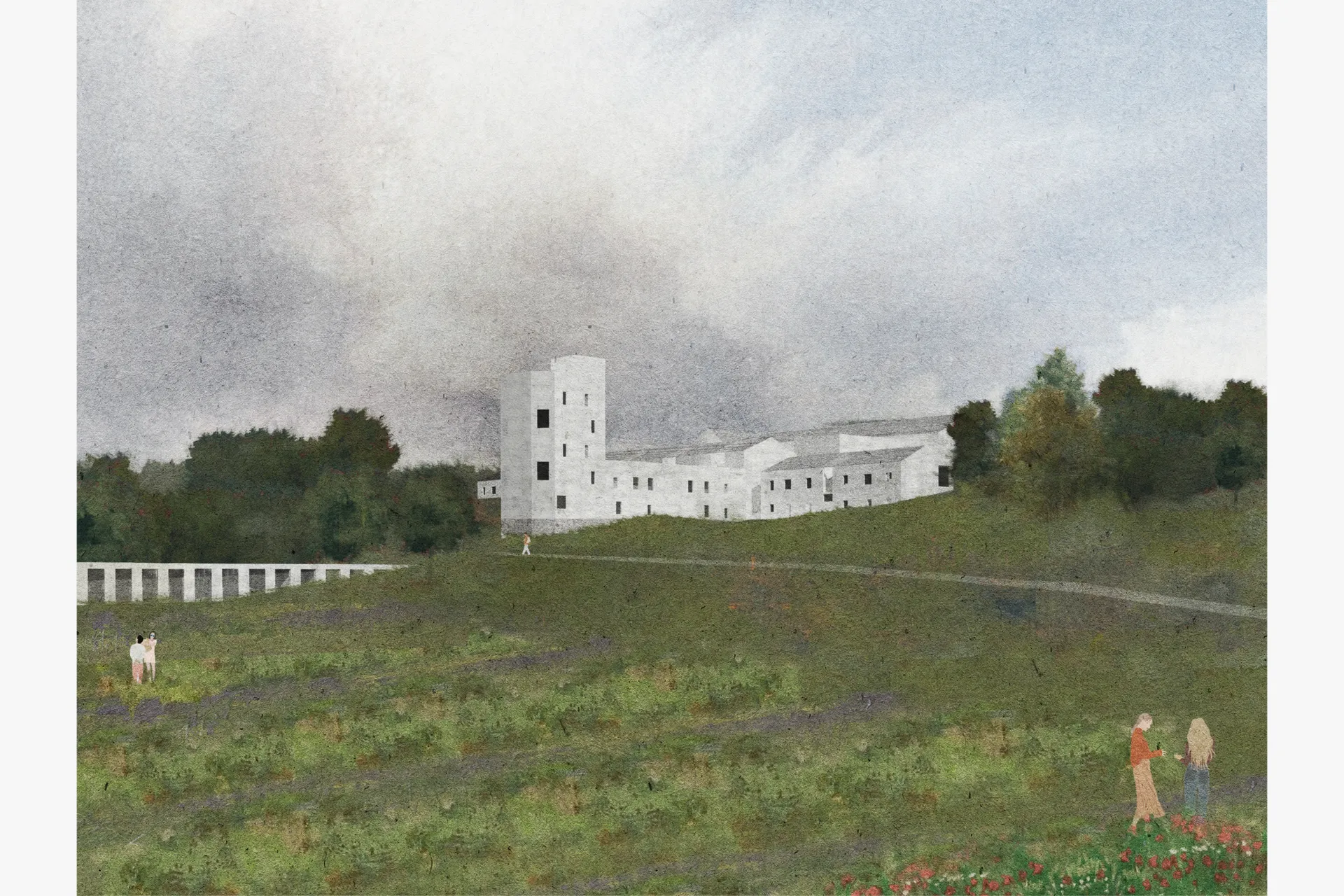 The proposal explores this western, predominately residential edge. Exploring a way in which it may develop and provide new homes. Investigating how typologies may differ to the detached homes of the 1900’s plan. Taking influence from the Charterhouse’s Carthusian typology, the scheme is proposed in a more dense manner. Minimising disruption to the landscape and allowing for more green space across the area. The proposal comprises a community hall, farm shop and large allotments in the valley floor, this provision aims to foster a community spirit as well as integrate the new residents within the existing community through collaborative action.