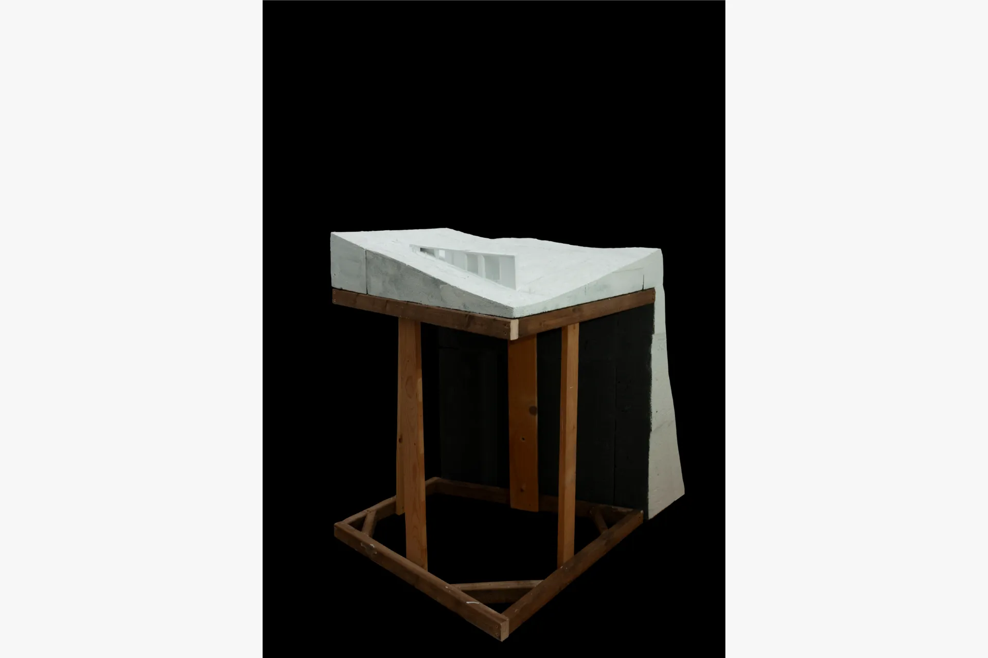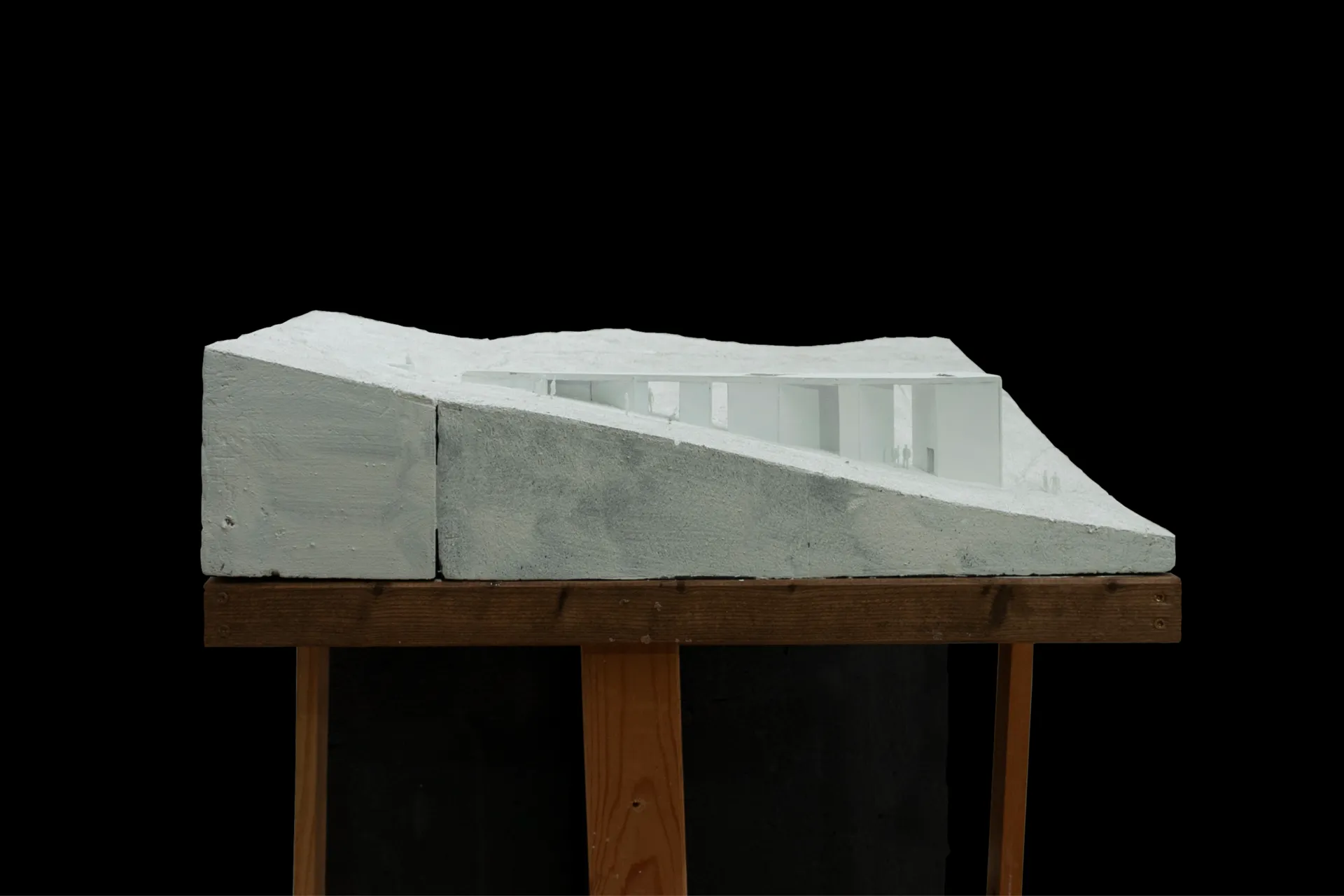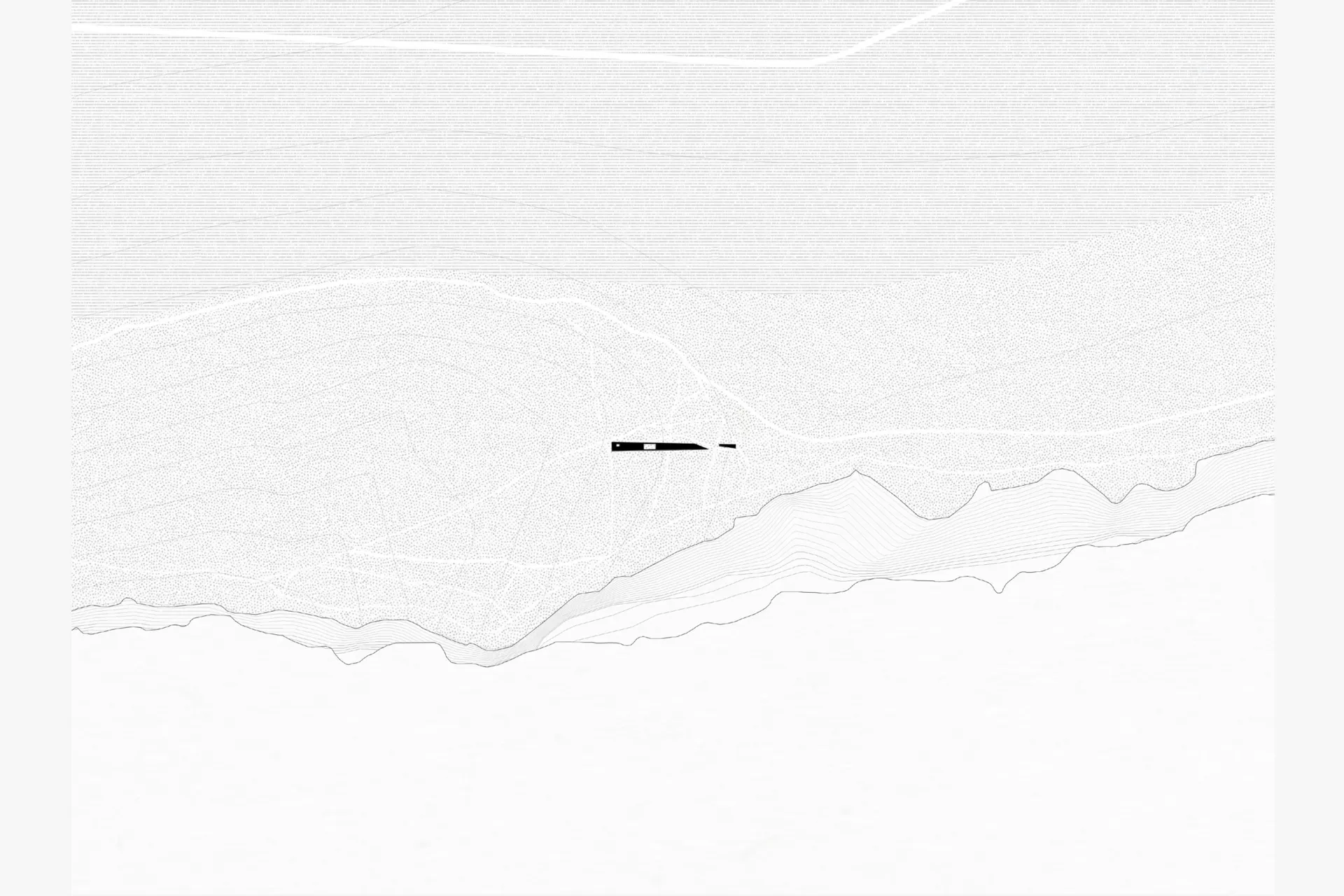 The proposed volume is set into the landscape, revealing itself as the land falls away. The volumes formality contrasts against the cliff edge, with numerous footpaths marked in the chalky soil. Footpaths were explored in the investigations into my own identity, the ritual nature of walking and the informal marks left by them. The proposal aims to respond and highlight these paths.