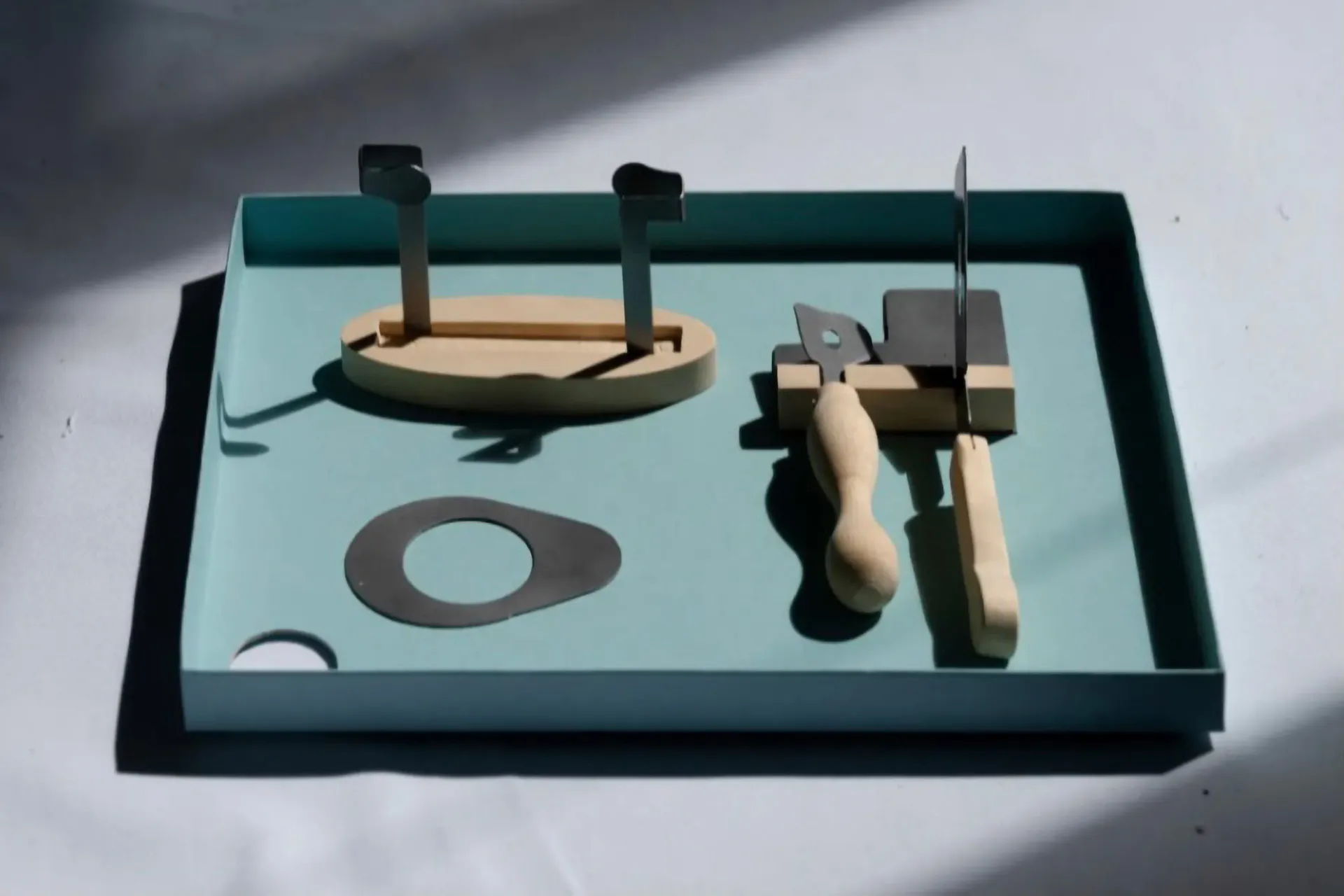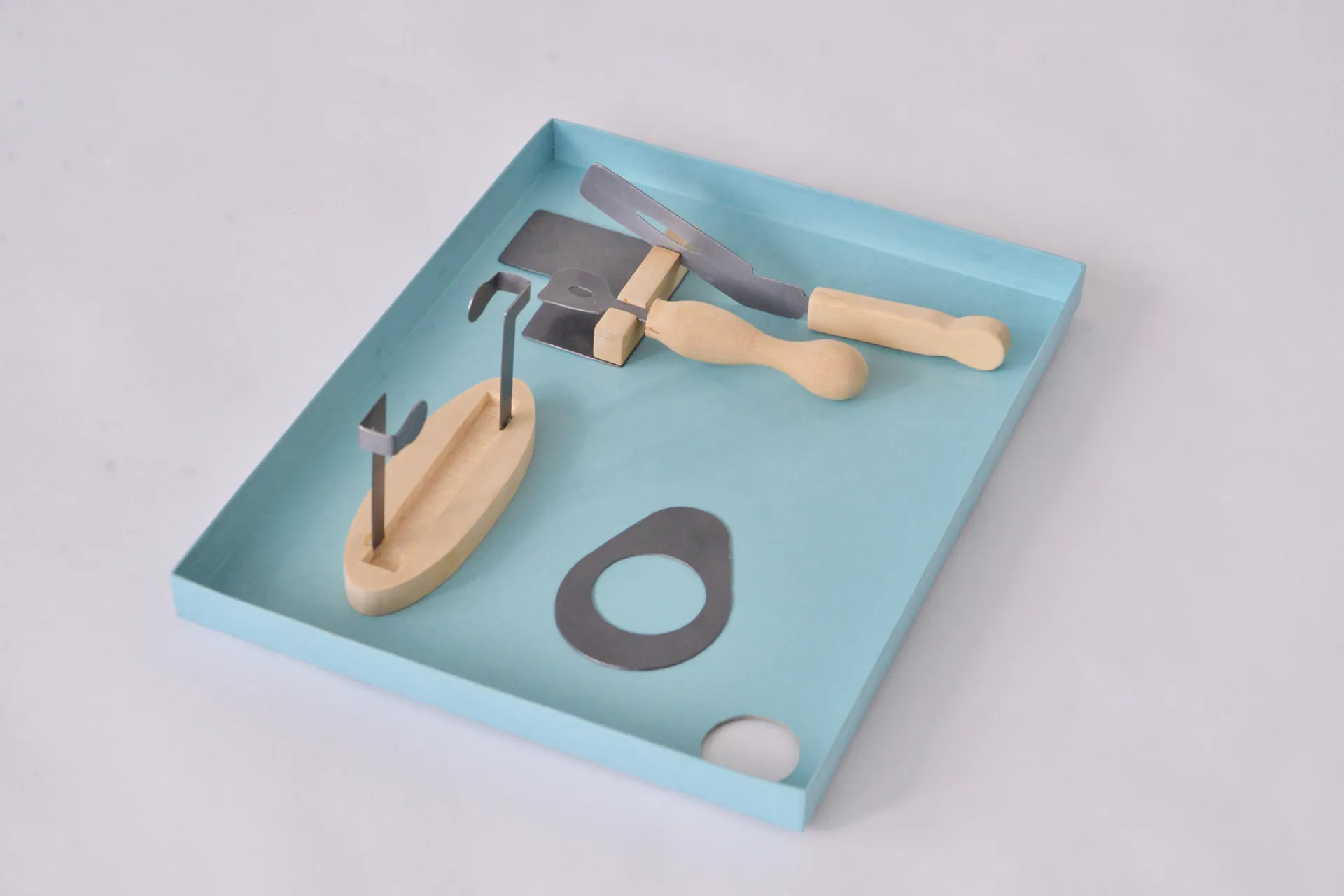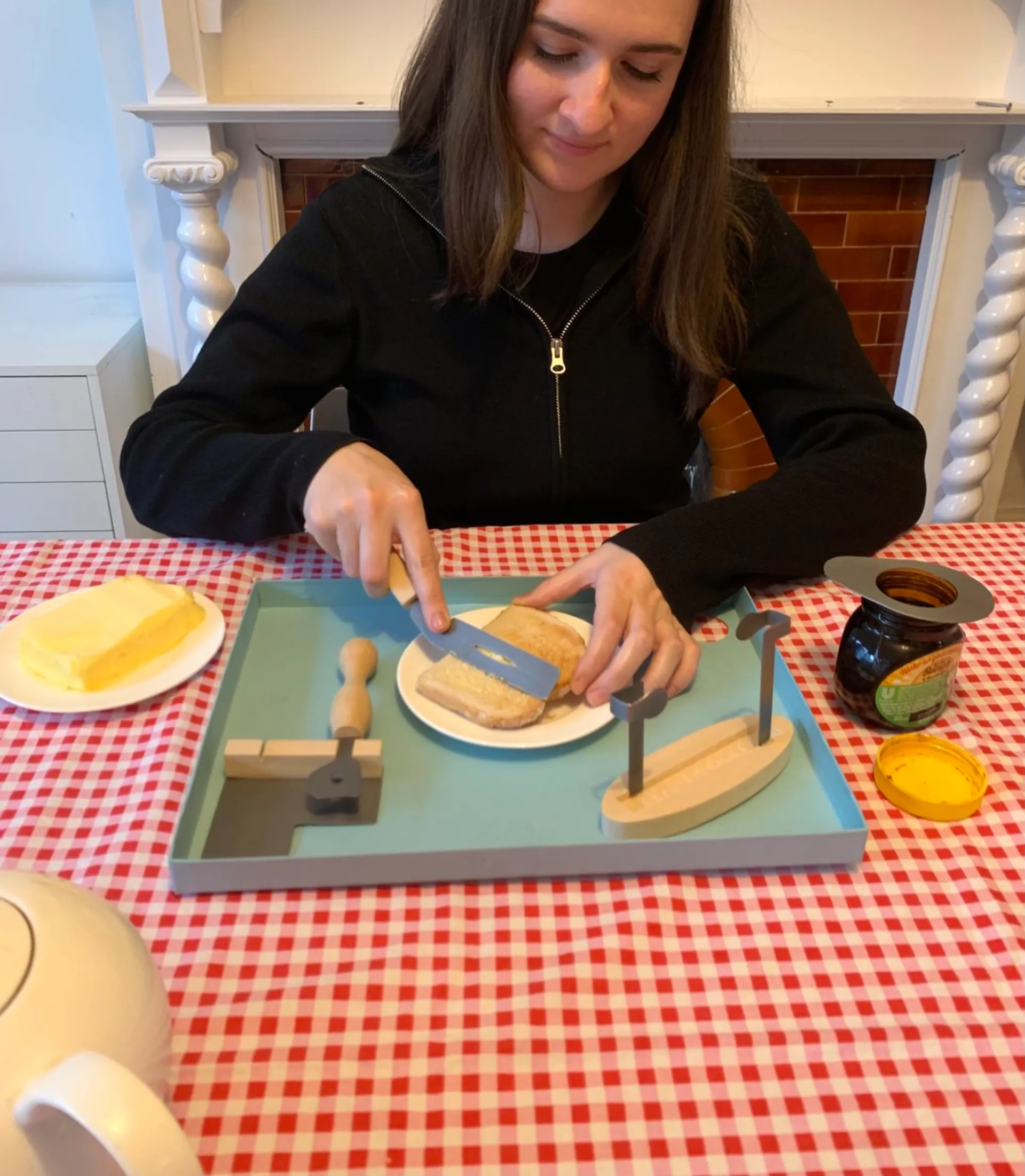 Starting the project looking at the value of multi-functionality, my final piece, ‘The Toast Ceremony’ explores tools that carry out a very specific task. Designed to make the perfect piece of toast, they include a butter knife, Marmite spoon, single toast rack, jar guard and a cutlery holder all presented on a tray with a hole for crumbs.