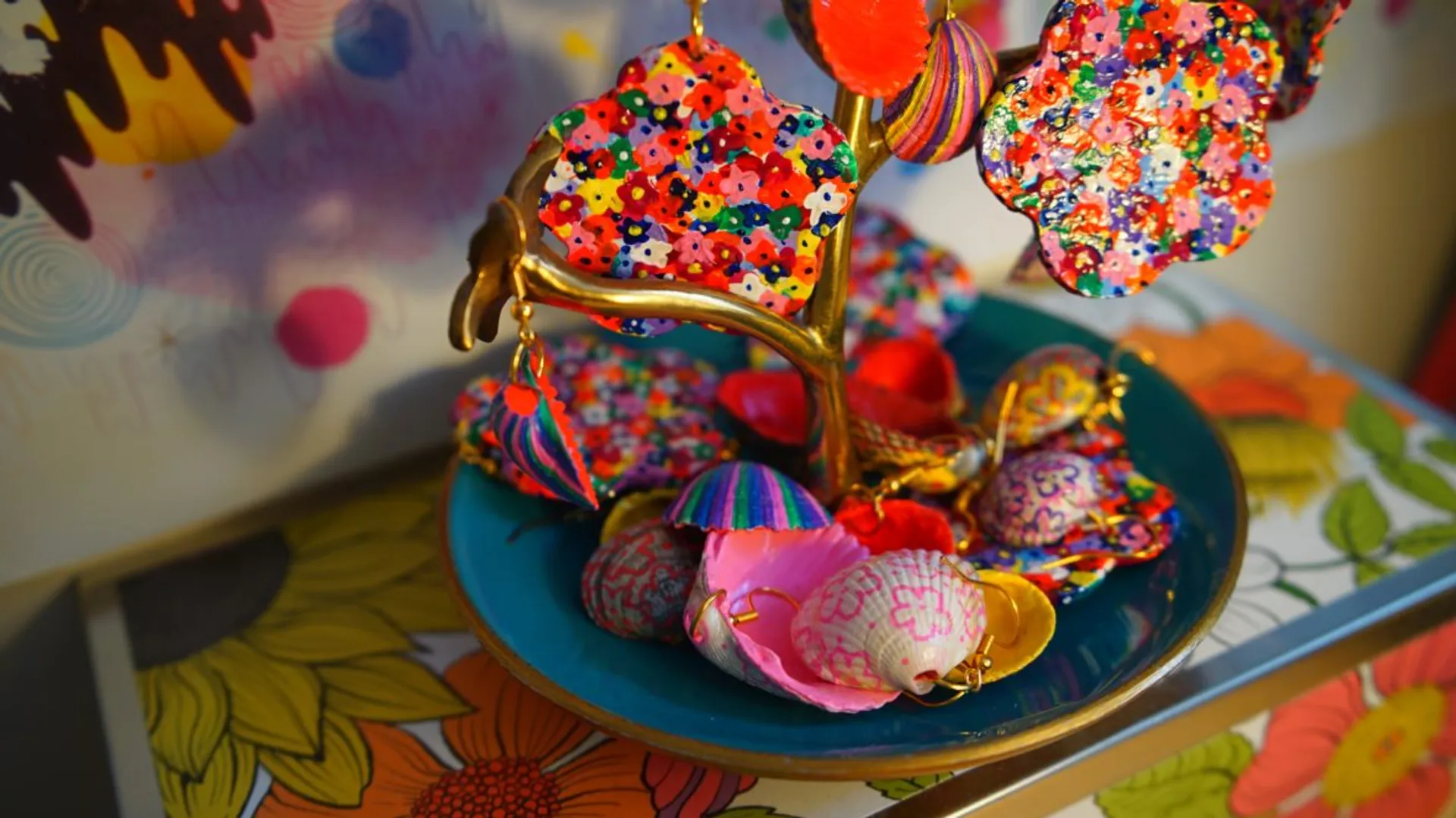 Harriet creates bright hand made polymer clay and shell earrings which are available in store at Not My Beautiful Home Kingston and online through her Etsy shop.