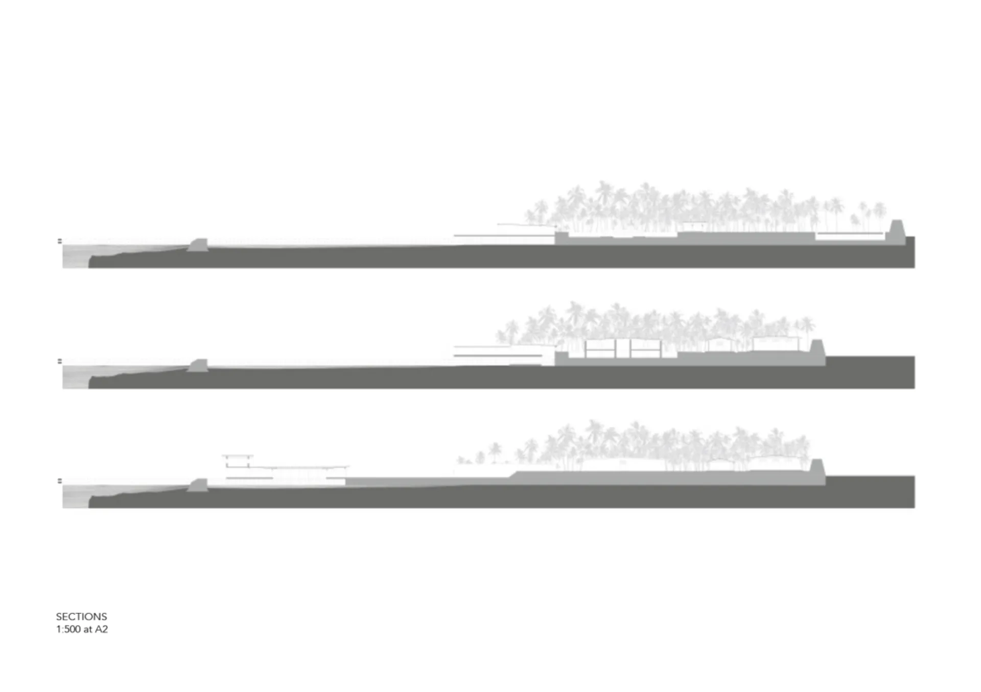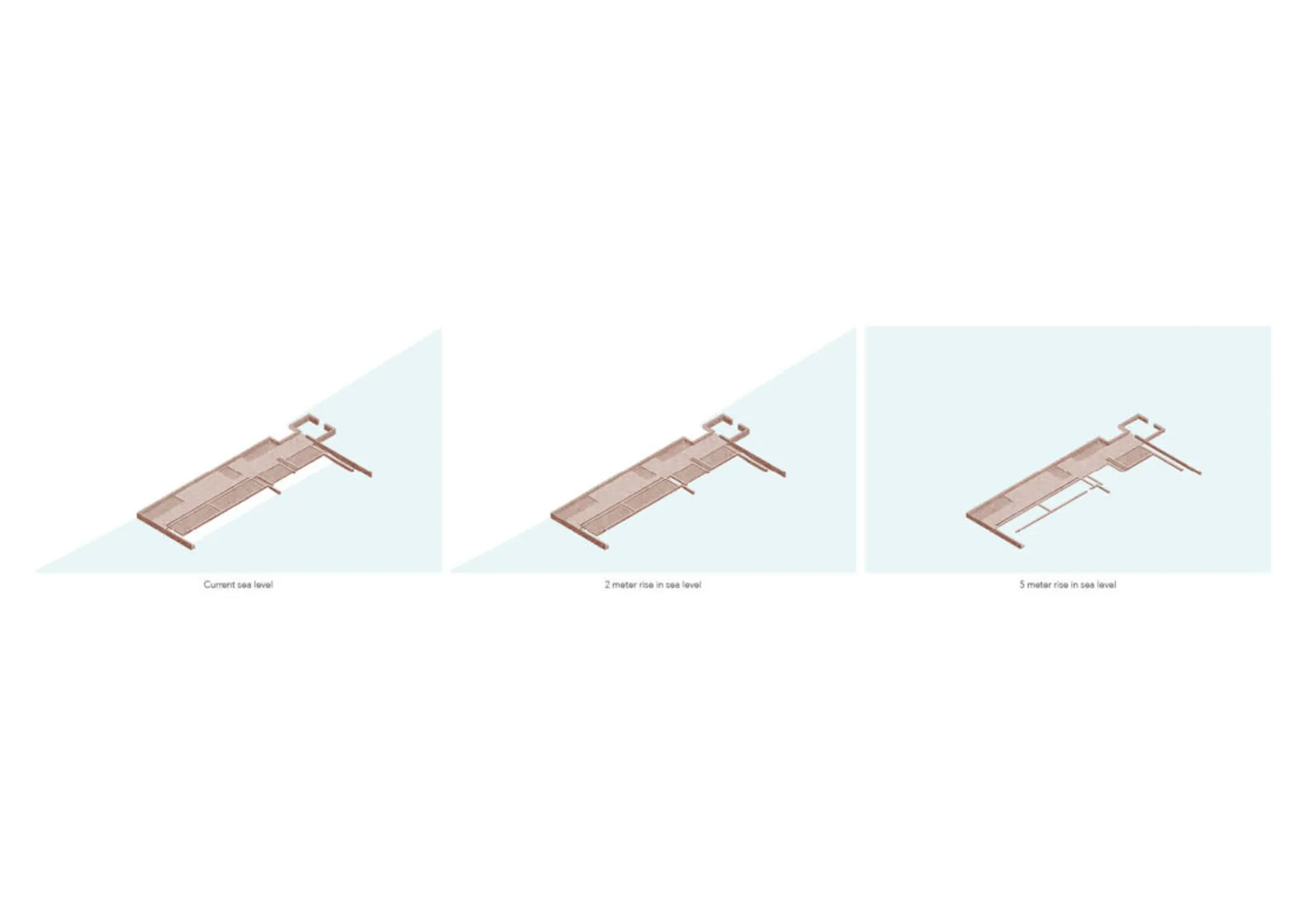 Themes of permanence, temporality, and the vernacular use of materials as a response to the local climate informed through the reading of the book ‘The God of Small Things’ by Arundati Roy is used to design a tourist resort in the Maldives. The urgency of the climate crisis and the country’s vulnerability in the face of sea level rise is highlighted through the scheme by introducing a new form of tourism that allows for a participatory experience for the tourists. The scheme highlights the issues at hand through the design adapted to the rising sea levels instead of hiding the reality of the country from visitors that most tourist resorts do in order to portray an image of it being “paradise on earth”, a statement which is far from the truth. The site is designed to invite the water to inhabit the sacrificial spaces, serving as an educational tool to highlight the susceptibility of the country being submerged under water in the near future. The polemic nature of the scheme poses an important question about the current approach of the country to the issues and creates a wider conversation about the survival of an island nation in the fight against climate change.