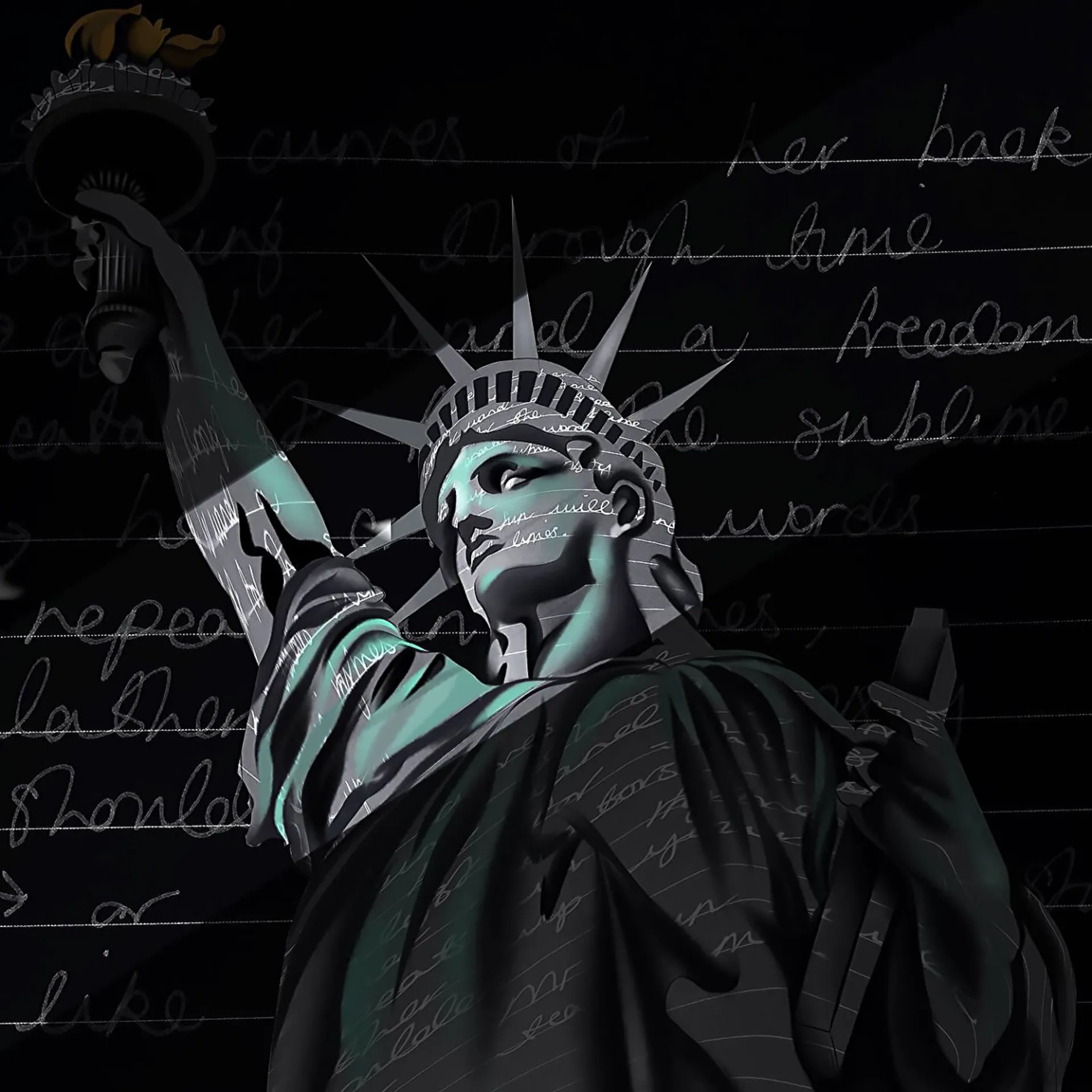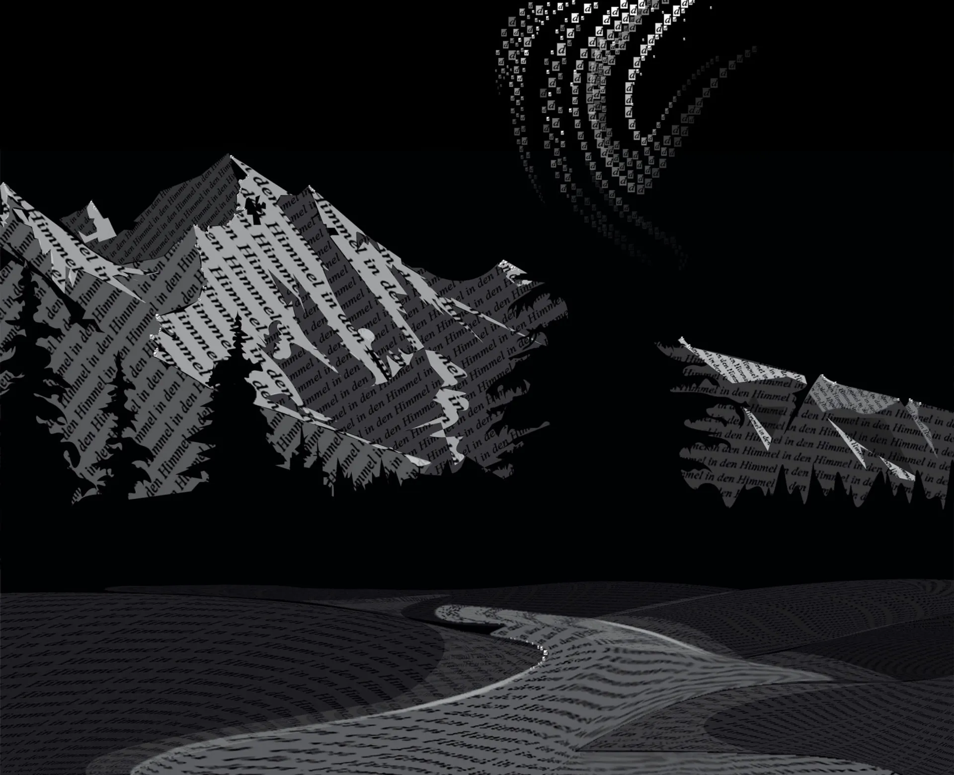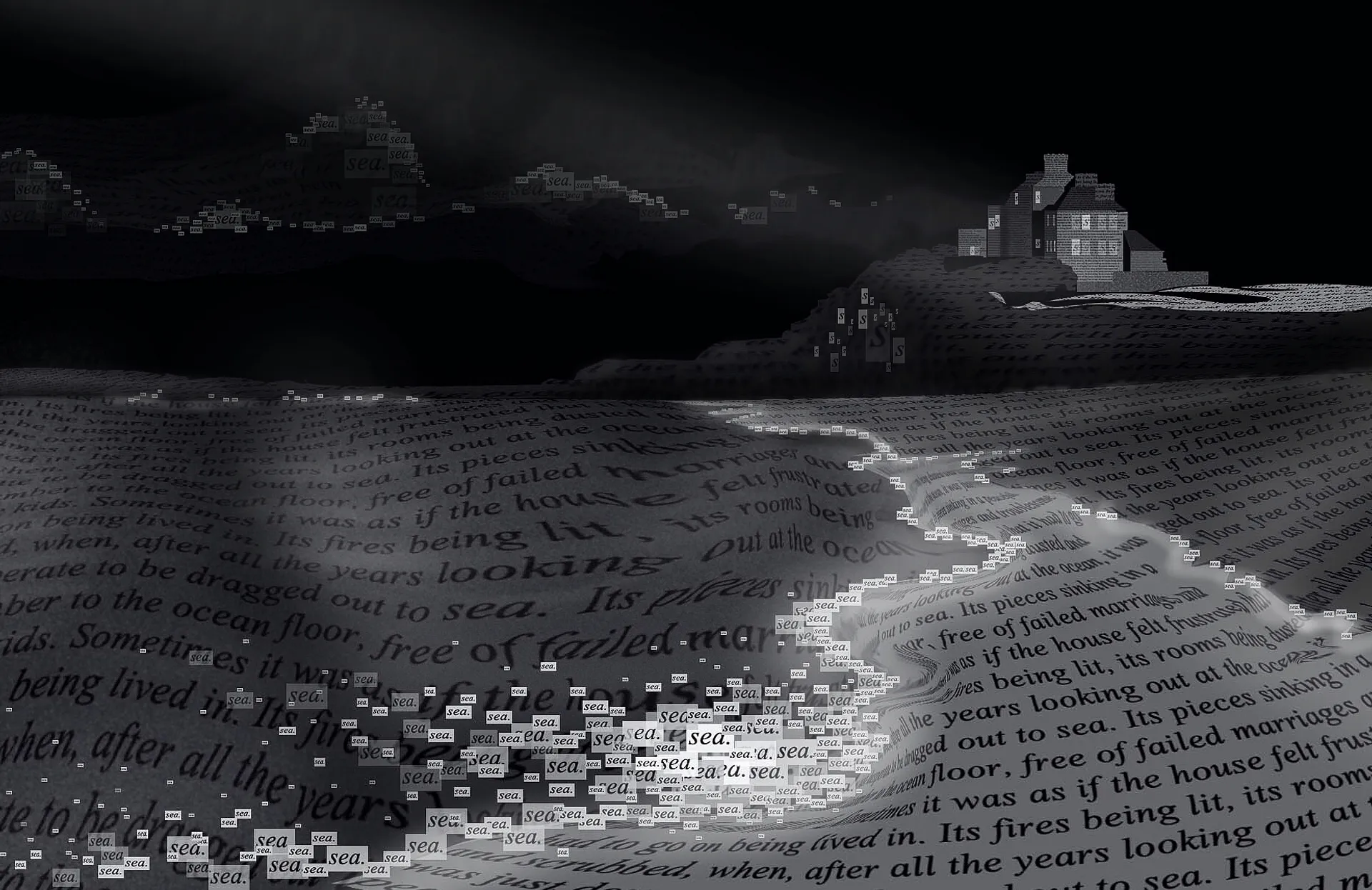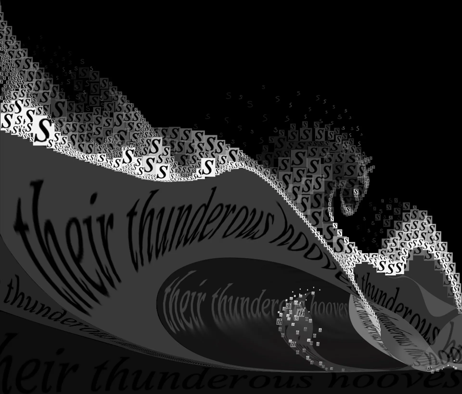 I mostly enjoy working with faces and bodies and combining these visuals with reflective words. A technique I tried early on was screenshotting pages of written text, playing with the perspective of the words, and cutting them into pieces to form a face. Later, I began digitally drawing visuals and placing the text in layers directly underneath to give the overall piece a more 3D effect. However, some of the best pieces I have produced take the form of a landscape. This is also to do with the perspective of words; however, I spent a lot of time cutting out individual letters, duplicating and playing with opacity. Additionally, I have also produced bits of photo poetry that use photography to portray a poem or general aesthetic.