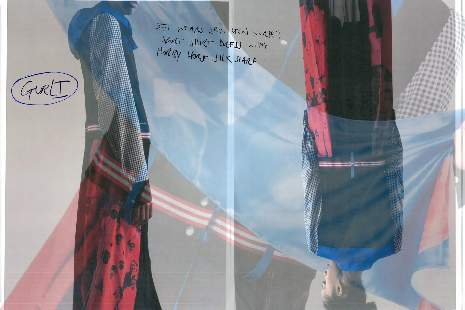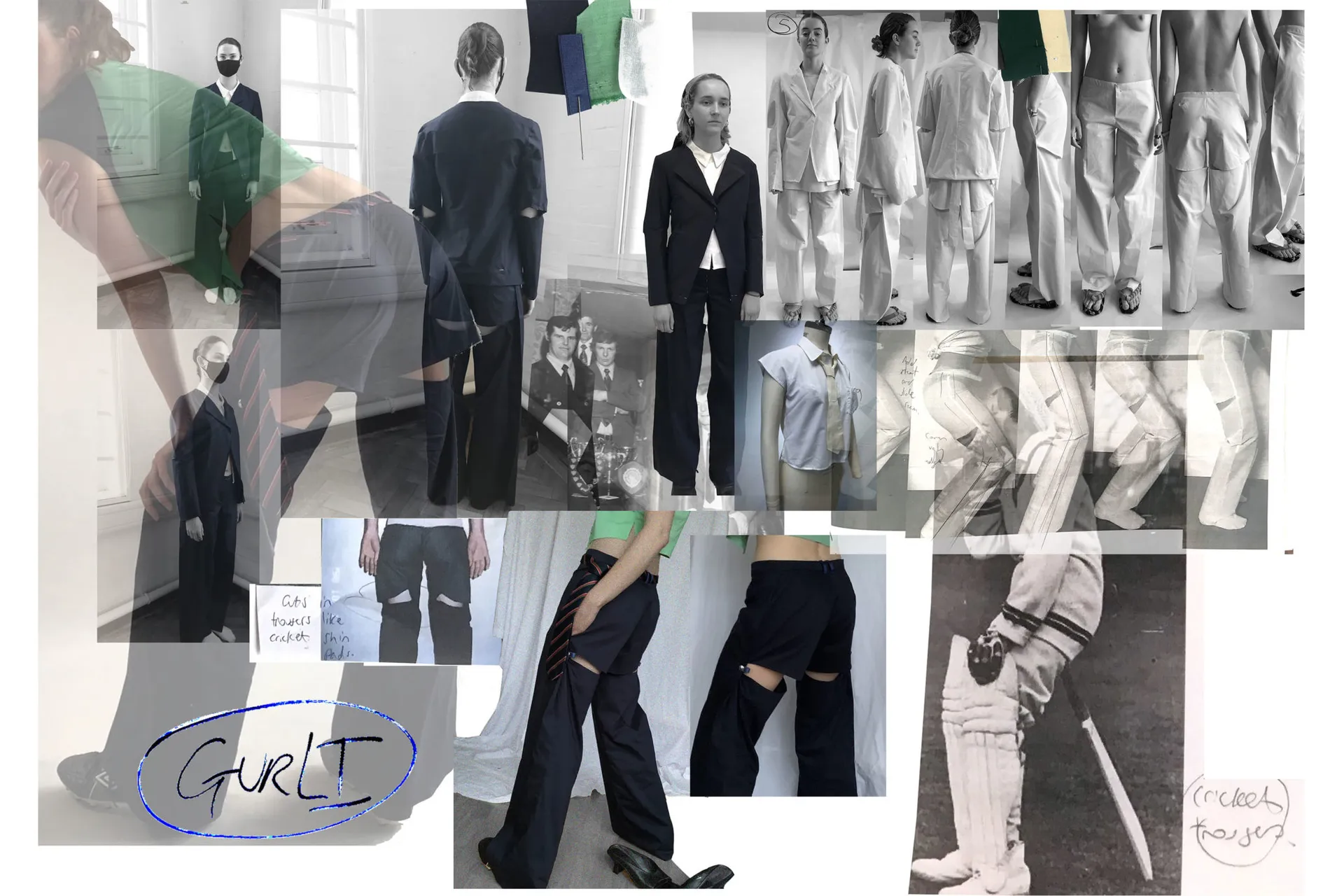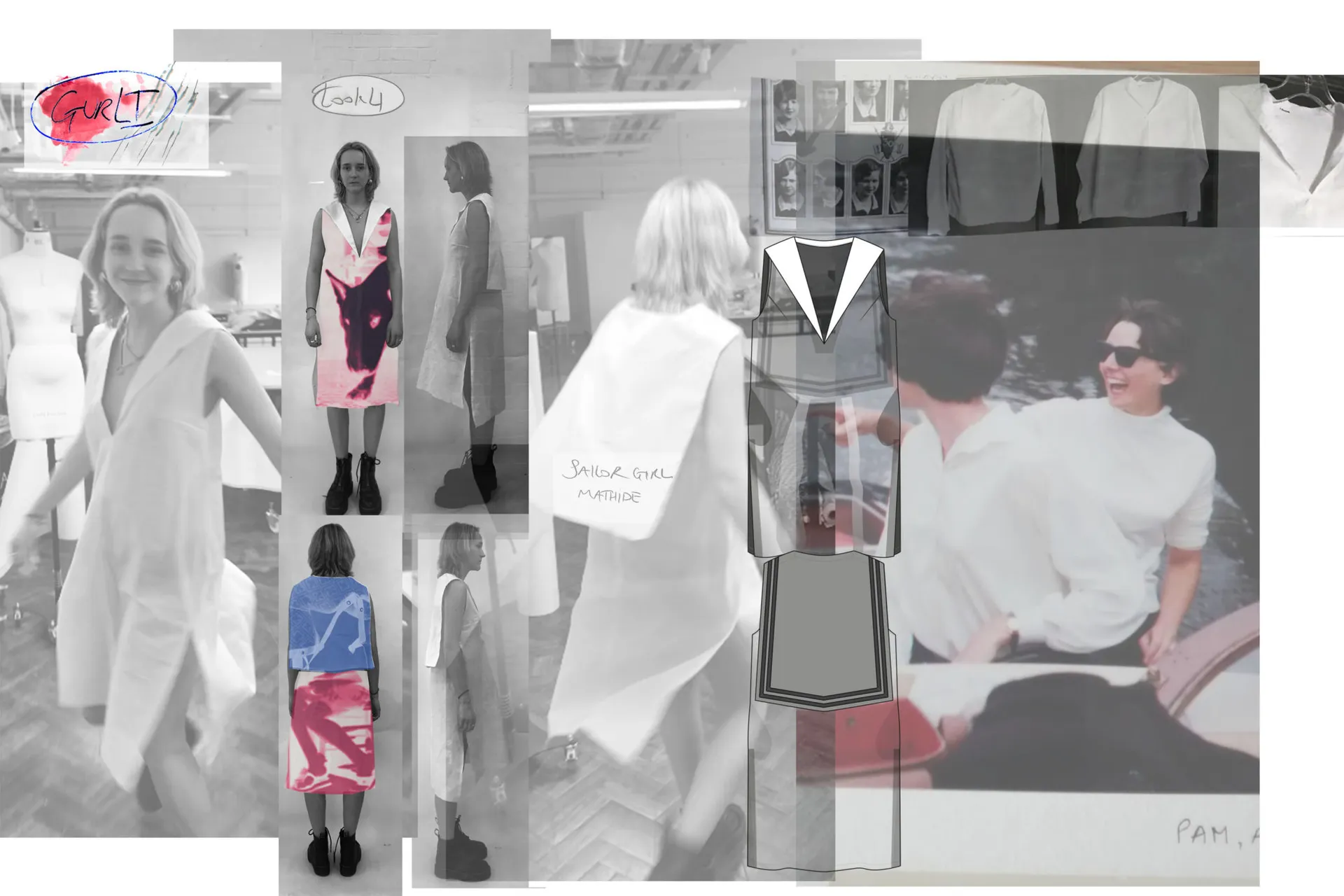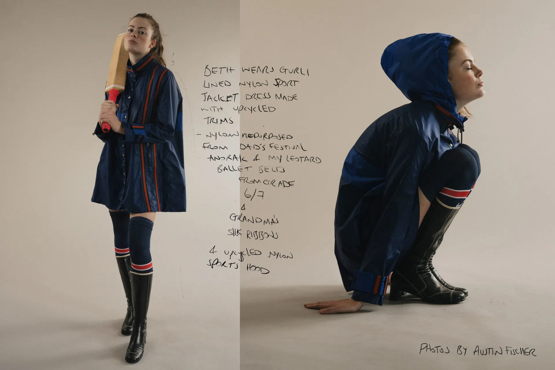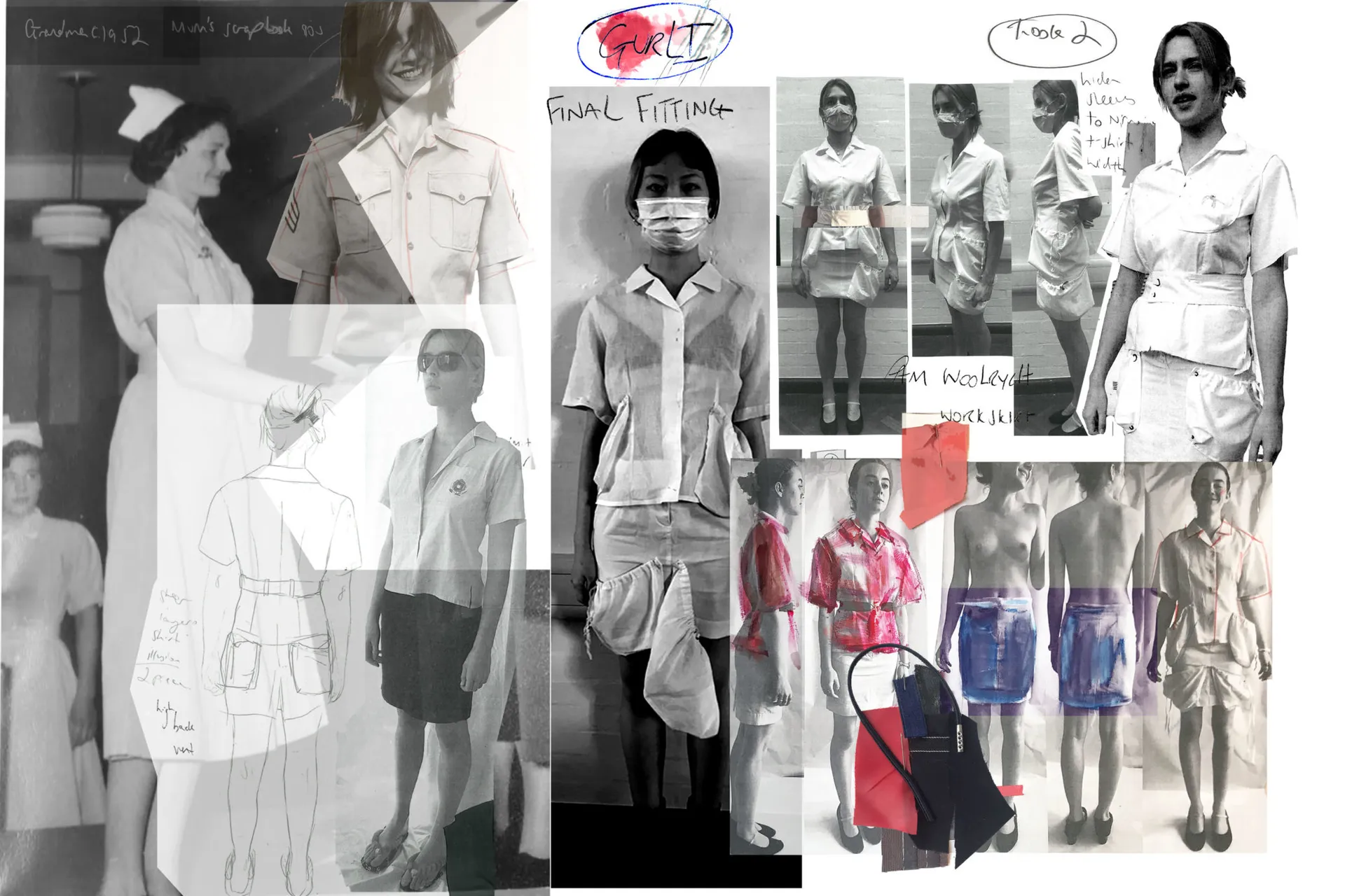 Gurli is a modern woman’s uniform. The collection is sporty cut with women’s uniforms to create a fun modern silhouette. Named after my great-grandma, my final project pays homage to 3 generations of nurses in my family. Visual and mood inspiration came from my mum’s teenage scrapbook c. 1990s and my grandpa’s extensive photo. albums (1919-2013). Anne Hollander describes ‘a standard masculine civil costume’ The suit is the formal standard – male as it originated – she deduces that women’s fashion hasn’t reached true modernity. Uniforms were designed as a means to demarcate trades; this practice is thought to be as old as the trades themselves. But in a post-modern era they mean something different. – classic cuts, timeless and clean reflect modern democratic fashion. The advent of sportswear in the 1920s (when my great grandma was nursing post influenza epidemic) is reflected in elevated sportswear references, layering, cut outs and light fabric weights. This collection is for the club, work desk, and sportsfield.