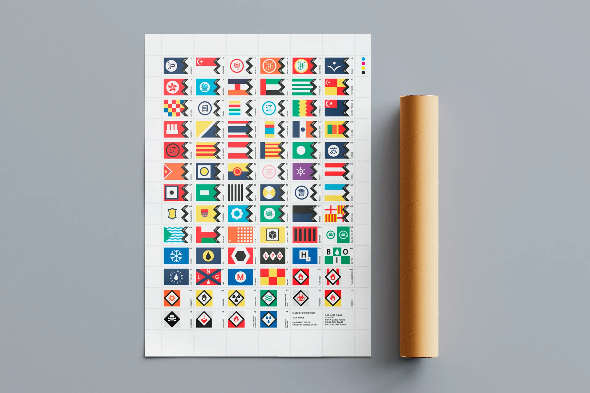 Hi! I’m Jack! a typographically driven designer, always striving to create unique systems through editorial & typographic orientated work. My design is systematic; I find functional graphic design inspiring. Finding beauty in the mundane is what excites me the most. Flags or road signs may seem familiar to us every day, yet the stories behind their design are fascinating. The first project on this page is all about flags. I created a typeface inspired by merchant shipping flags from the 20th century. Using this typeface, I designed a series of flags intended to combat the dodgy shipping practice: Flags Of Convenience. The 2nd project, Publication Dissertation, is all about celebrating the variety of typefaces available online. My thesis looks at the relationship between craftsmanship and modern typography. The publication combines modern typefaces with a hand-bound binding: marrying contemporary type with craftsmanship.