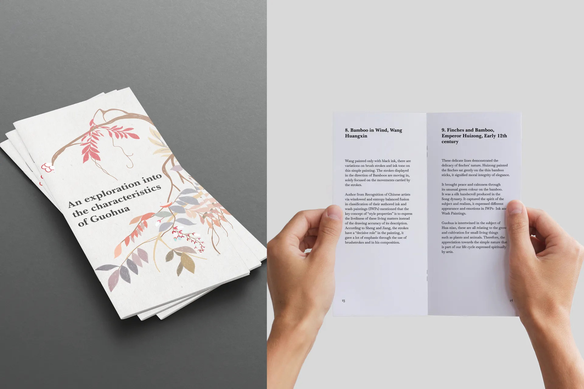 Guohua Exploration, there were a variety of paintings within my analysis. Therefore I chose to do an exhibition and a publication catalog to display my dissertation exploring traditional methods and techniques in Chinese Painting. How it develops into our modern design technique.