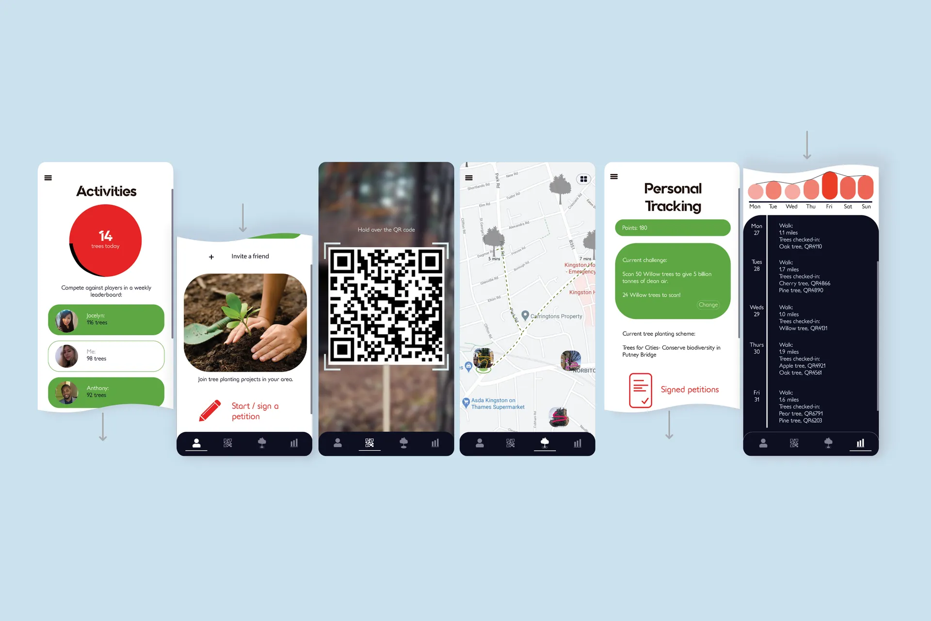 Natural Proximity, UX&UI design. I made an app for Digital tree tagging using AR that reconnects the relationship between humans and nature by appreciating existing biodiversity around the city. Opportunities to participate in petitions and tree planting projects in local areas to conserve wellbeing.