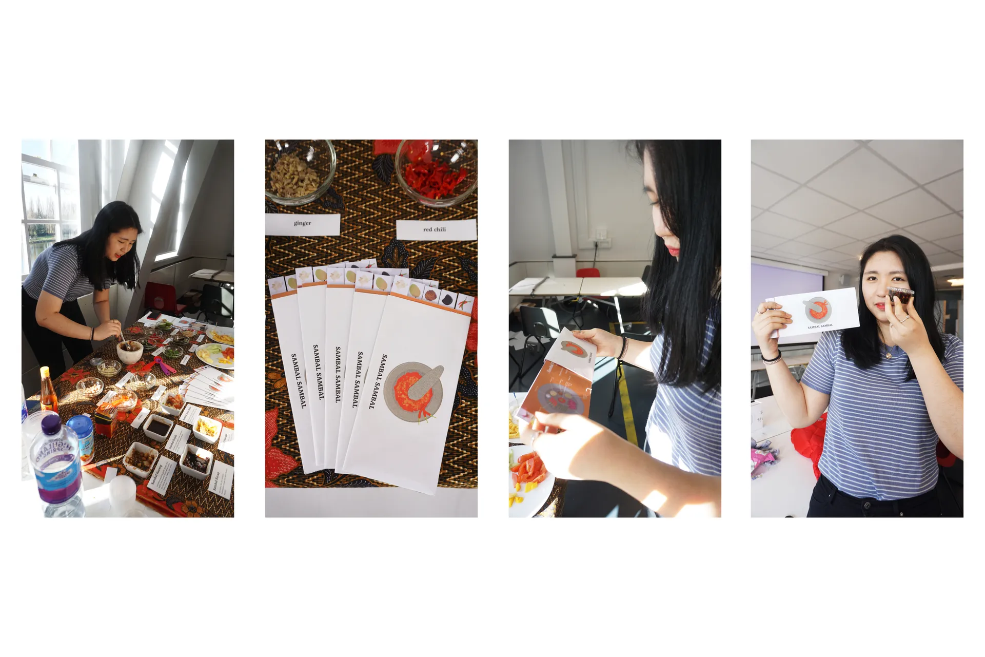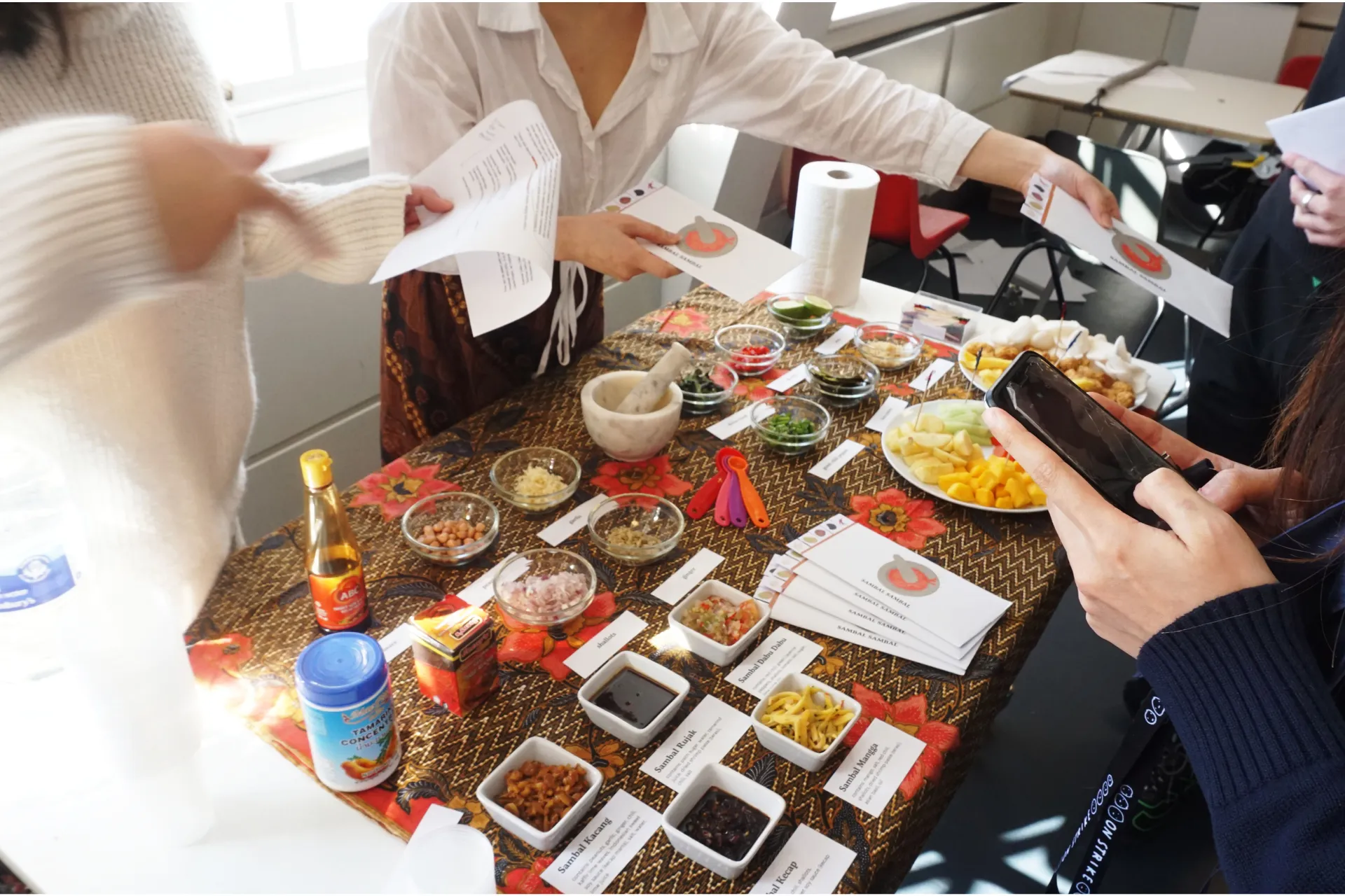 Sambal, in collaboration with food culture from Indonesia of their special condiment. The purpose of this workshop was to educate people who are not aware of the Indonesian spice culture. A personalized recipe is included with this workshop, using illustrations to display our recipe. Adding flavors and textures to each of their likings compliments specific dishes. There is so much more than just salt and pepper. Collaboration with Caroline Helen