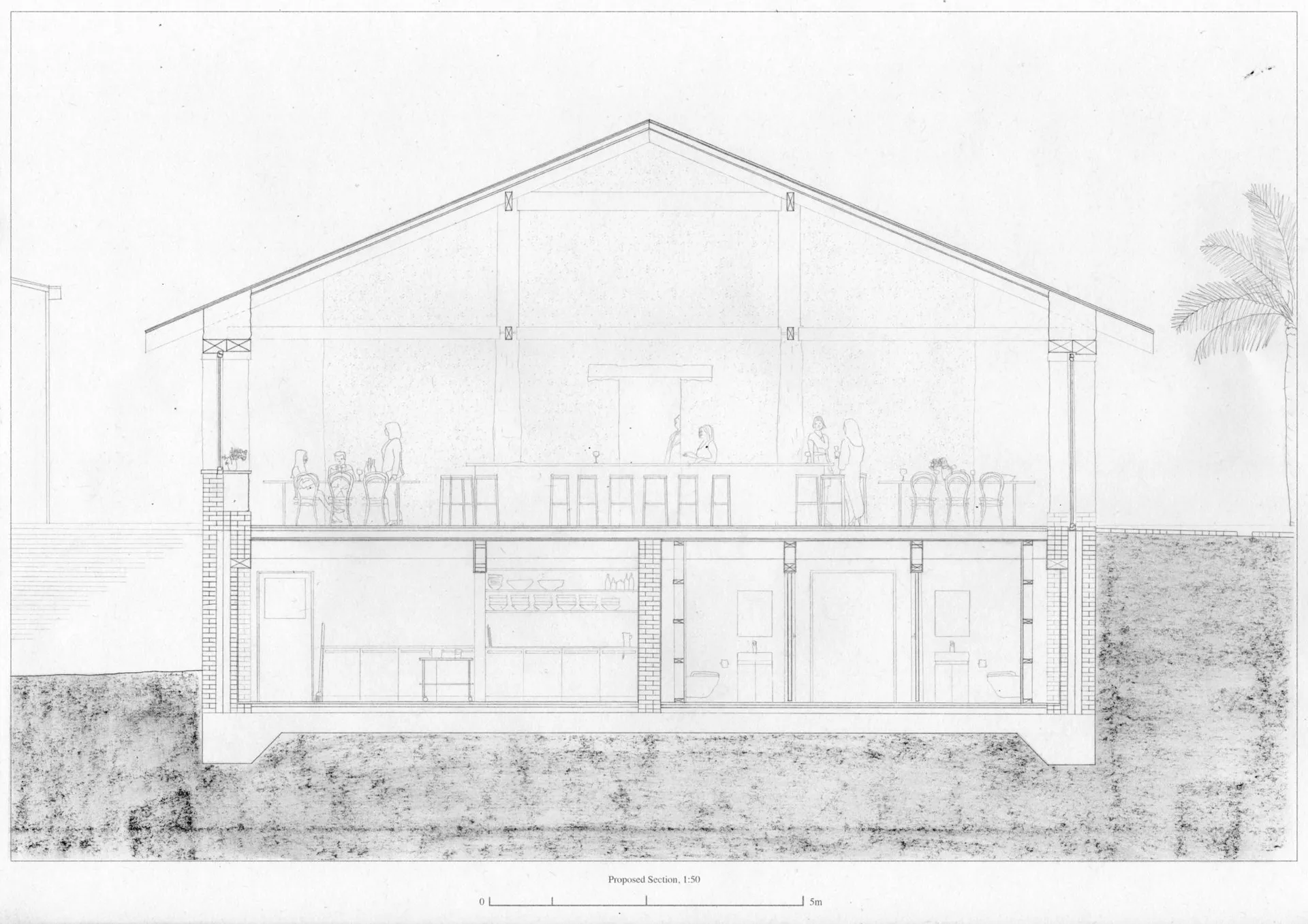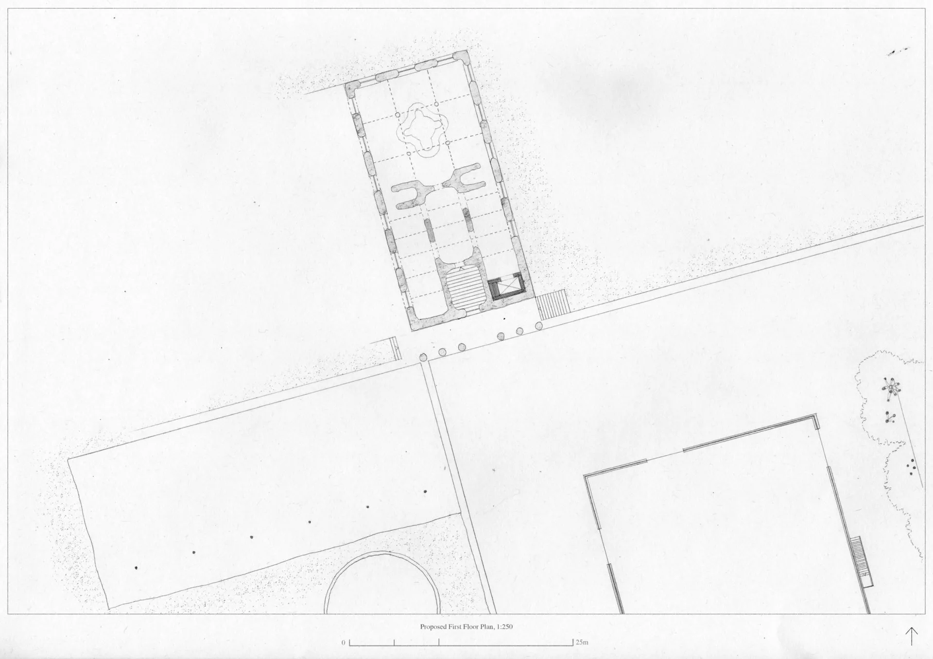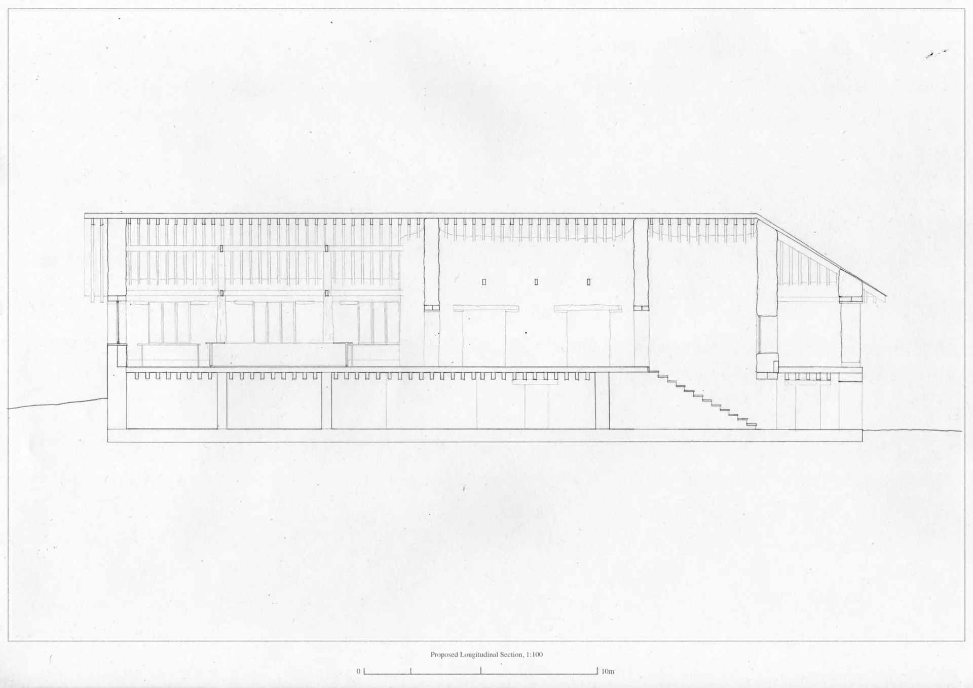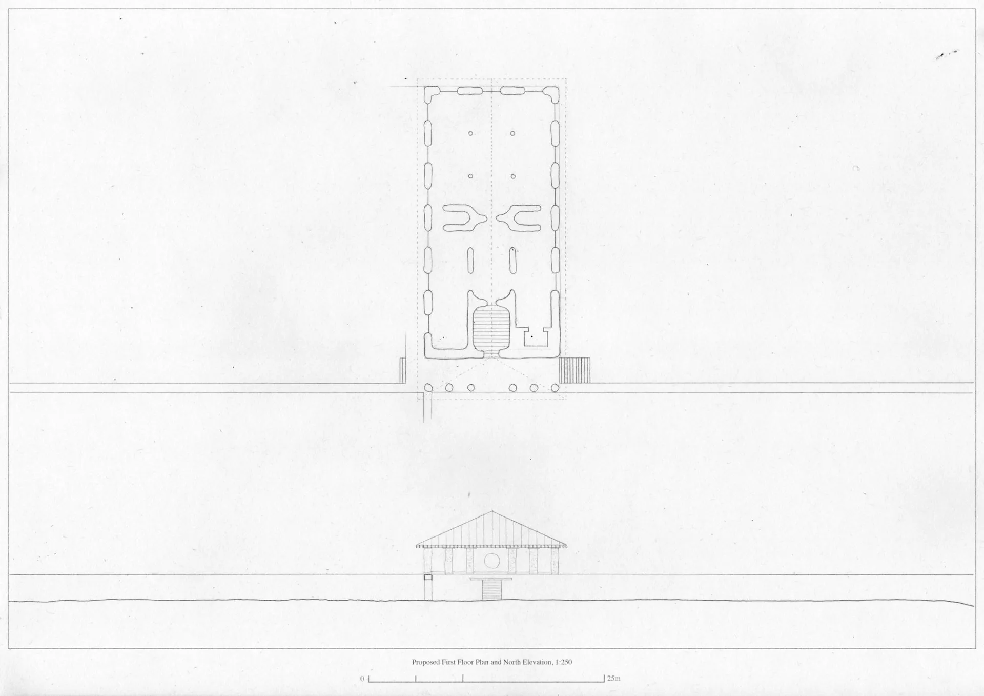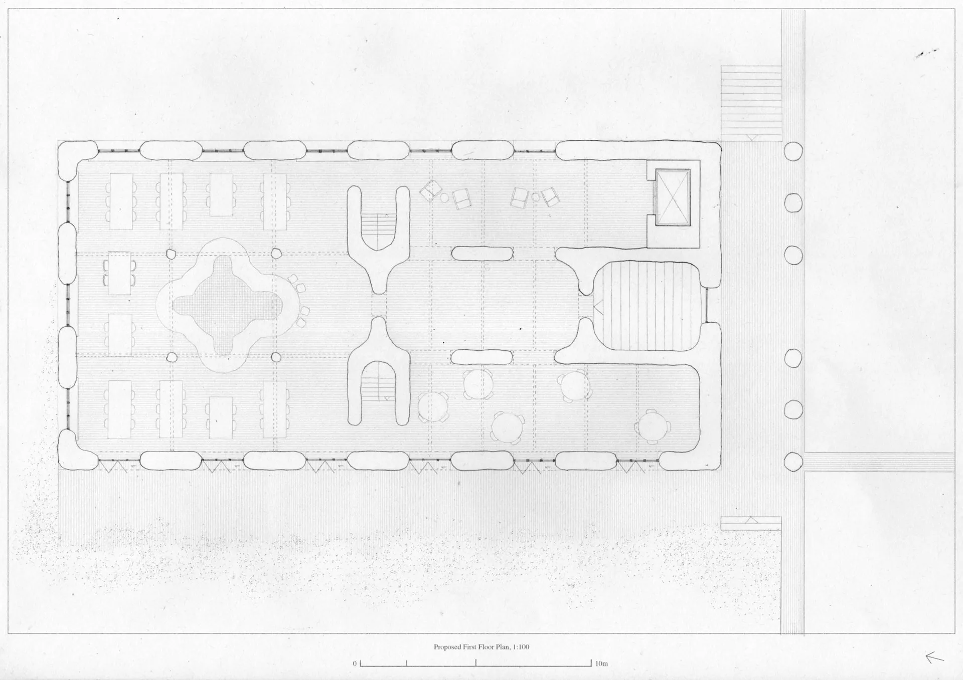 Whilst studying the orders and their details, similarities were noted in seemingly functional tectonic moves in cob structures. With the measured forms and calculated rhythm of the orders, in conjunction with cobs inherent plasticity and tectonic motifs, rooted in tradition, time and place, the project takes playful and sculptural moves, sitting within the sparse Hampshire landscape, creating spaces to drink wine.