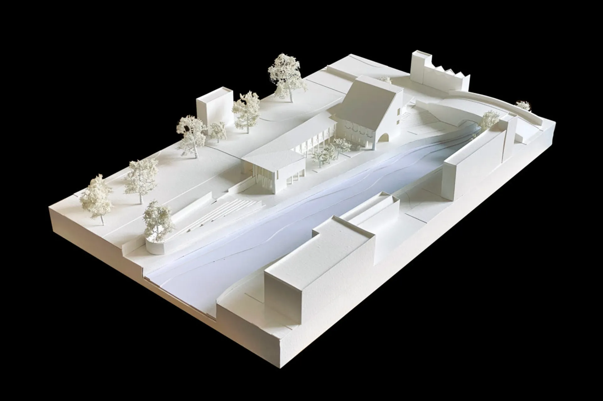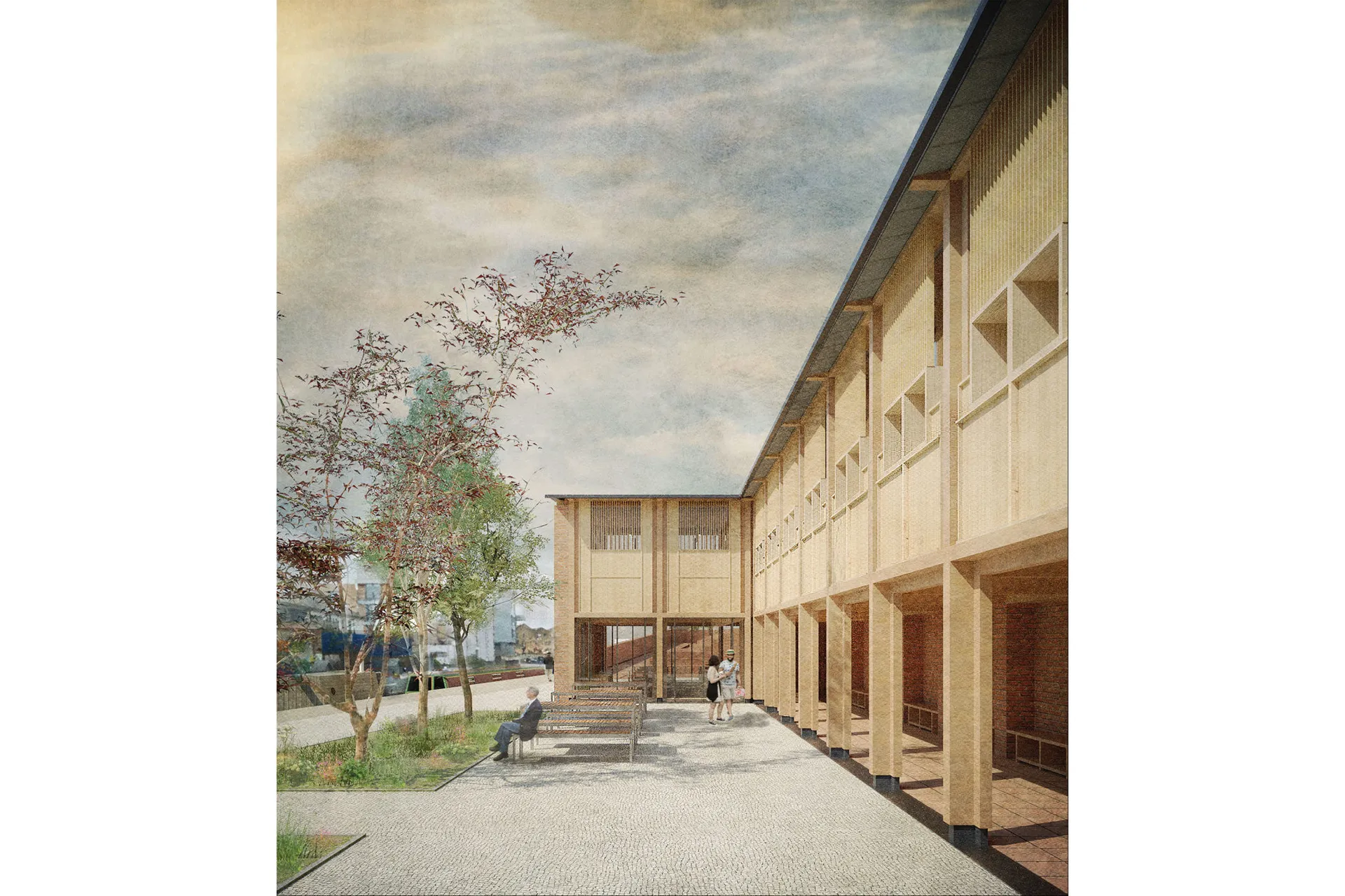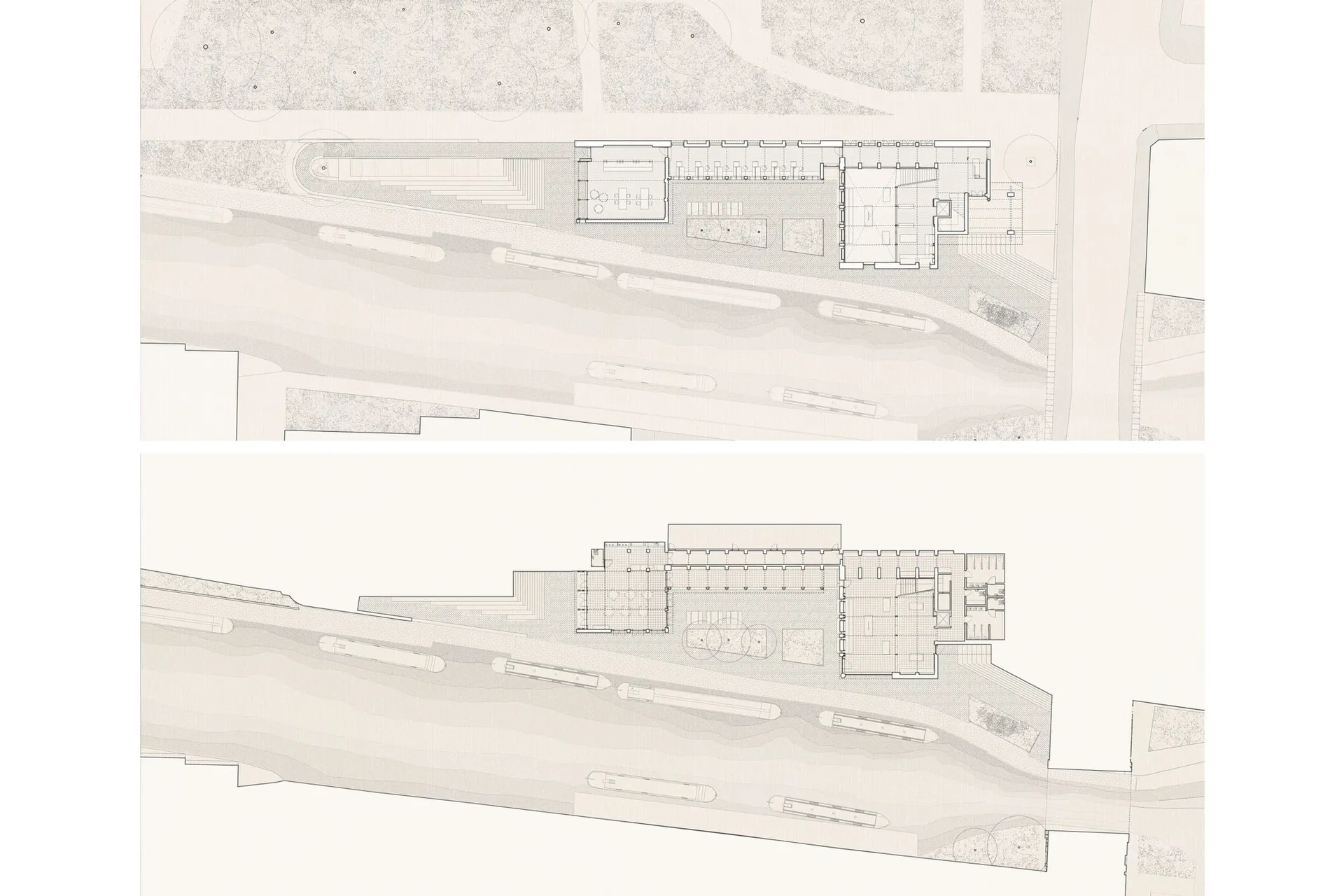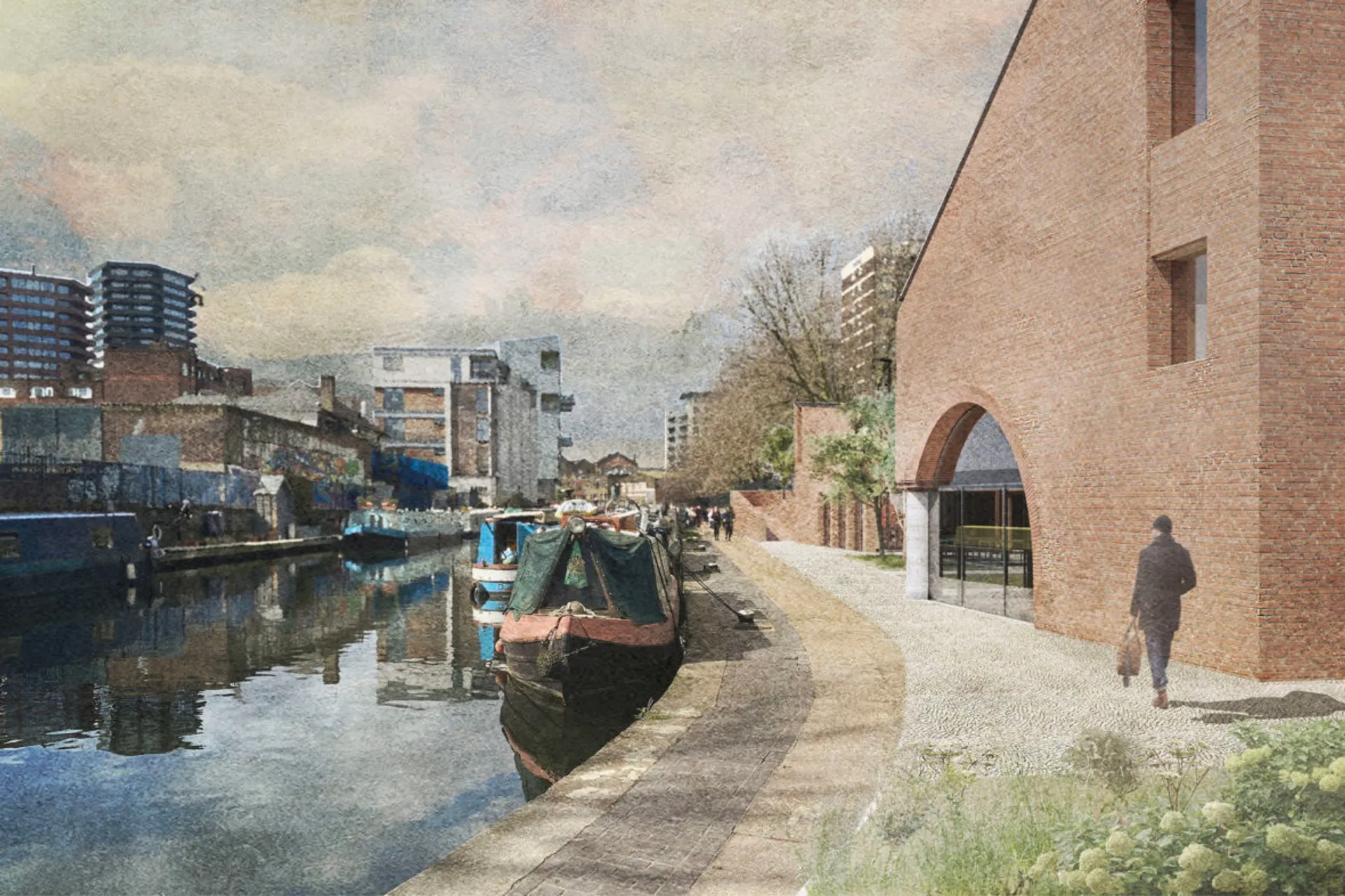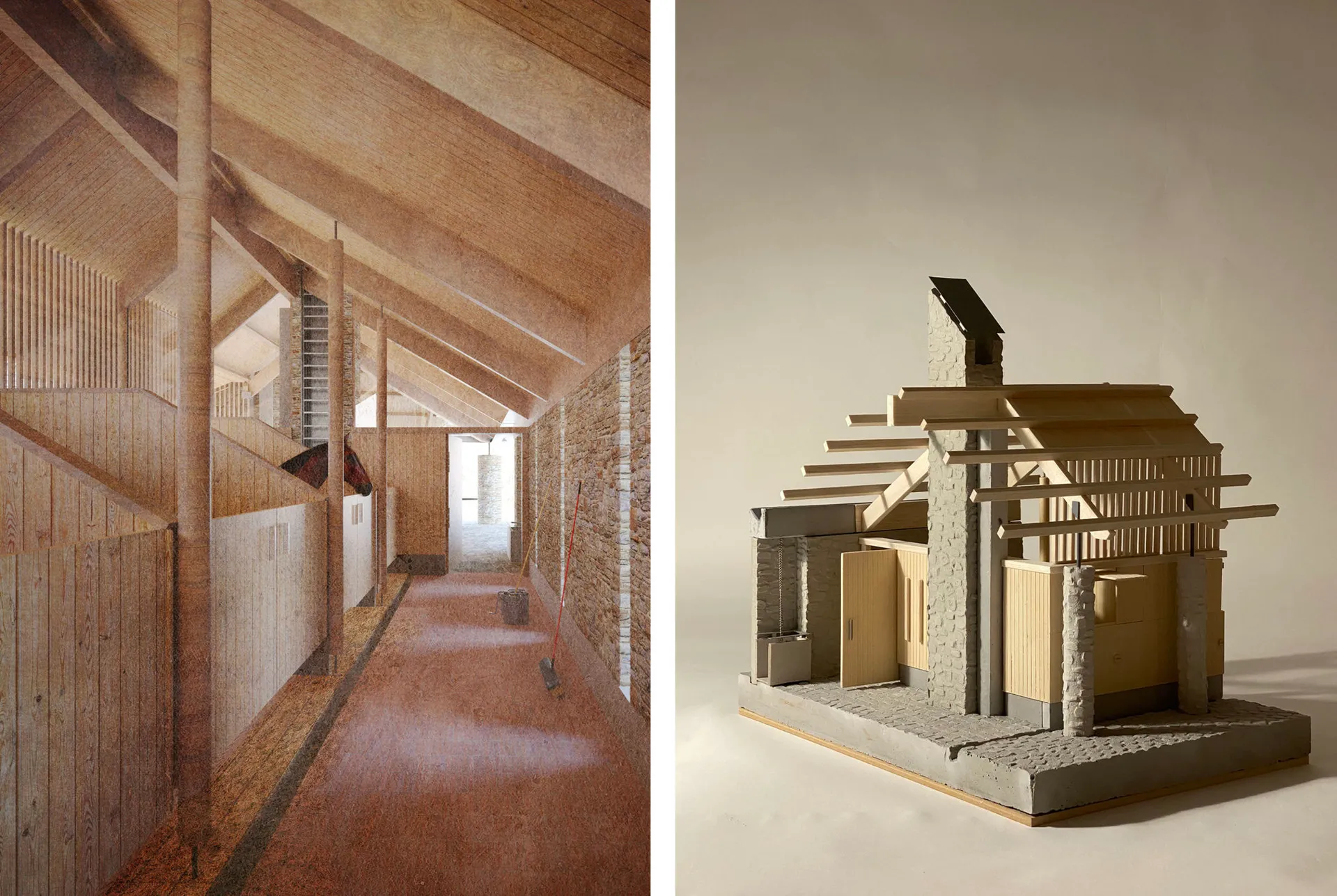 This 5th year thesis project explores the premise above in the design of a Community Library on the Hackney, De Beauvoir Estate on Regents Canal, London. Furthermore, the project explores what a contemporary library can be outside of modern technology: a social hub, a workplace, a place to celebrate knowledge and a place to strengthen communities – ‘A People’s Palace’, Christoph Grafe, 2014. The project is founded upon the concept of main library form/space wrapped by an ‘armature’ of subsidiary library functions. The project uses the study and design of a farm building (a stables) in the first term as the project’s tectonic foundation, to explore the architectural, and environmental relevance of rudimentary construction to the complexities of urban construction. As a result, the project uses a barn form at its centre. This ‘barn’ is held up by a ridge beam between two thick masonry walls of vernacular brickwork, from which the rest of the scheme spreads and articulates. The project catches indirect light in the main library with a clerestory window above upper and lower galleries of bookshelves that reference the hay lofts of a barn. The project seeks to integrate the demographics of the commuters along the canal towpath with that of the De Beauvoir Estate Park, to function as both a local and estate library. This is done with the help of a public footpath that bends back on itself to the east to the towpath level, in the form of a ramp, holding a public amphitheater of seating, opposite a café. Inside, the project makes use of a thick inhabited wall to house the books and workspace bays to create undivided internal spaces for public events. The building’s façade and form make reference to the historic fronting of industrial warehouses to the canal. In doing so, it creates further public realm between gable facades, in the form of a courtyard lined by timber facades.