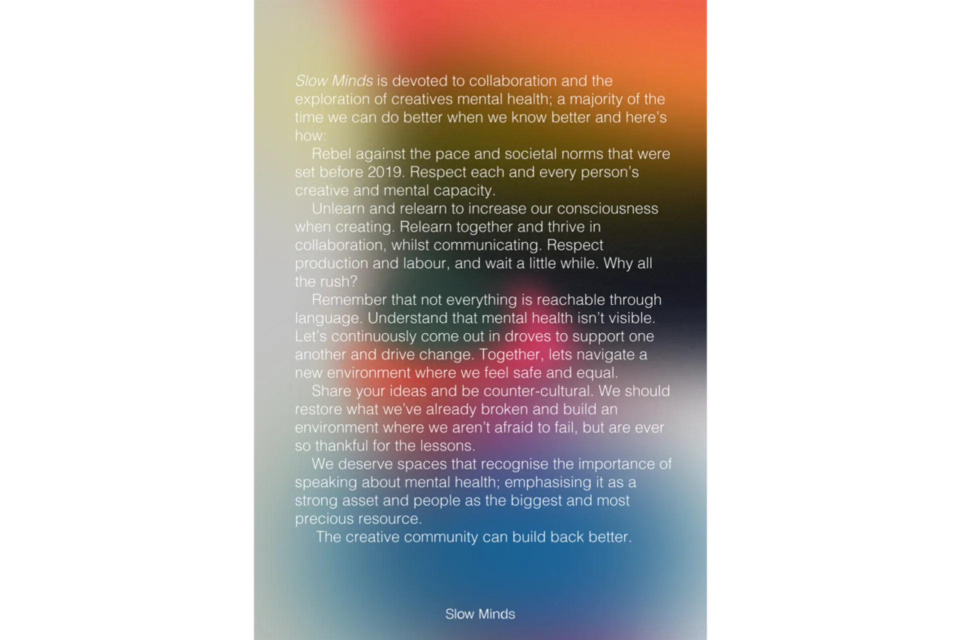 Slow Minds endeavours to record the inarticulable, by recording interviews on a thermal imaging camera; the audience is able to physically visualise and explore emotions through heat and changing coloured hues. By physically visualising emotions that you cannot see with the naked eye, allow this series to open up and navigate a conversation around the ‘unseen’. This series of visual conversations will promote and validate, that although Mental Health cannot be (tangibly) seen, it most certainly doesn’t defer it from being real. Slow Minds aims to, however briefly, open up a reflective space between interviewees and myself to trigger and visually display a wider conversation with the public and exhibit the outcomes in a gallery space; which is accessible to all.