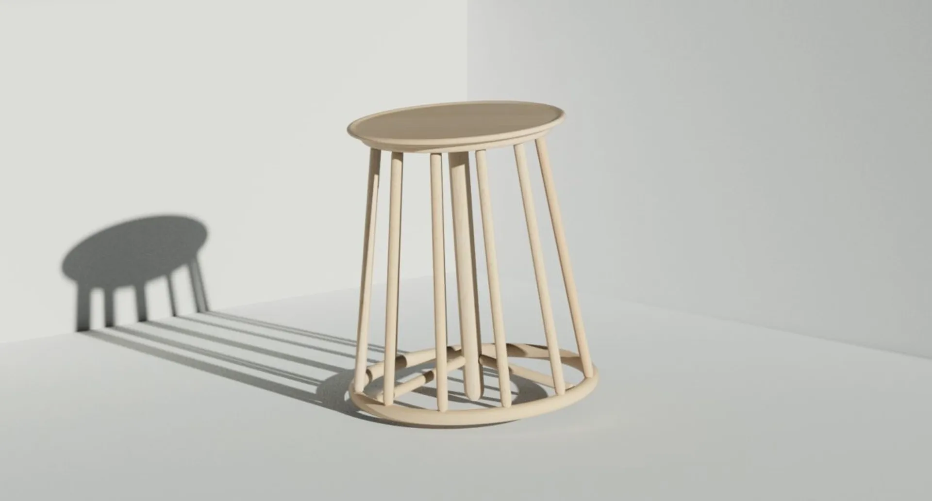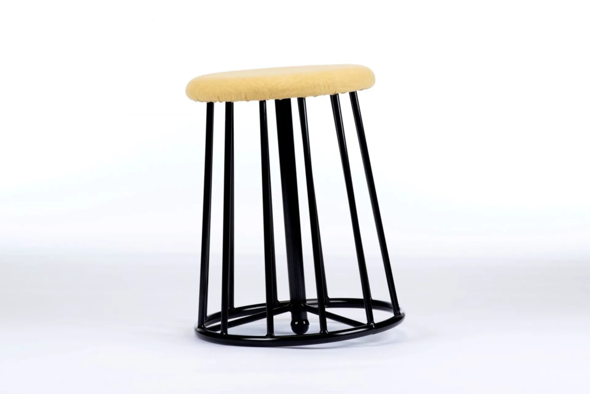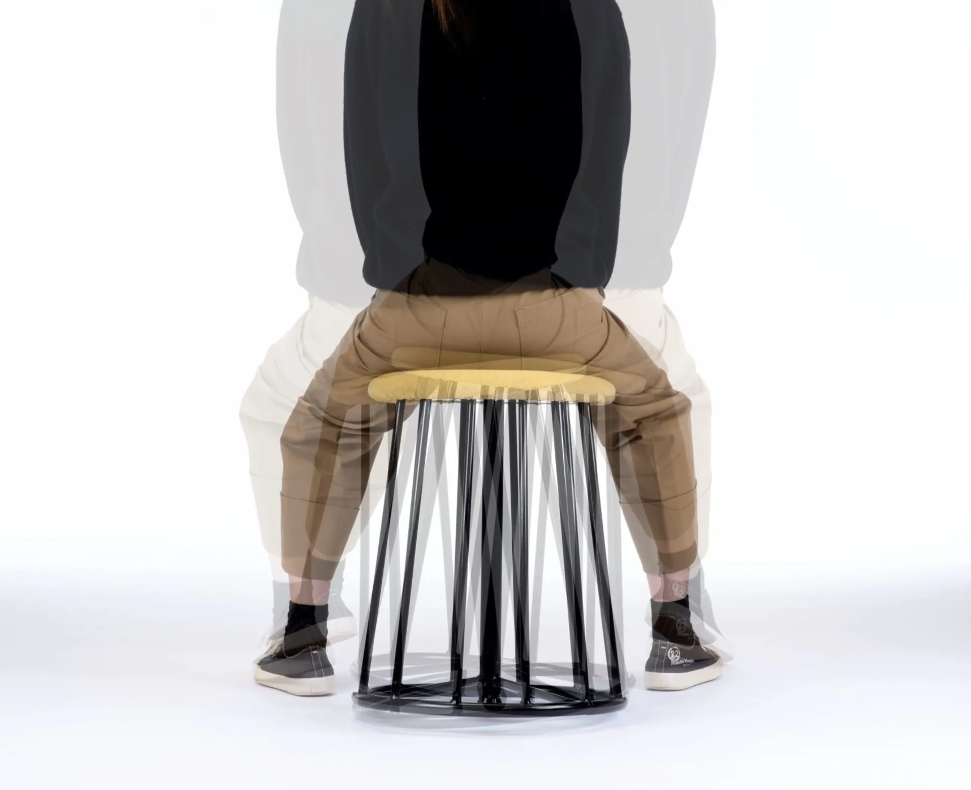 ‘Bingle Bingle’ means ‘going round and round’ in Korean.The ‘Bingle Bingle’ chair allows sitters to experience constant yet subtle movement and to take perching position when the feet touch the ground. As a result,they can achieve healthier sitting positions especially in this pandemic situation. The centre leg is two-centimetres longer than the other twelve legs so the chair rocks slightly and spins. There are two versions of the stool one is made out of wood and the other is made out of metal. Wooden chair requires more sophisticated manufacturing process so the price has to be set higher than the metal stool. So, it will be more suitable for domestic environment where you put more care into and don’t want to put heavy over-engineered task chairs. And the metal chair is suitable for contract environments because the manufacturing process is much simpler and uses cheaper and stronger materials.