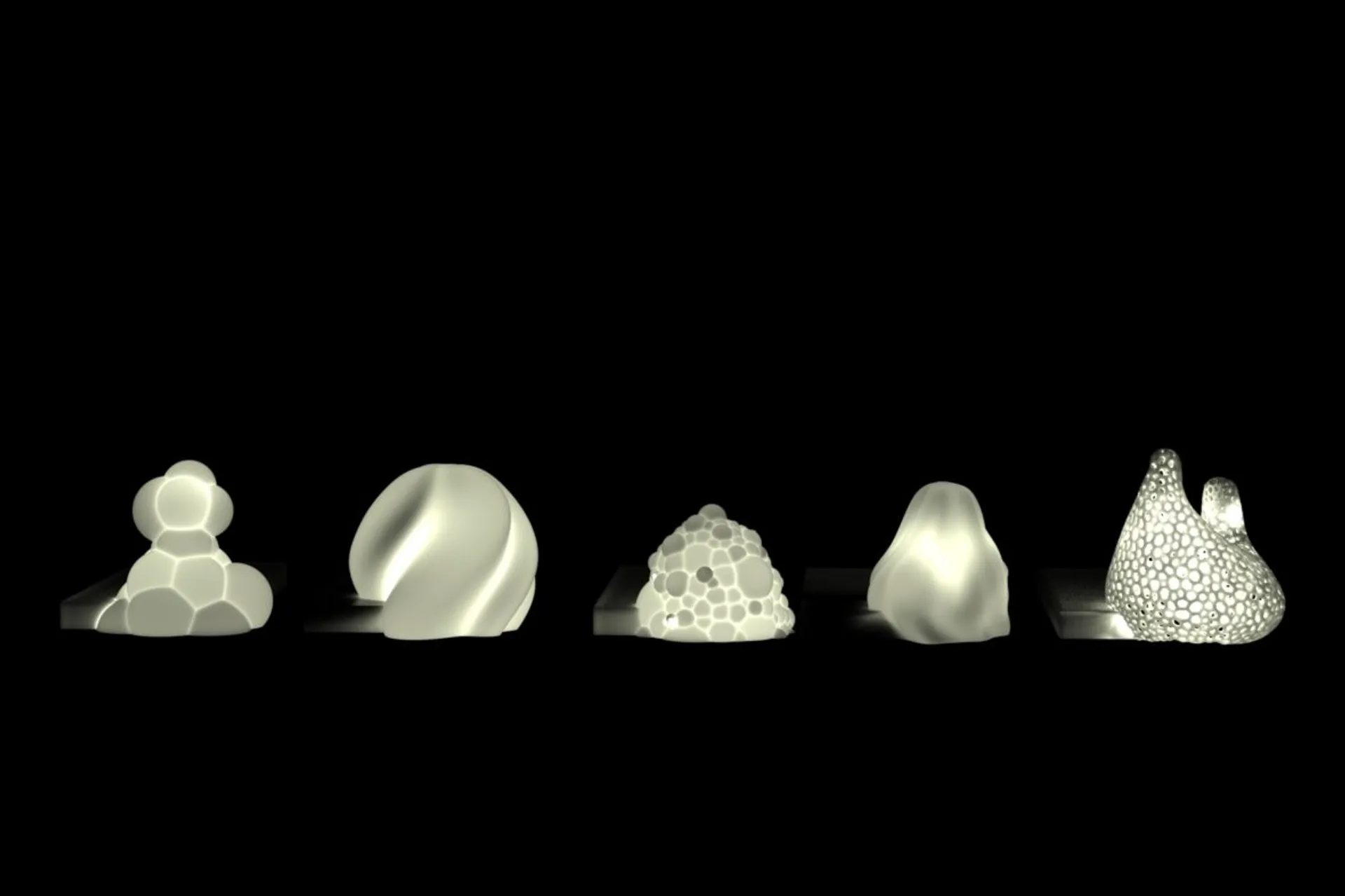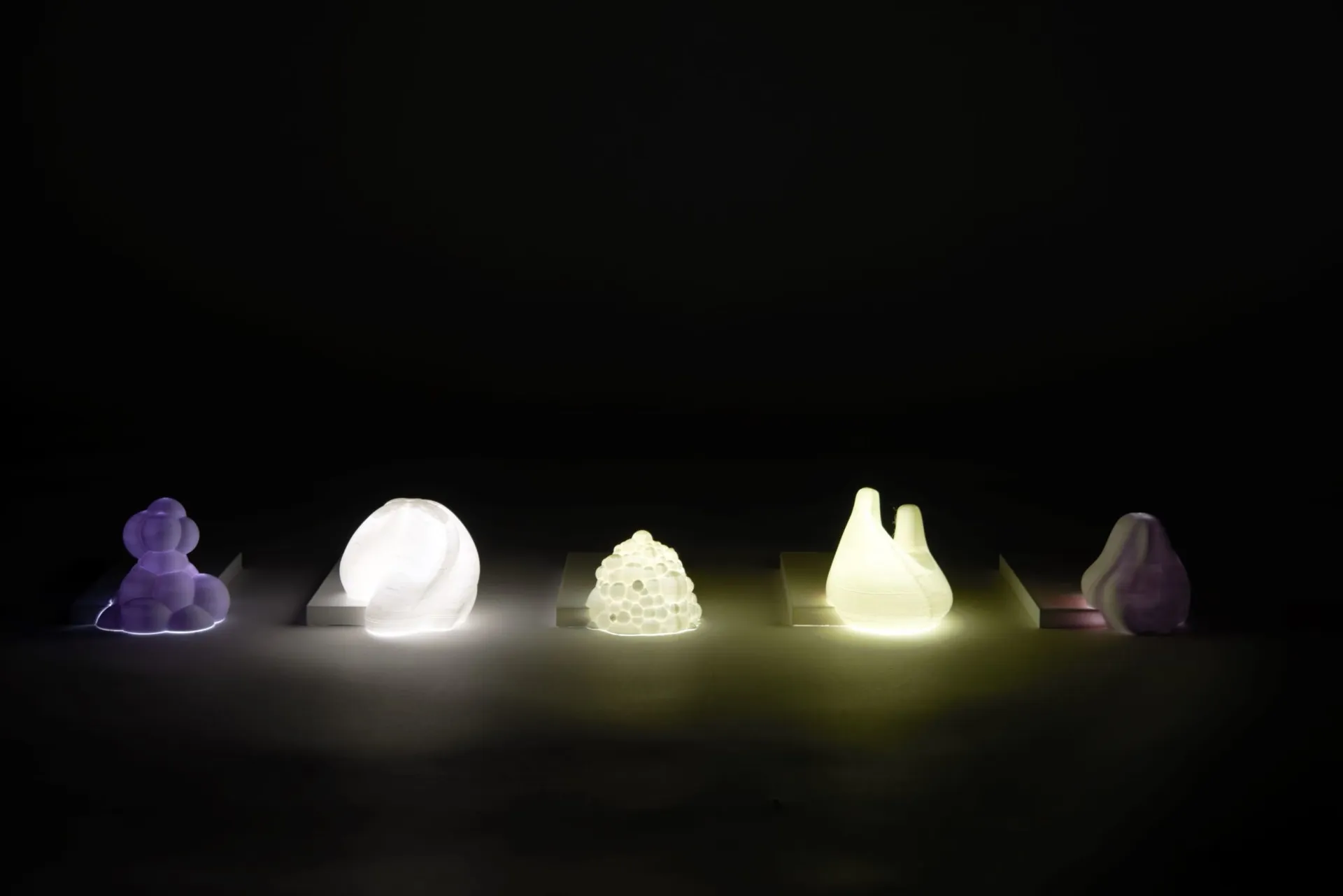 The concept is to ‘distance technology using technology’. These 3D printed objects preventusersfromaccessingtheirphones, allowing themto enjoymore atmosphere.The forms of the objects are organically shaped which were inspired by nature so they visualise the harsh light energy,coming out from phone flashlights,in a more organic way.The contrast between the organic forms and a rectangle which is a plainandrestrained geometry,shows the energy growing out from it more dramatically. Although these organic forms are very difficult to be produced hollowly, 3D printers have enabled the complex forms come into a real lifeand have allowedthem to be produced in large quantities. The D-LIGHT is suitable to be used in domestic environments or in hotels and restaurants, replacing candle-lights.