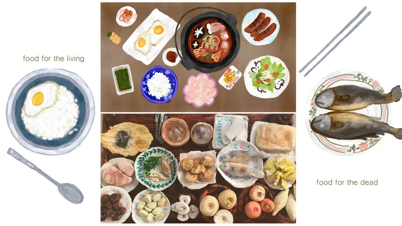 Here, there are people who are so obsessed with eating that they even devote food to the dead.