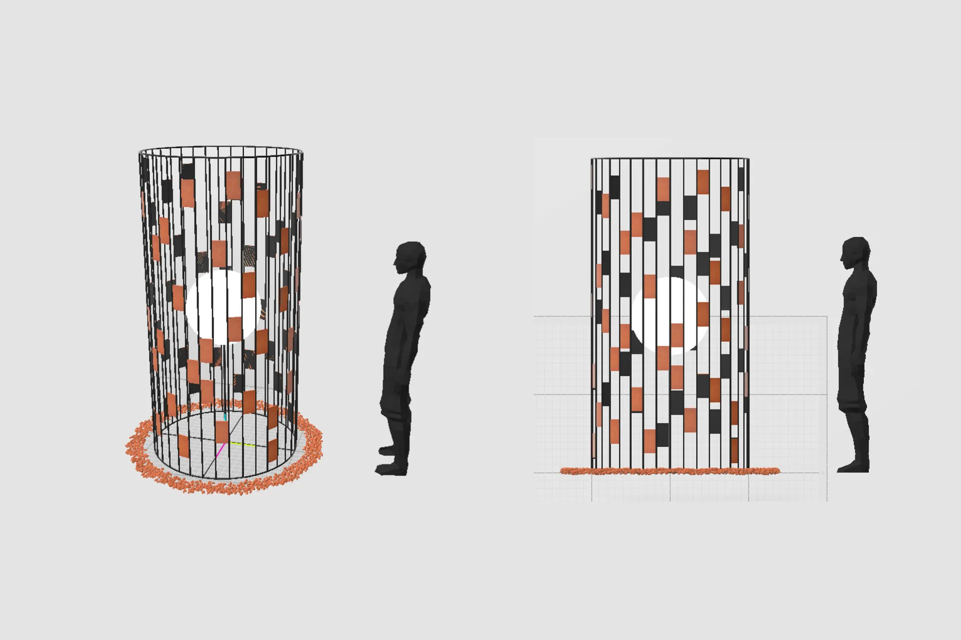 The work is positive and optimistic in its essence. People eventually do break those “tree masks” and set themselves free. The clay fragments around the installation visually represent this.