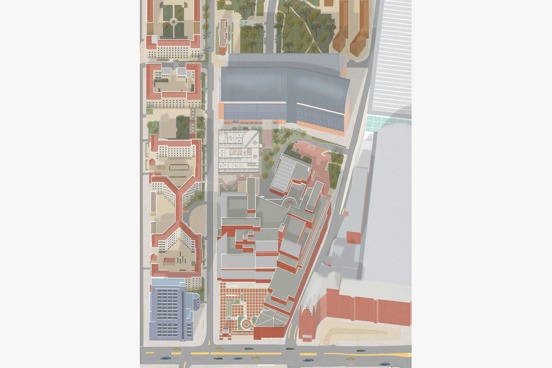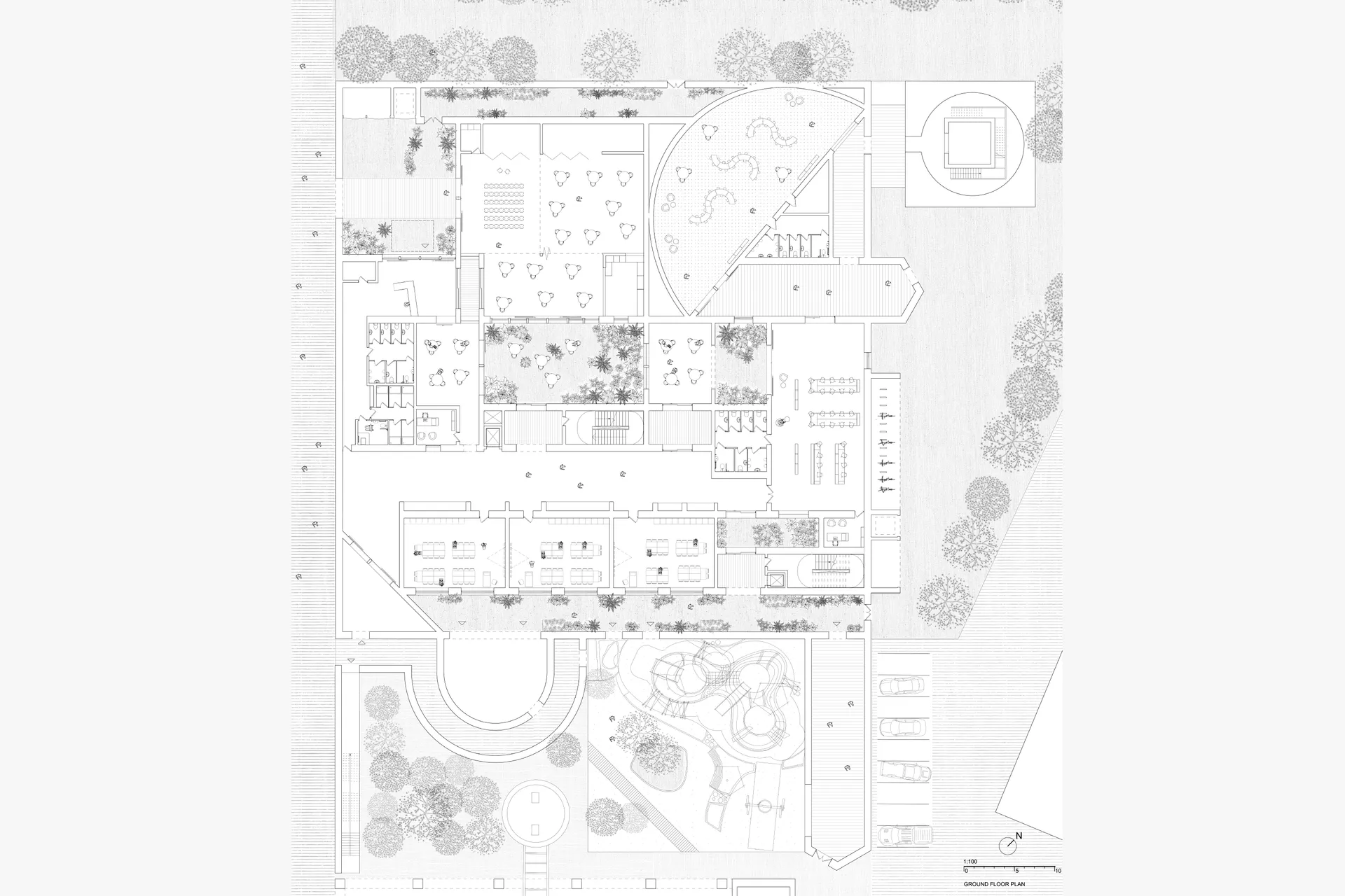 The project is located in the intricate area that is caught between the railway tracks of Euston and St Pancreas station – Somers Town. The site and even the wider area as a whole is once more going through major redevelopment, where its surrounding community is driven to a subtle disengagement from its its neighbouring elitist institution. The project is a response to this current condition of rapid development within the city and the impact this poses on the surrounding community. Within any area of regeneration the community facilities play vital role in the overall development of the area, as such the proposed scheme offers an alternative proposal with the aim of liberating the community spaces from burden of memory. The community centre and its walled gardens aims for the movement of people and things towards the spaces outside, redefining the parameters of public and private. The spatial relationship within the proposed project are about in-betweenness, generosity and an awareness of time.