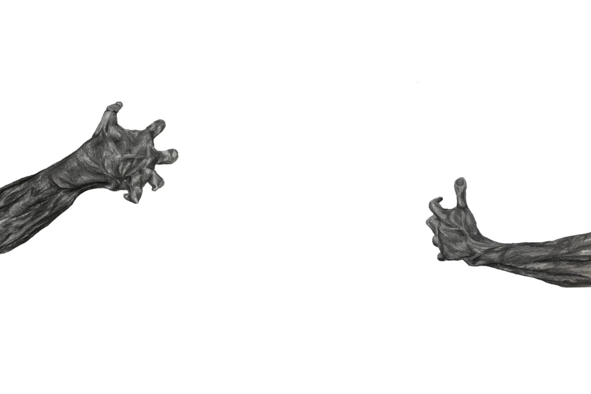 “Embrace and Restraint” reflects on the distance people have had to keep from one another due to COVID, documenting individual stories and the effect that maintaining this distance has. The illustrations of the grasping hands were the result of extensive research on the topic of Touch, asking the questions; What does touch mean for different people? Do we need touch to form stronger connections and relationships? How does it feel not being able to touch others now? With this substantial research behind her, Julia creates Illustrations to reflect how so many people crave touch, but have to put the safety of themselves and others first.
